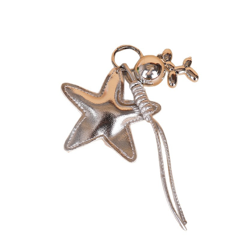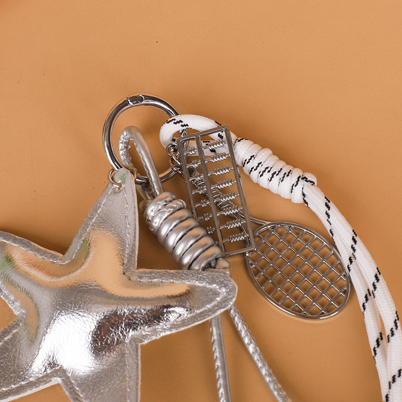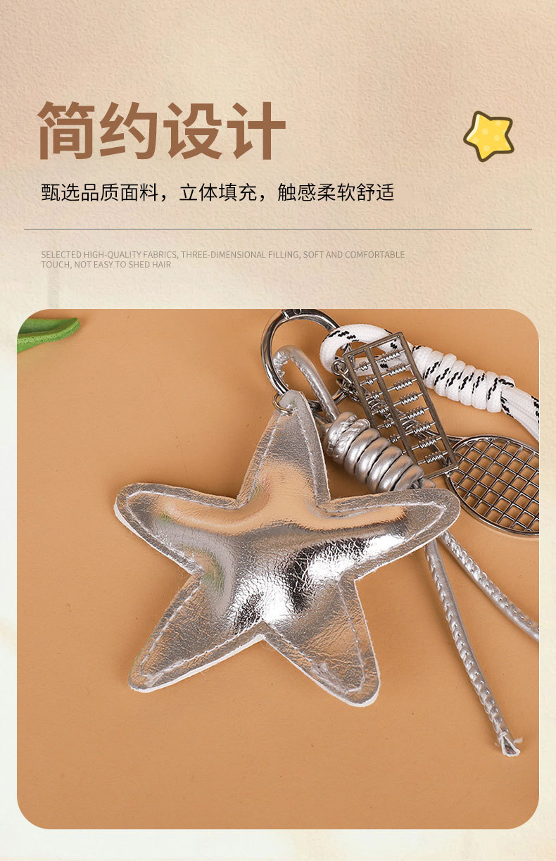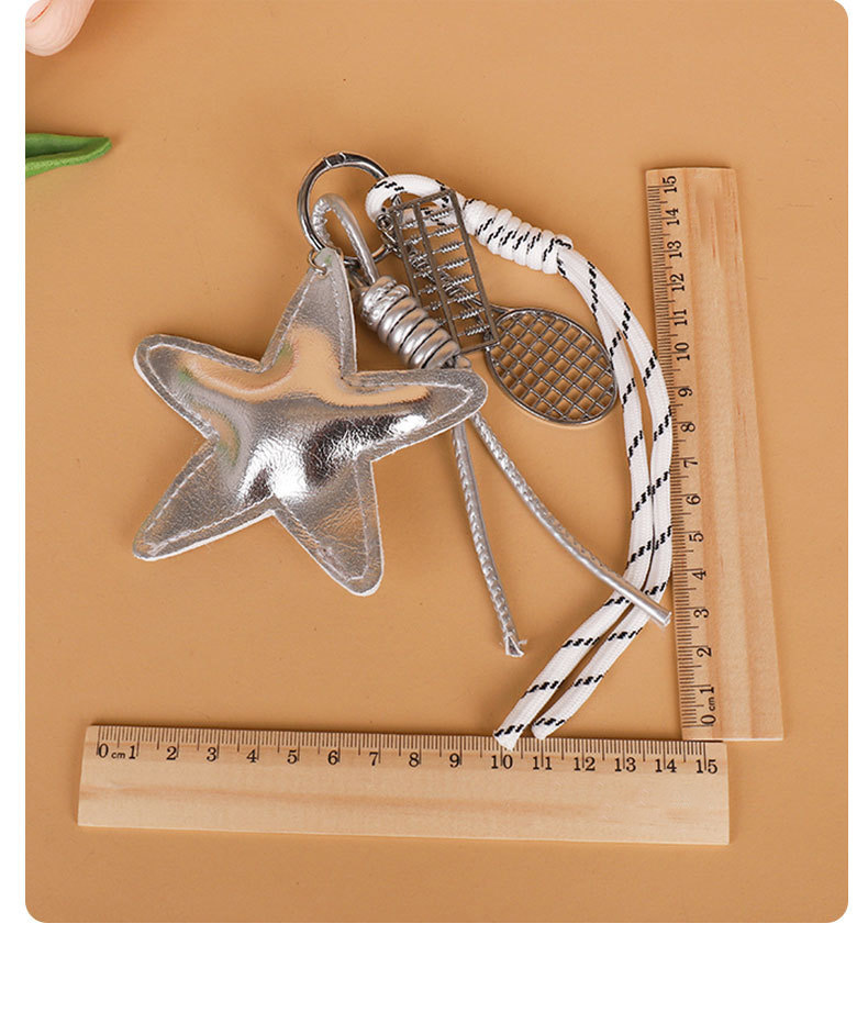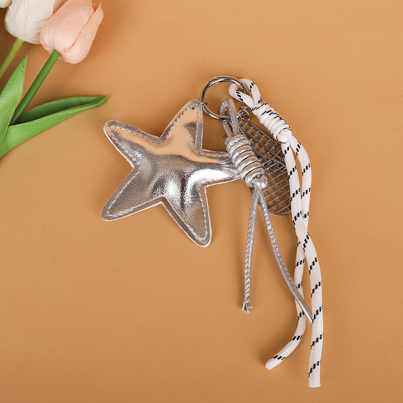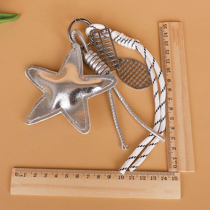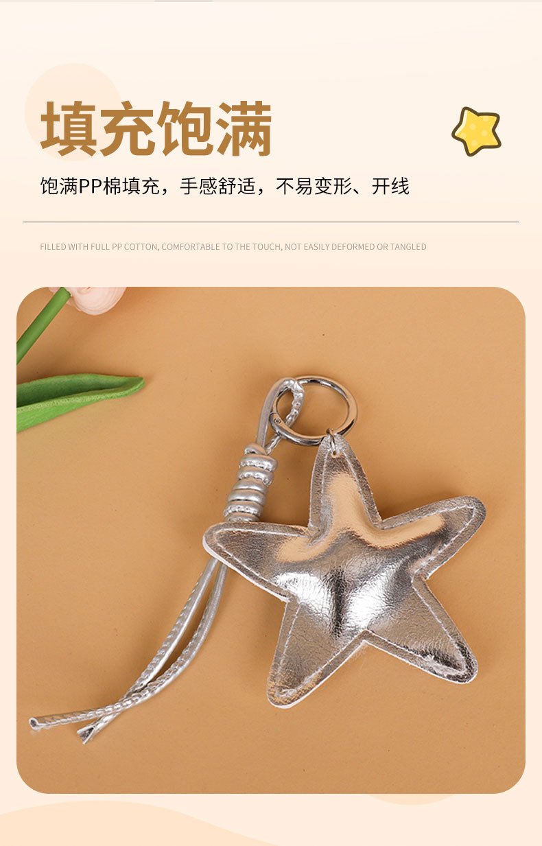 韩系可爱皮革五角星挂件精致登山绳甜酷钥匙扣挂饰手机挂饰包包