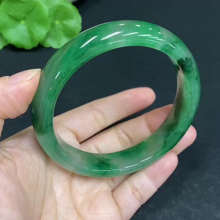 非洲翠(独龙玉)正圈手镯 圈口62.2 货品总重约58.3g工艺品