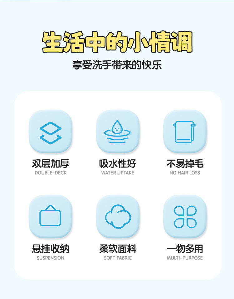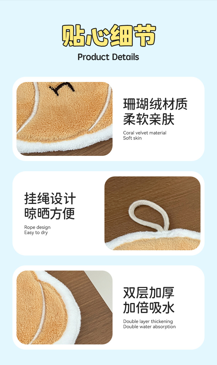 版权可挂式加厚超强吸水可爱卡通擦手巾珊瑚绒小方巾厨房浴室两用
