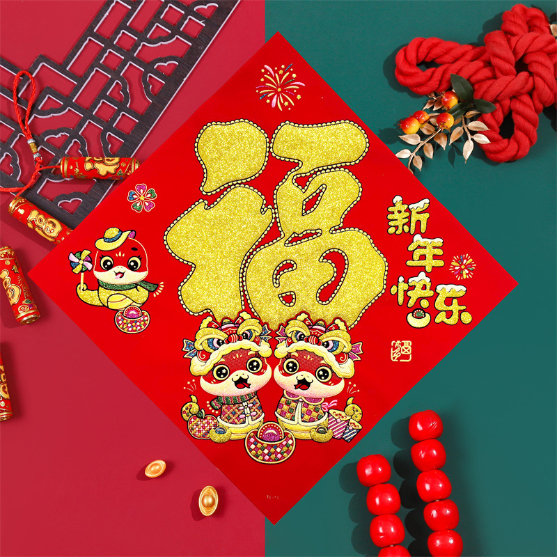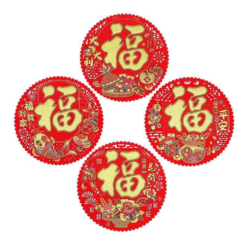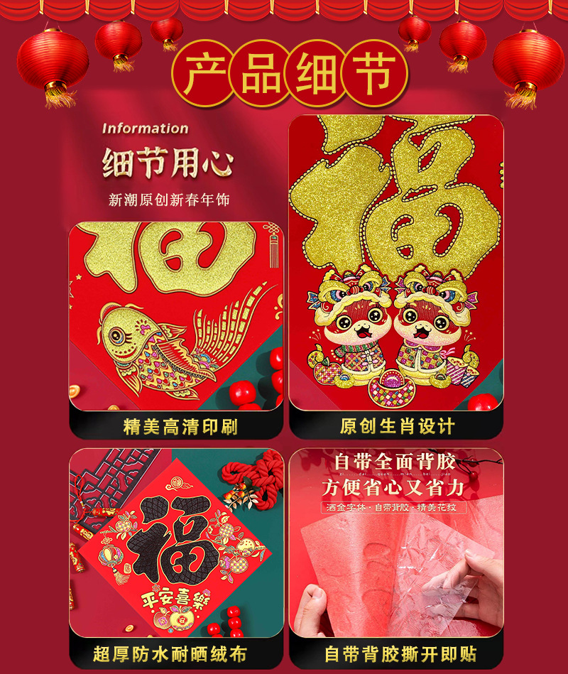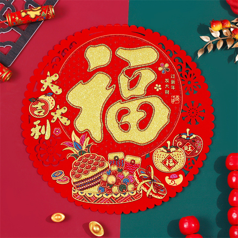 2025新款镂空窗花福字门贴绒布背胶新年装饰春节年画批货福字贴