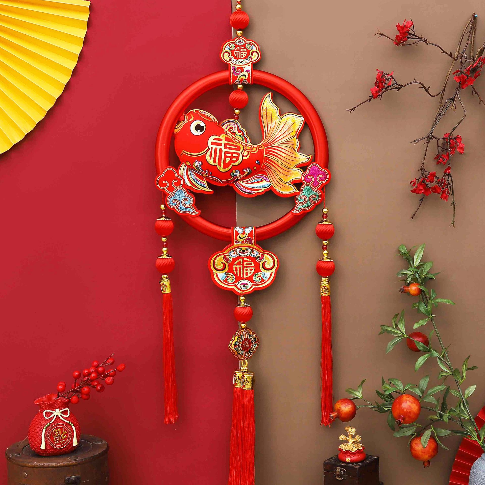 新年爆款中国结挂件过年春节用品玄关新年装饰新款花环福字挂饰