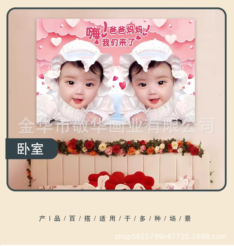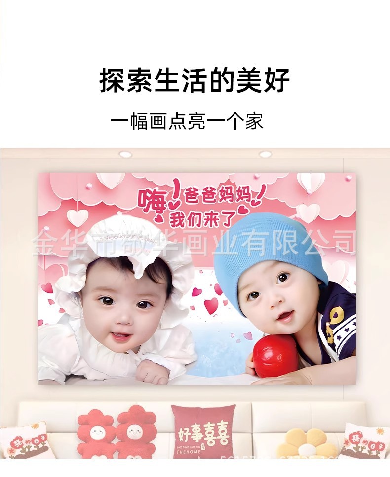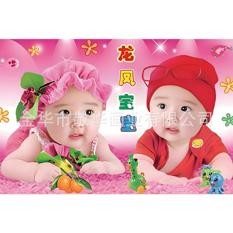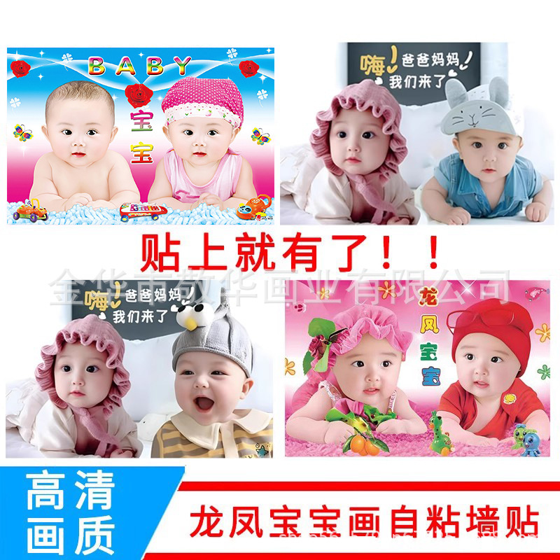 龙凤宝宝自粘装饰画年画娃娃图婚房送子图贴画双胞胎萌宝墙贴壁画
