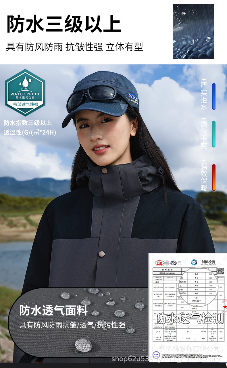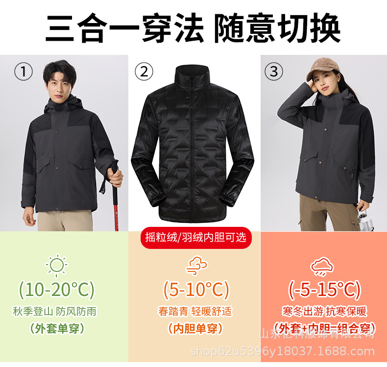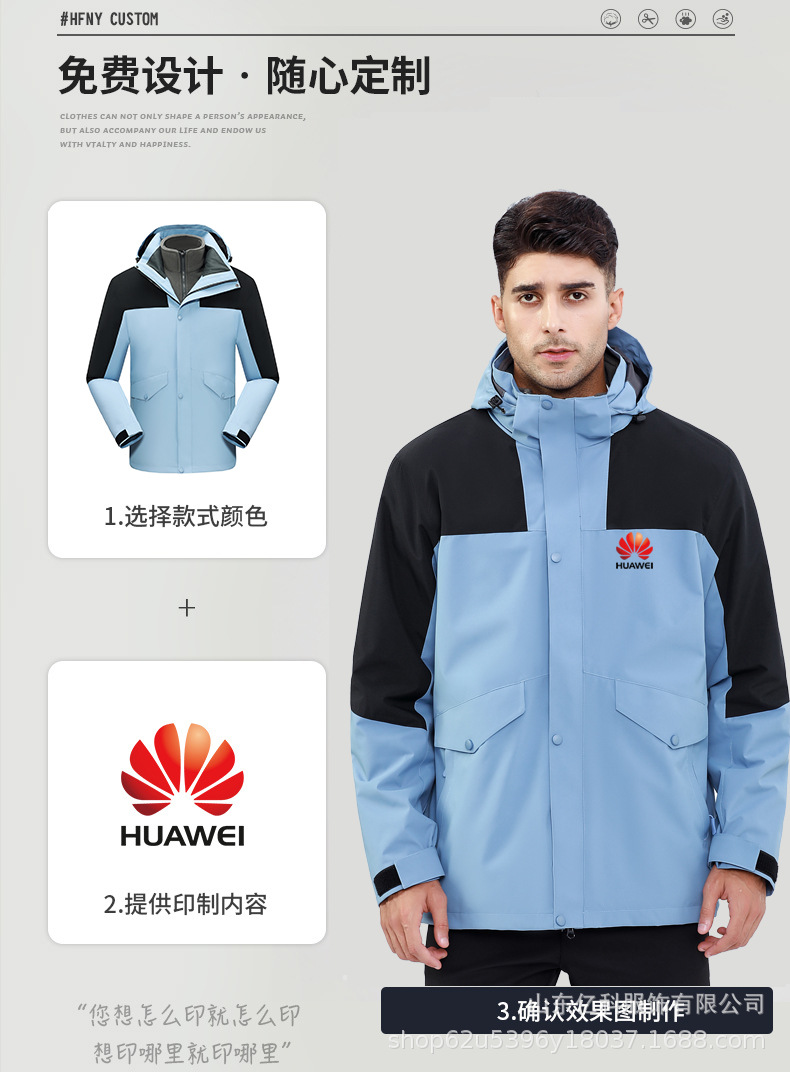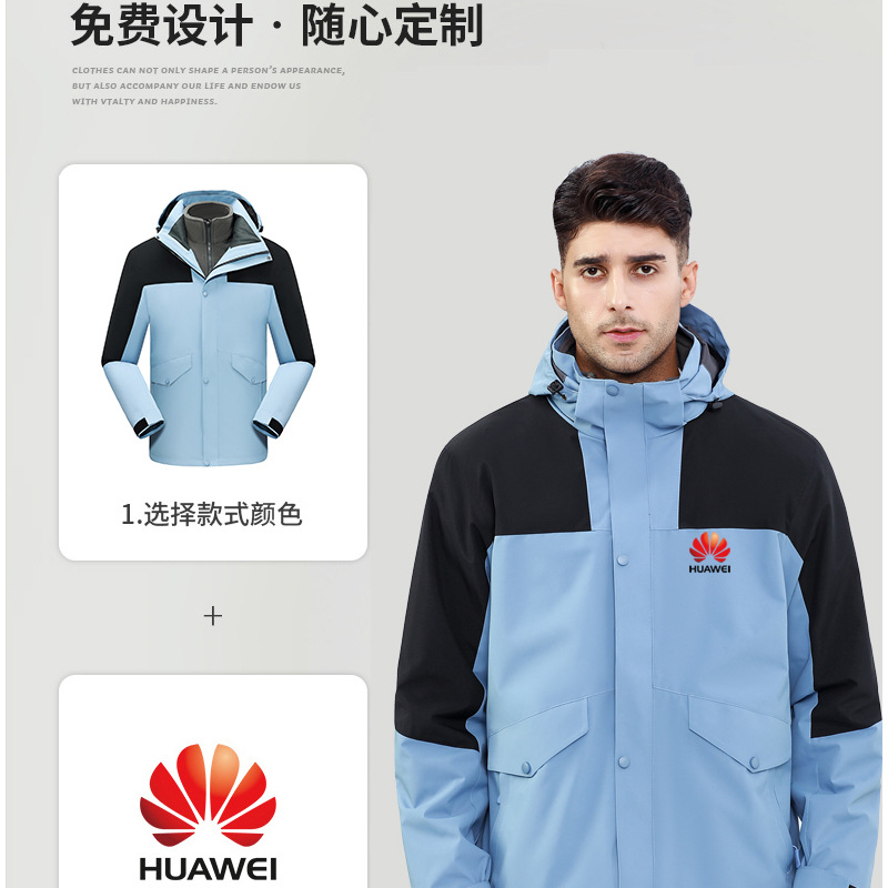 冲锋衣logo刺绣户外三合一两件套防水防风工作服外套多场景适用