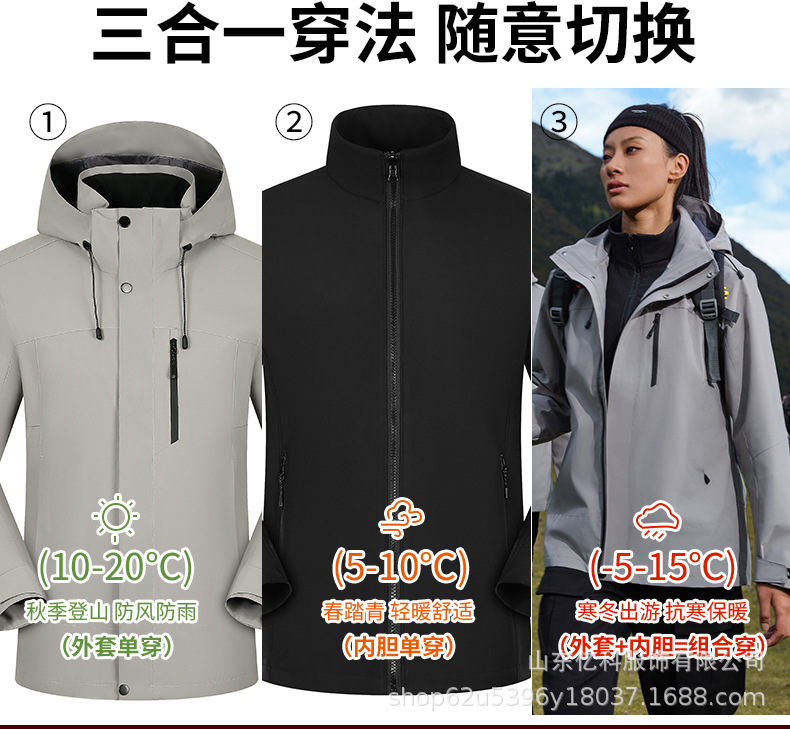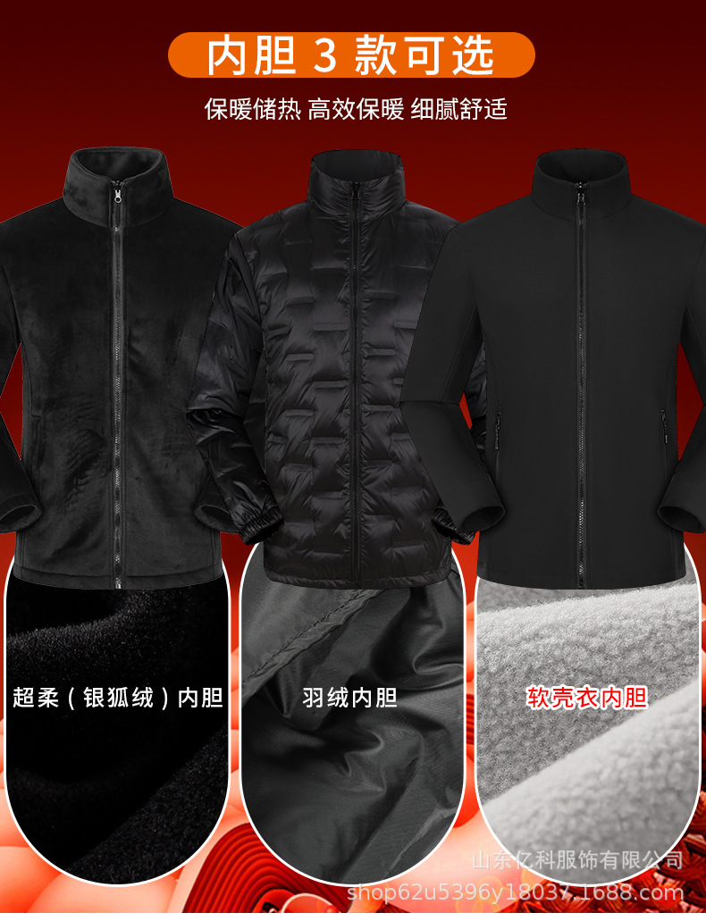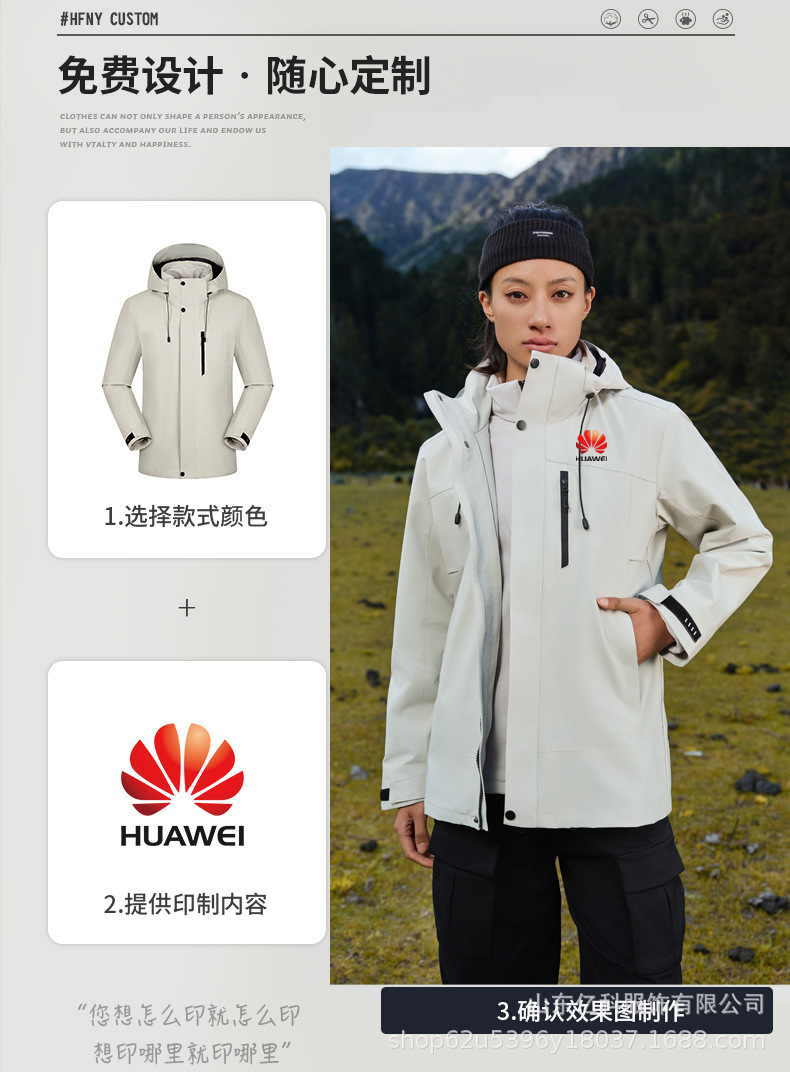 新款三合一冲锋衣定制印logo可拆卸刺绣印字秋冬季工作服工装男女