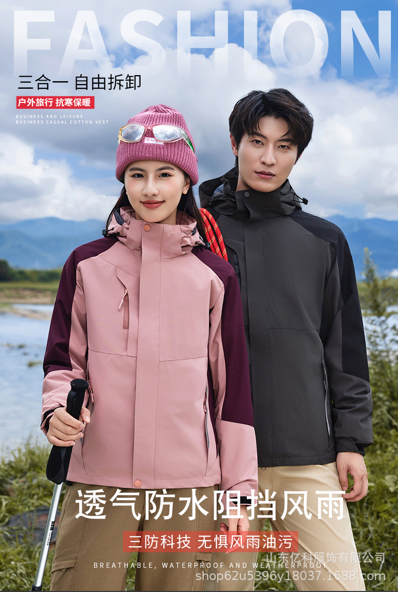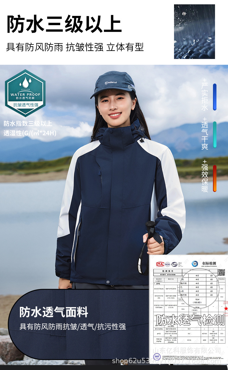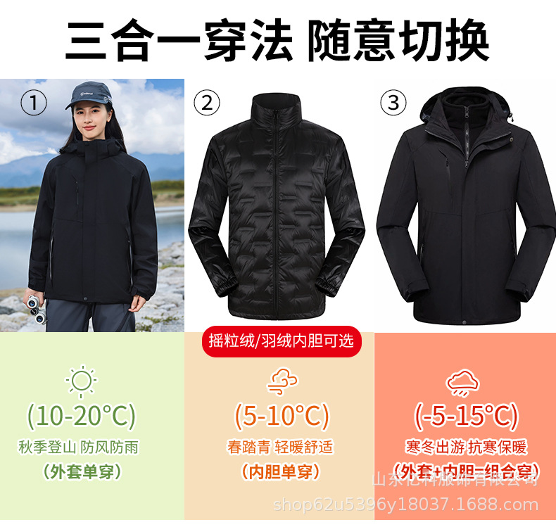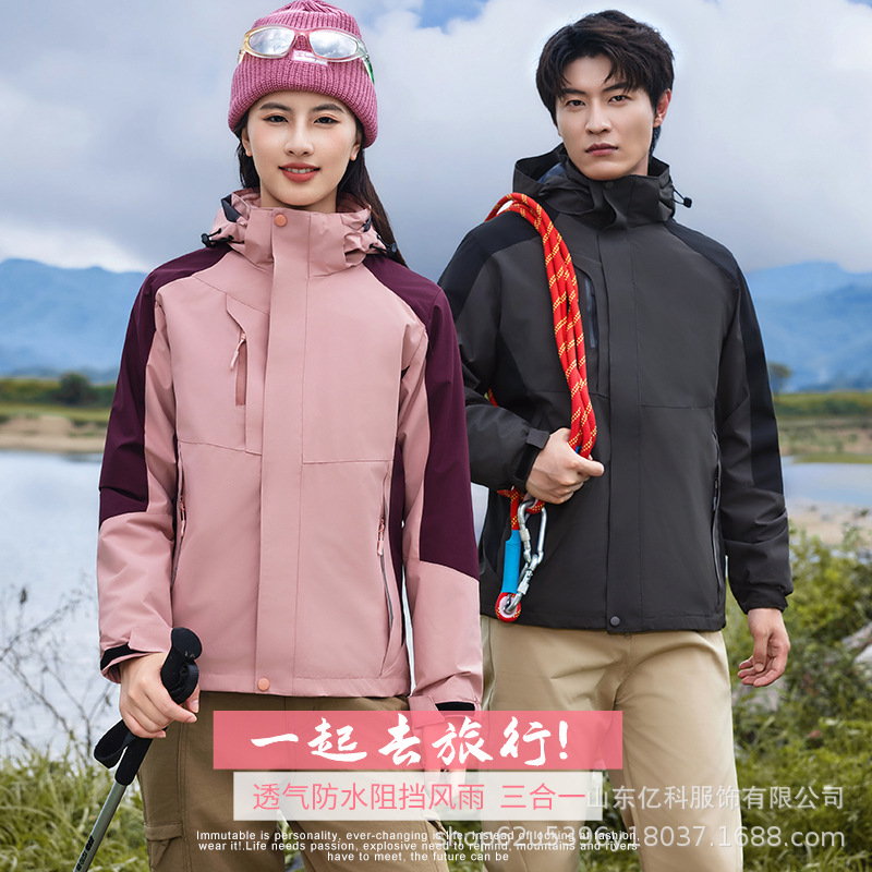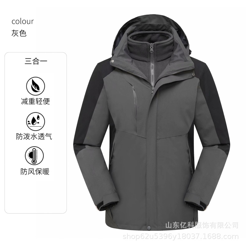 冲锋衣定制logo印字刺绣户外三合一两件套防水防风保暖工作服批发