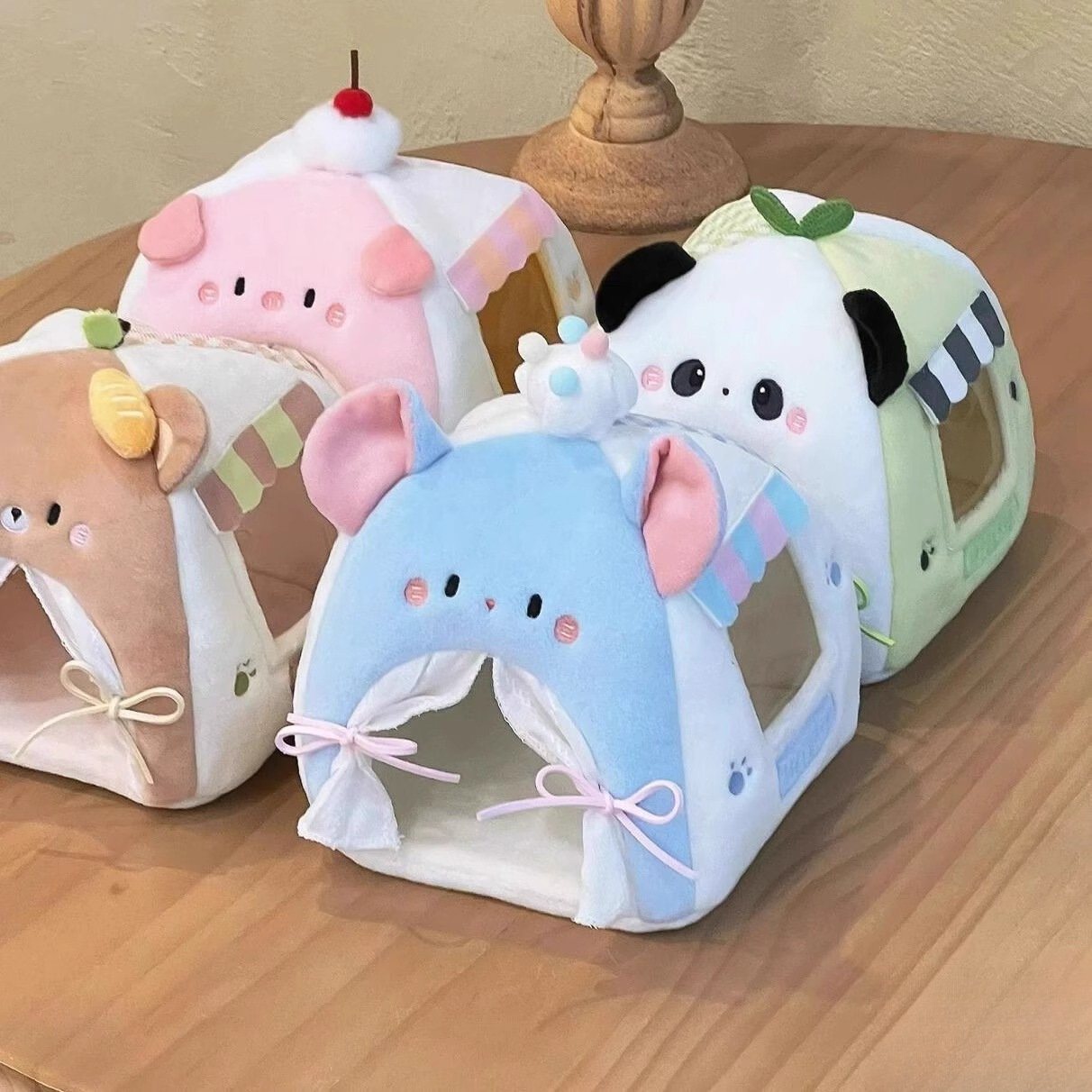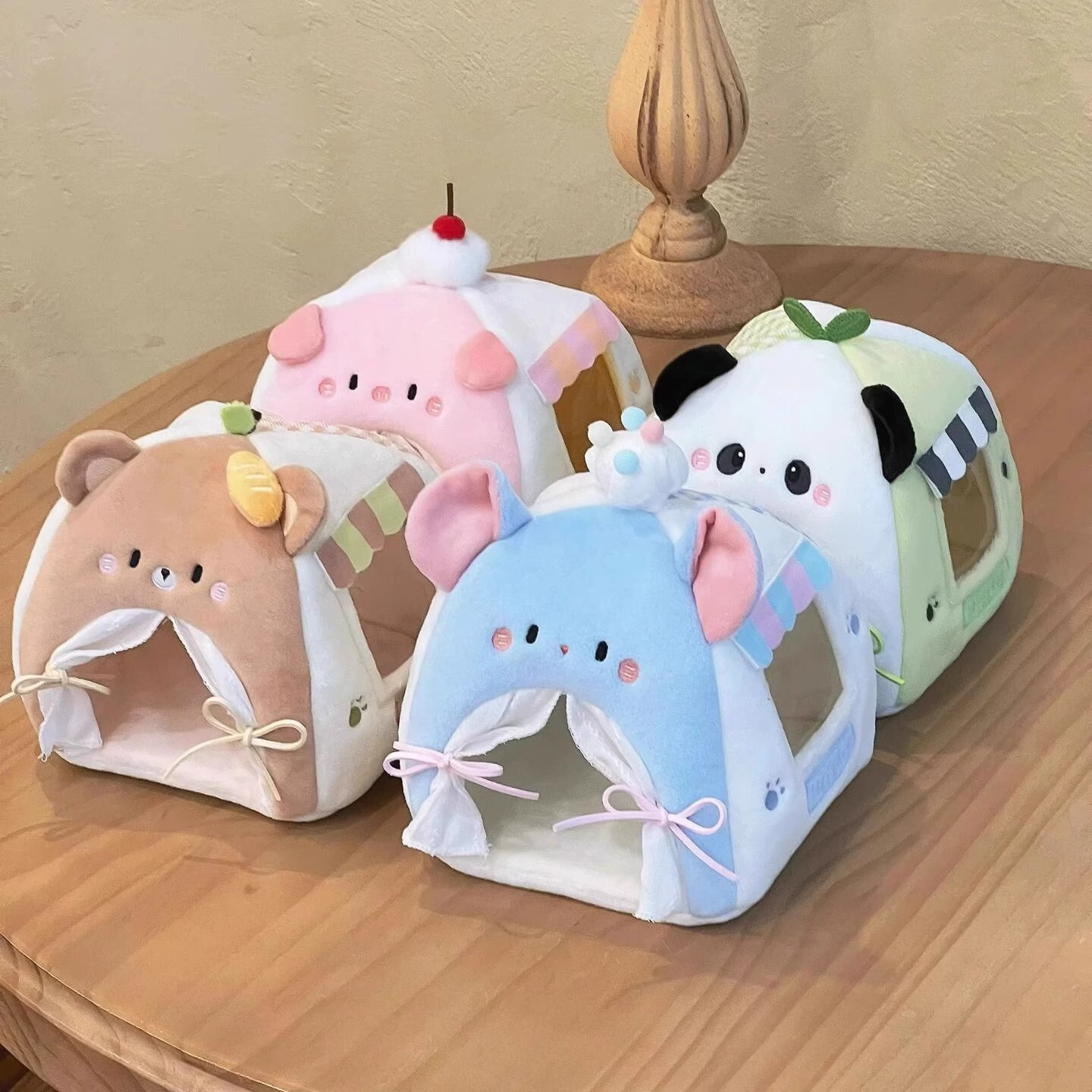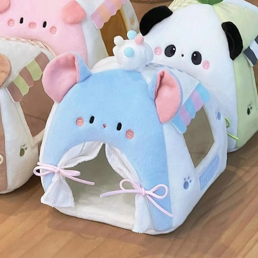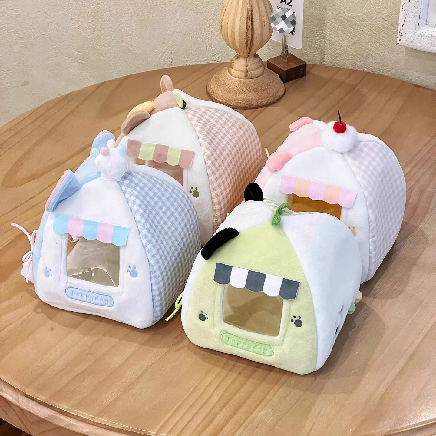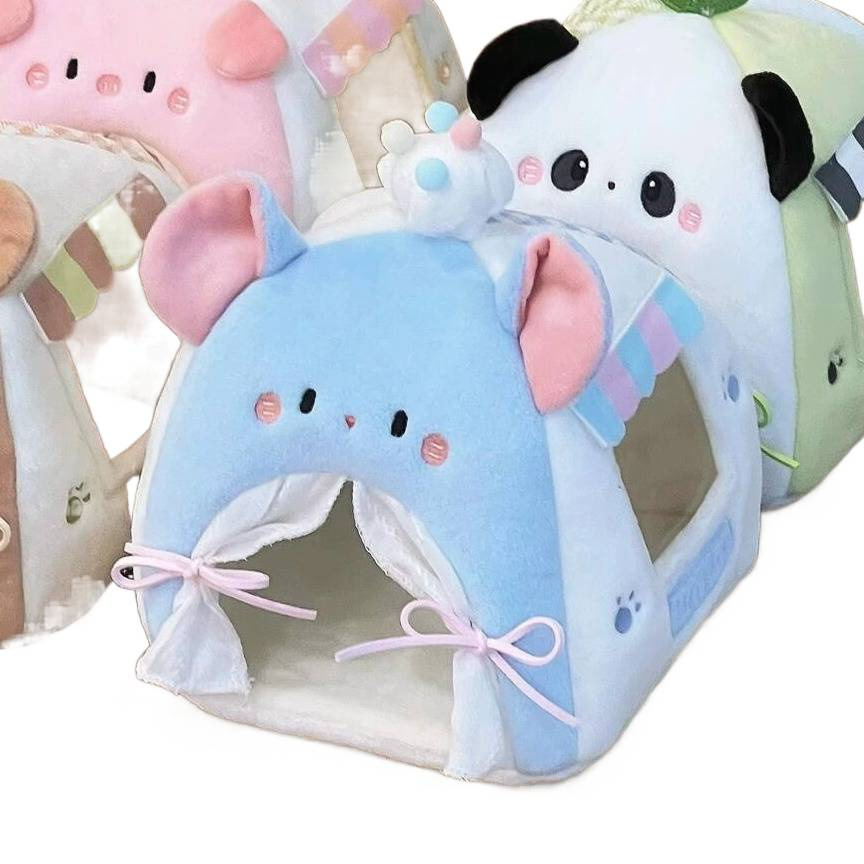 棉花娃娃玩偶帐篷床创意可爱小动物娃床10cm毛绒公仔拍照桌面摆件