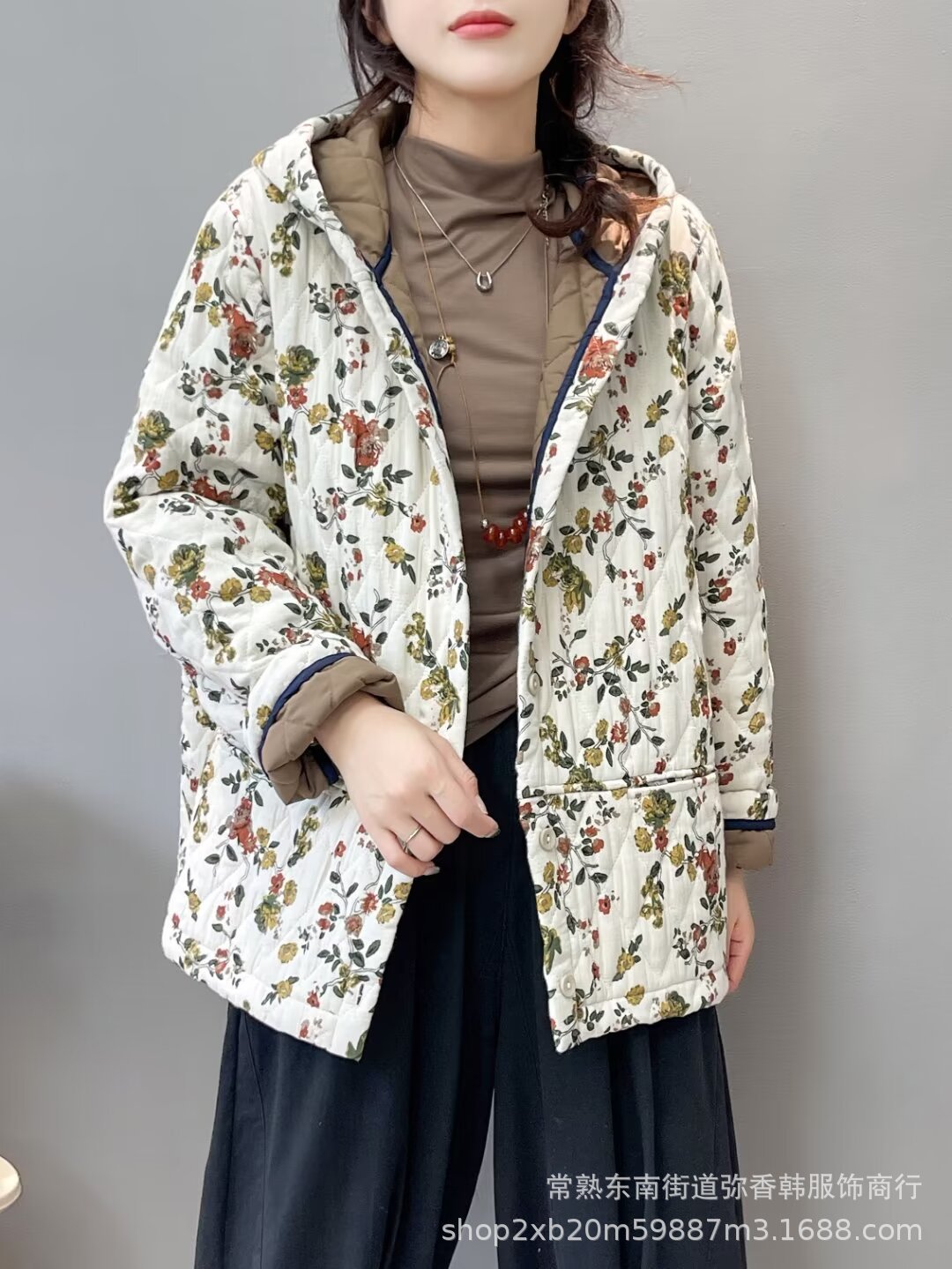 花棉袄2024新款复古中国风宽松大码连帽休闲保暖棉衣外套潮