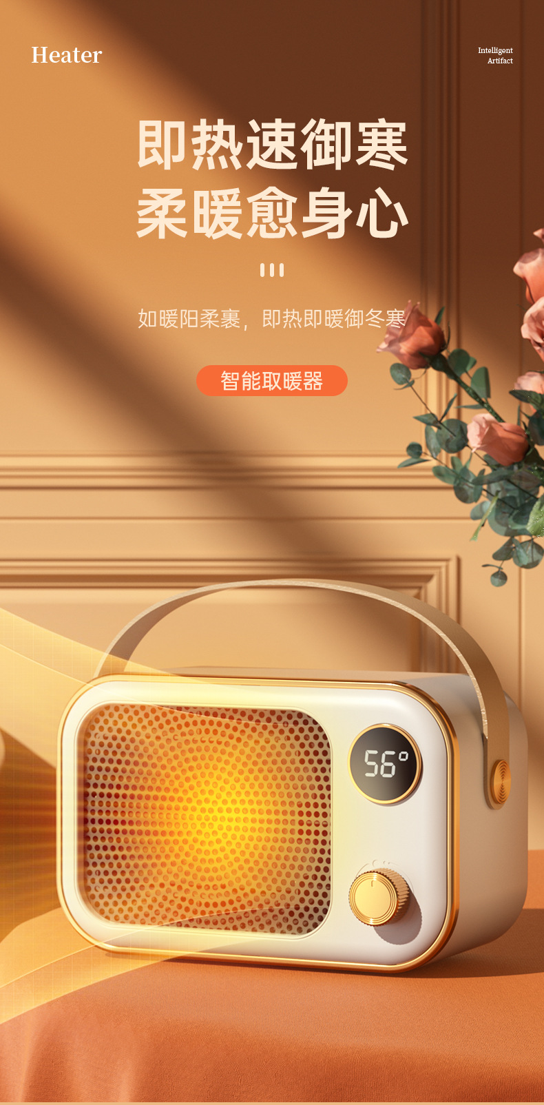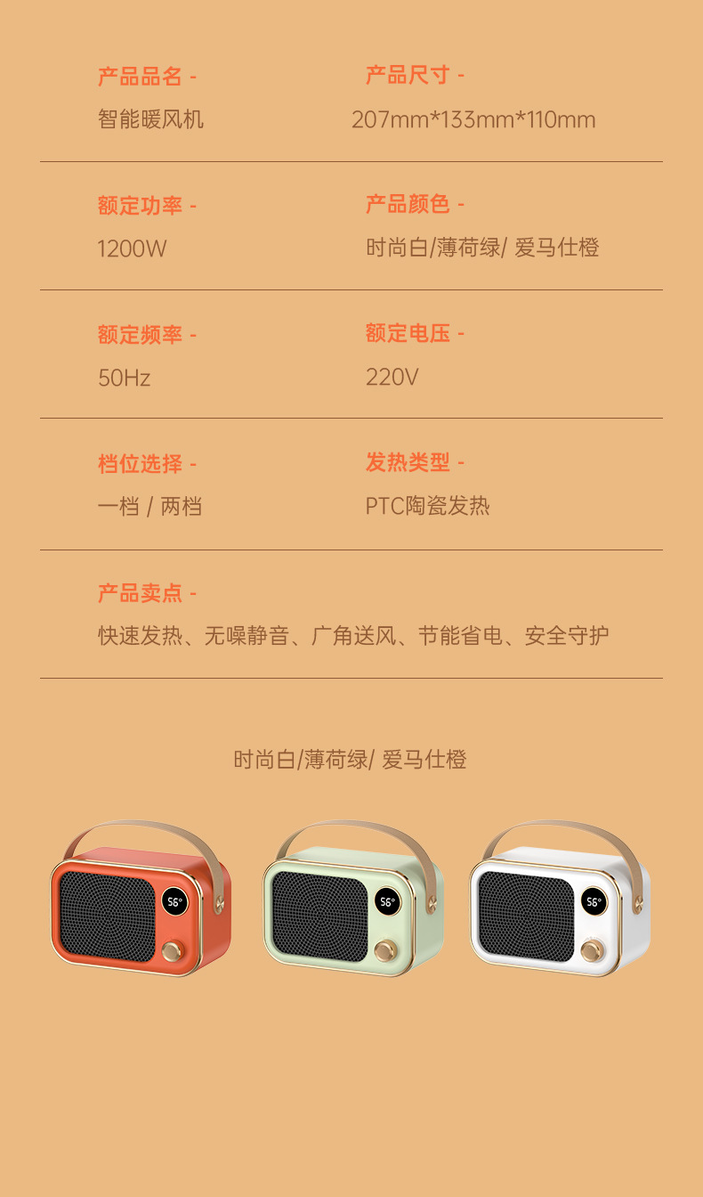 新款家用暖风机小型立式取暖器桌面办公电暖器PTC速热节能暖风机
