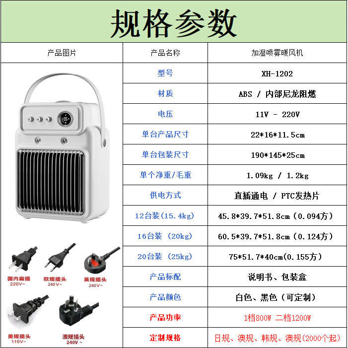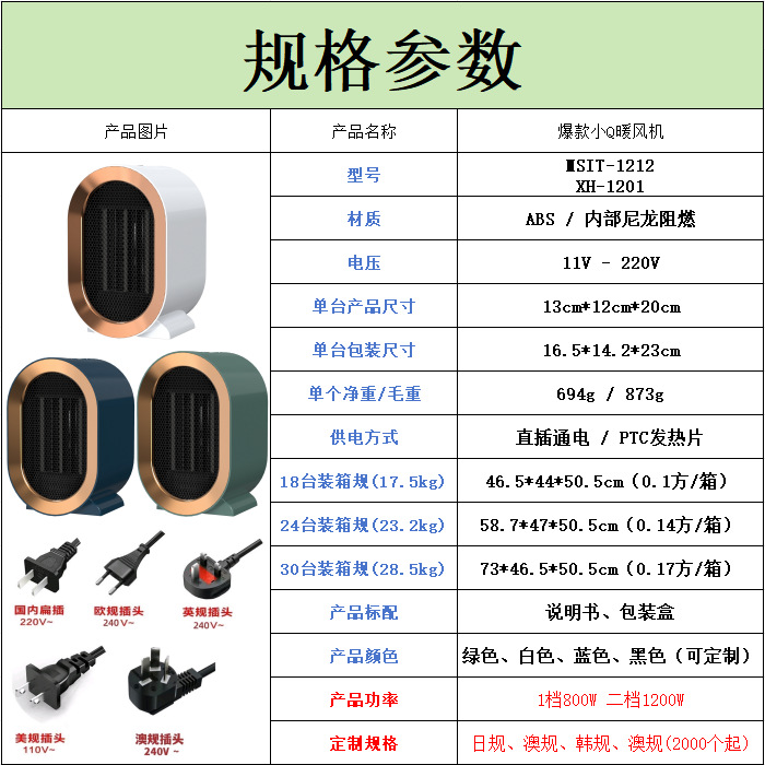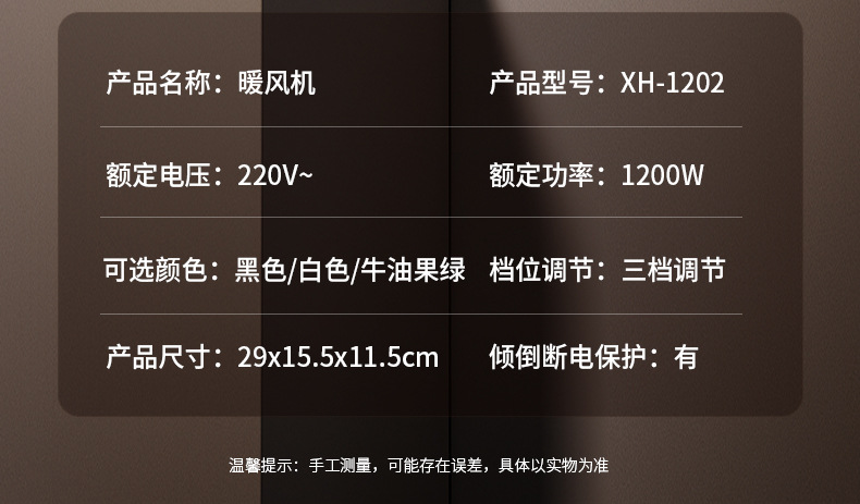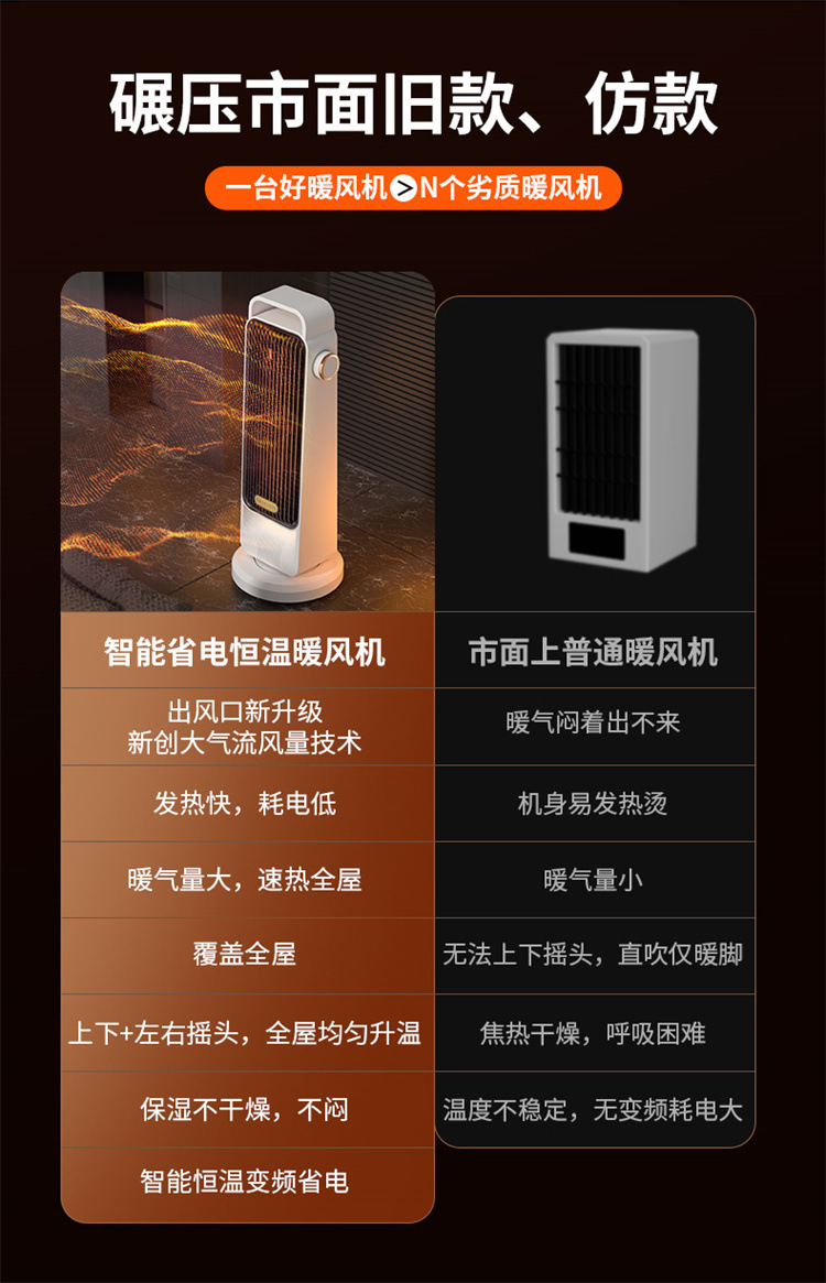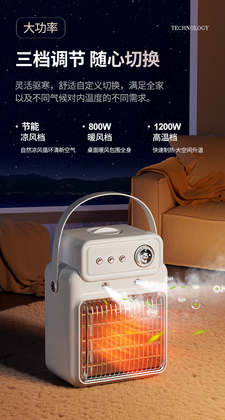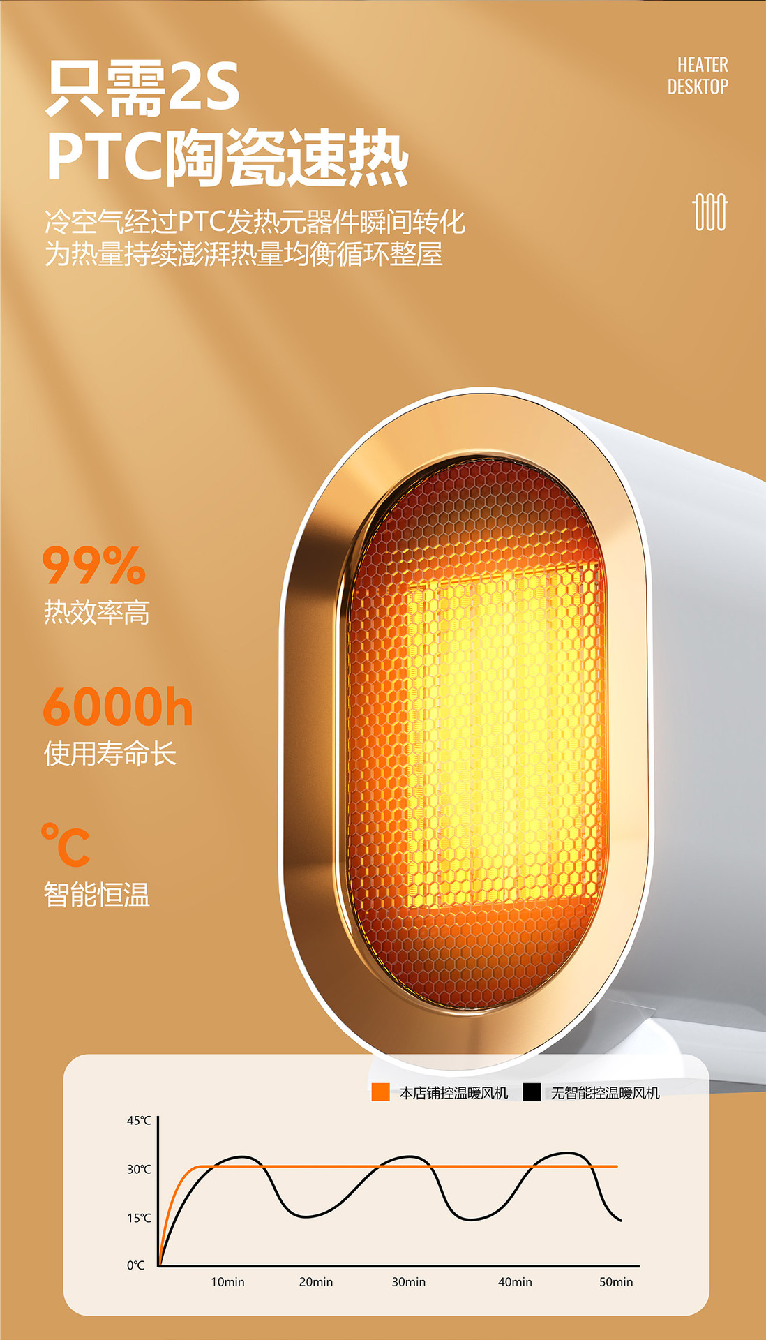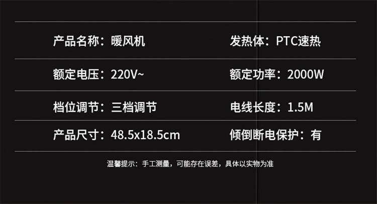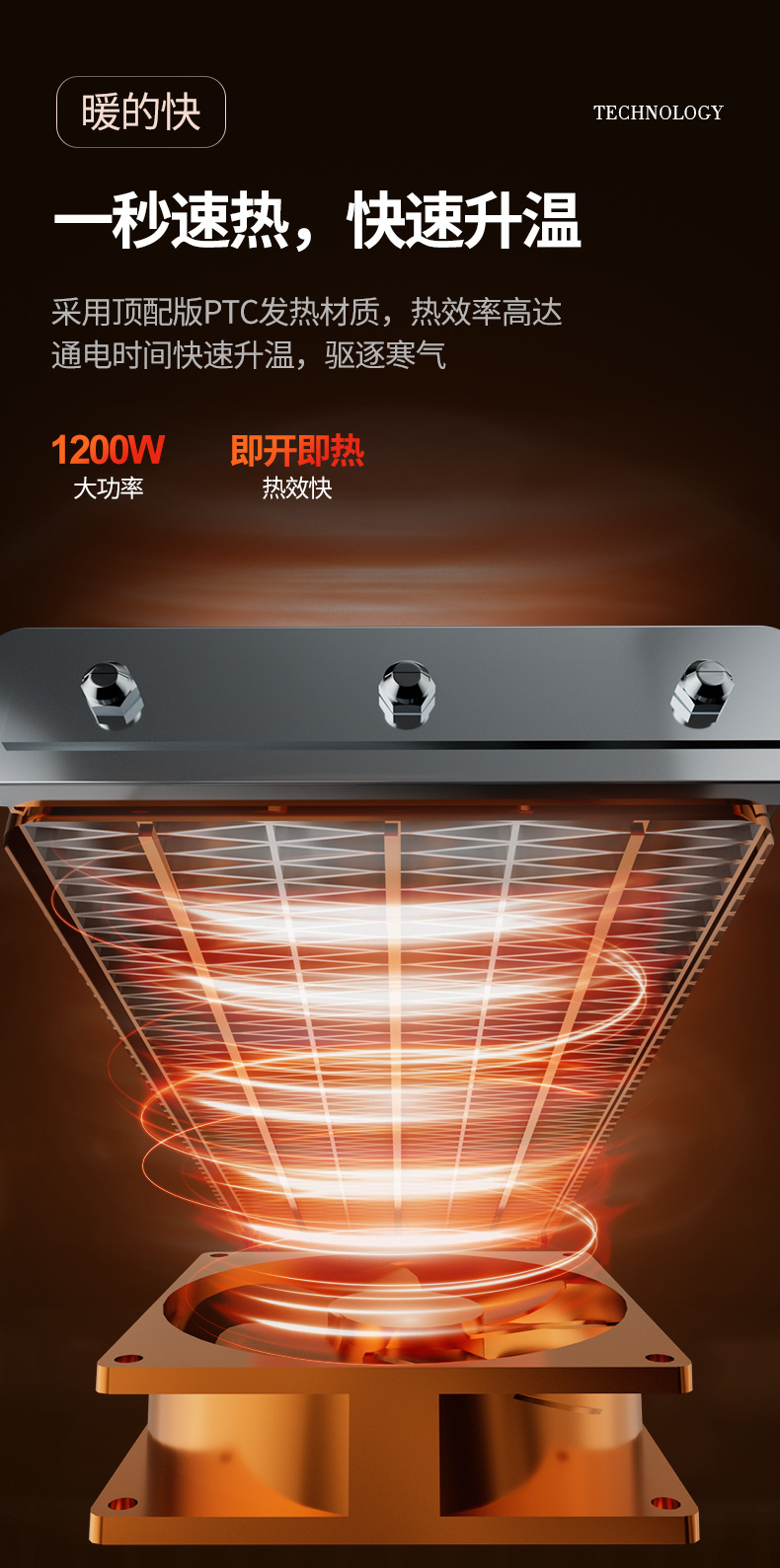 美斯特跨境暖风机1800W大功率欧规取暖器PTC发热电暖气家用加热器