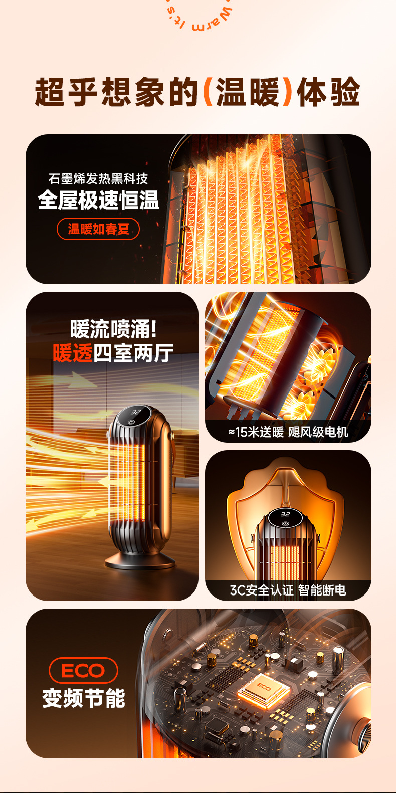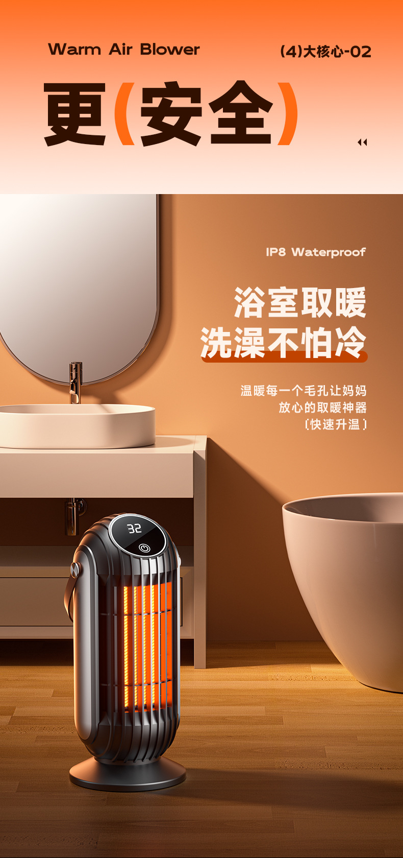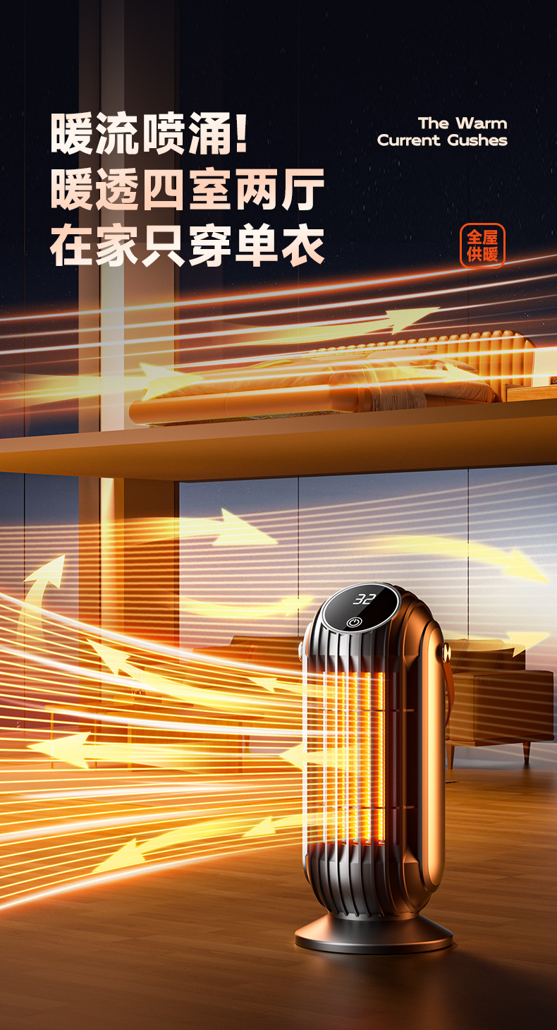2025新款暖风机家用大功率桌面取暖器PTC发热办公室智能电暖器