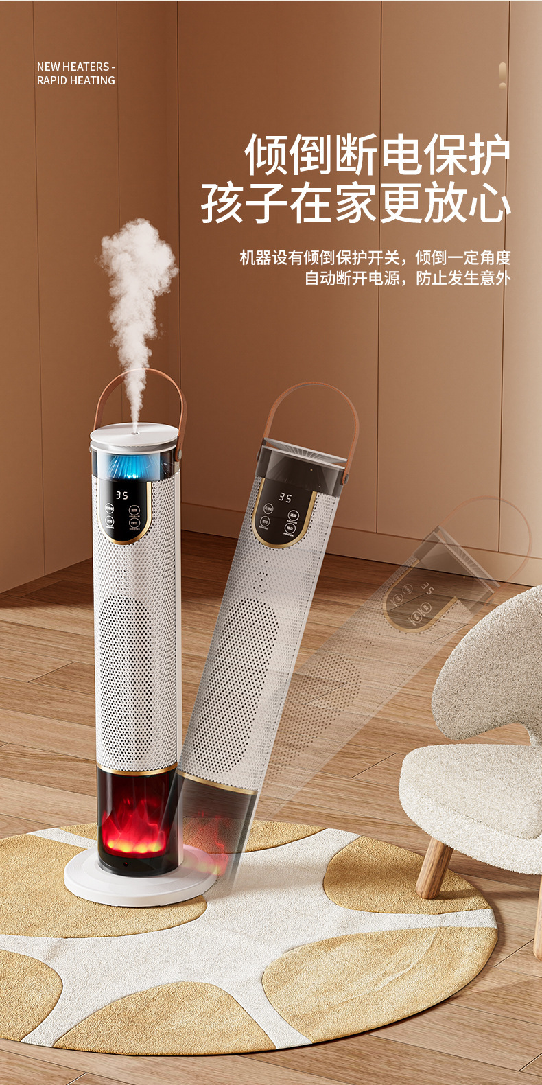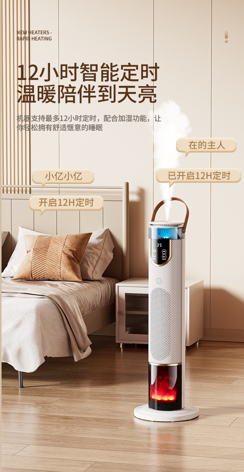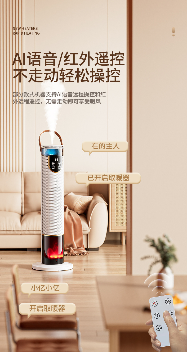 仿真火焰暖风机家用卧室电暖器办公室速热立式智能语音加湿暖风机