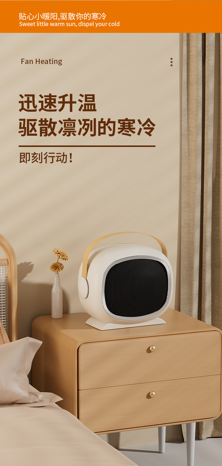 暖风机桌面家用大功率PTC陶瓷发热速热 便携式小型电暖取暖器跨境