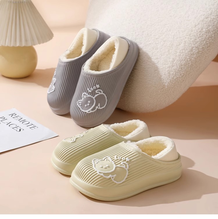 秋冬棉拖鞋女士情侣款防滑包跟厚底室内外居家柔软家居防水棉拖鞋