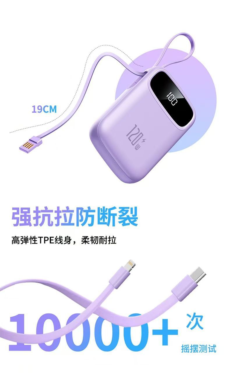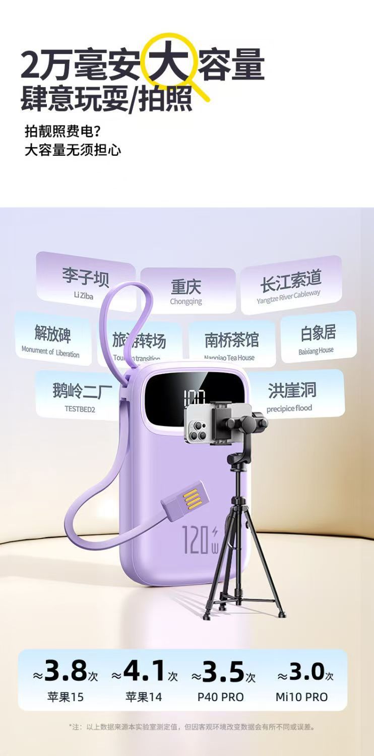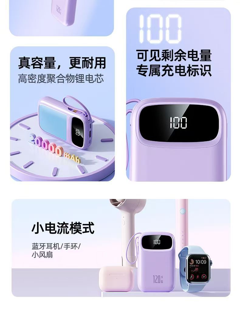 3C认证2025新款超级快充电宝超大容量20000毫安超薄小巧便携自带
