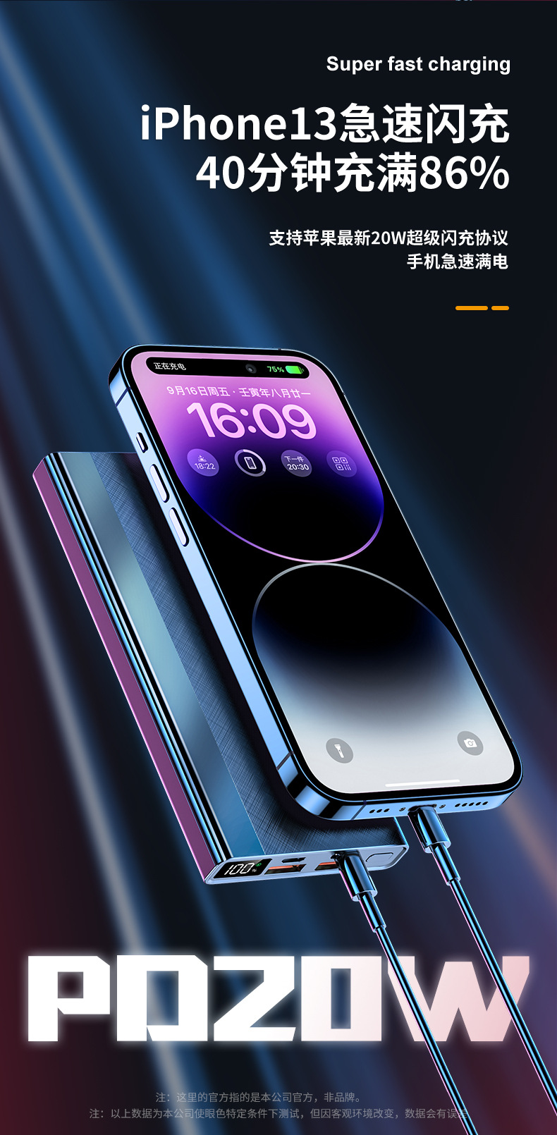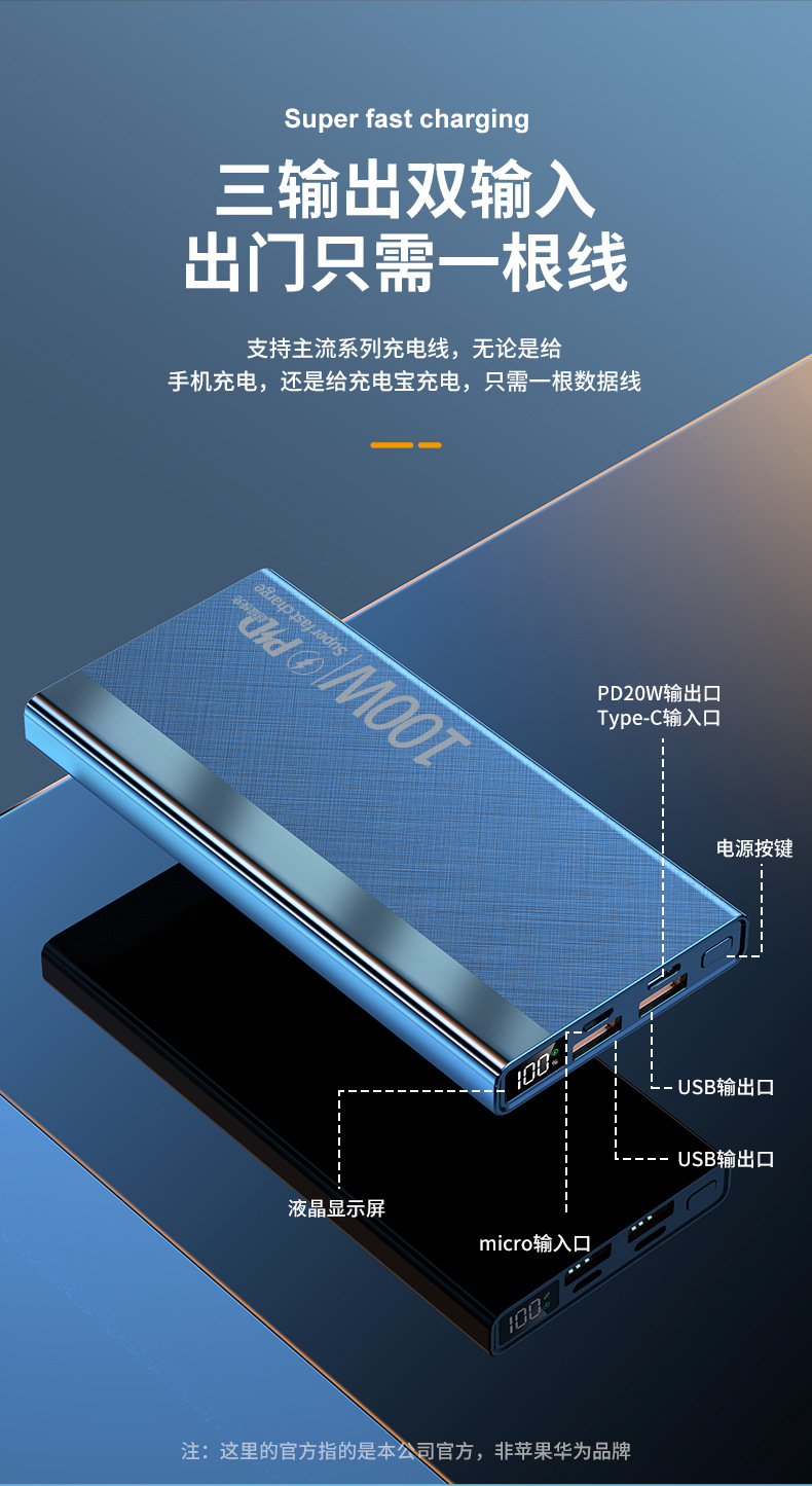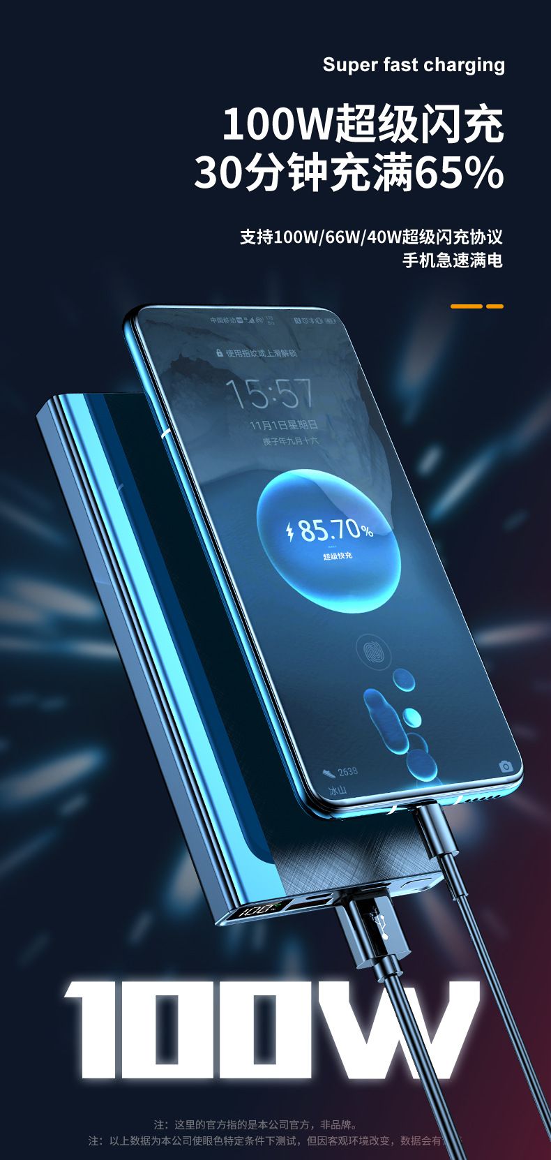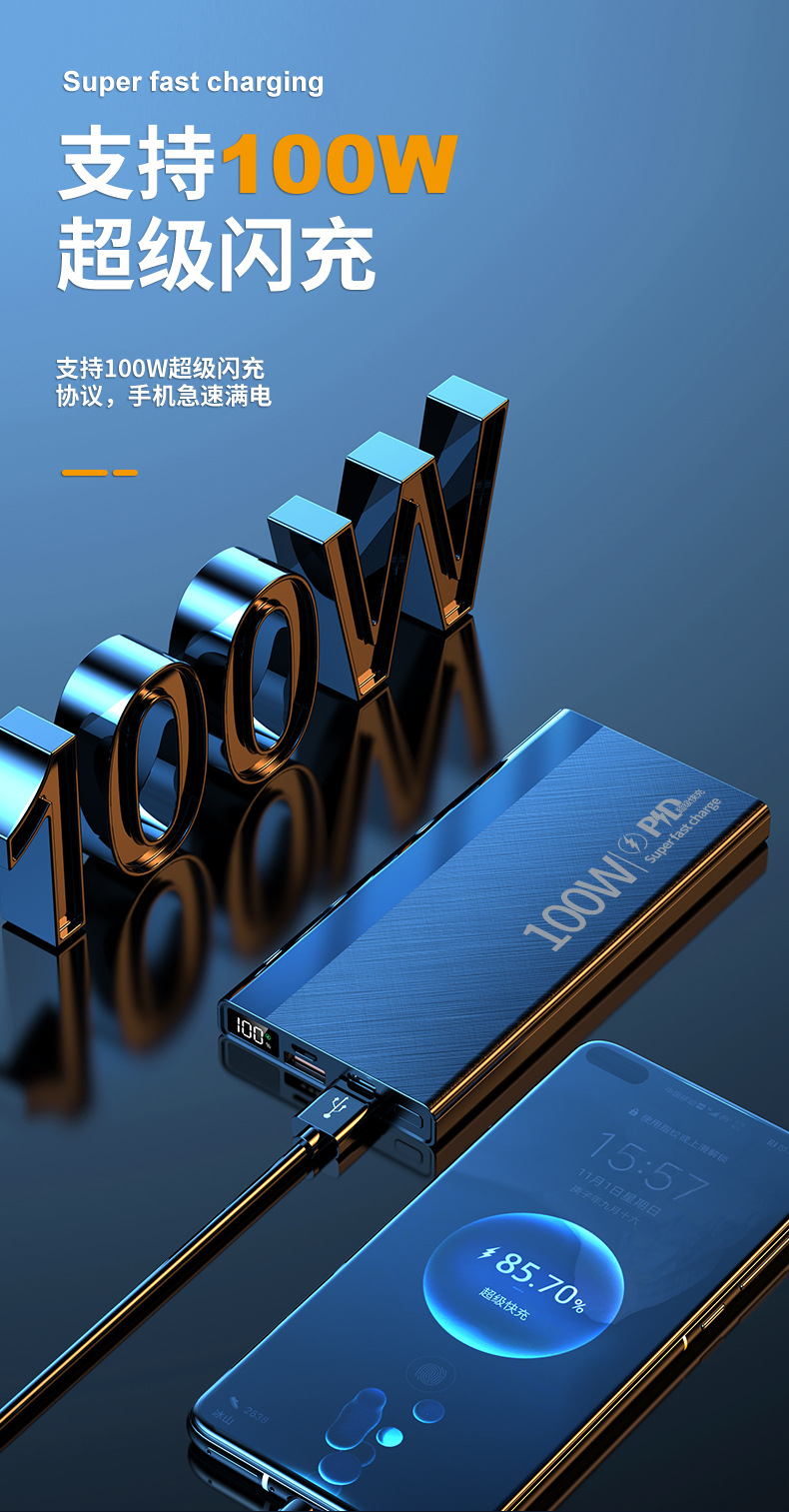 新款100W双向超级快充20000毫安大容量超薄快充充电宝礼品一件代