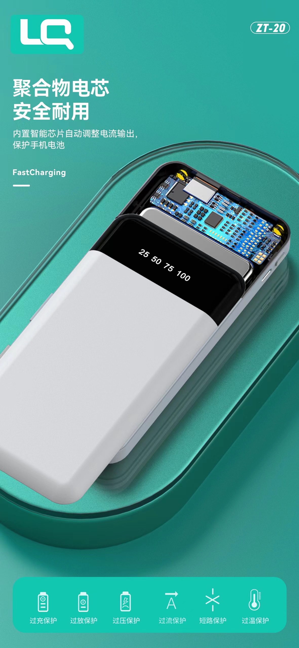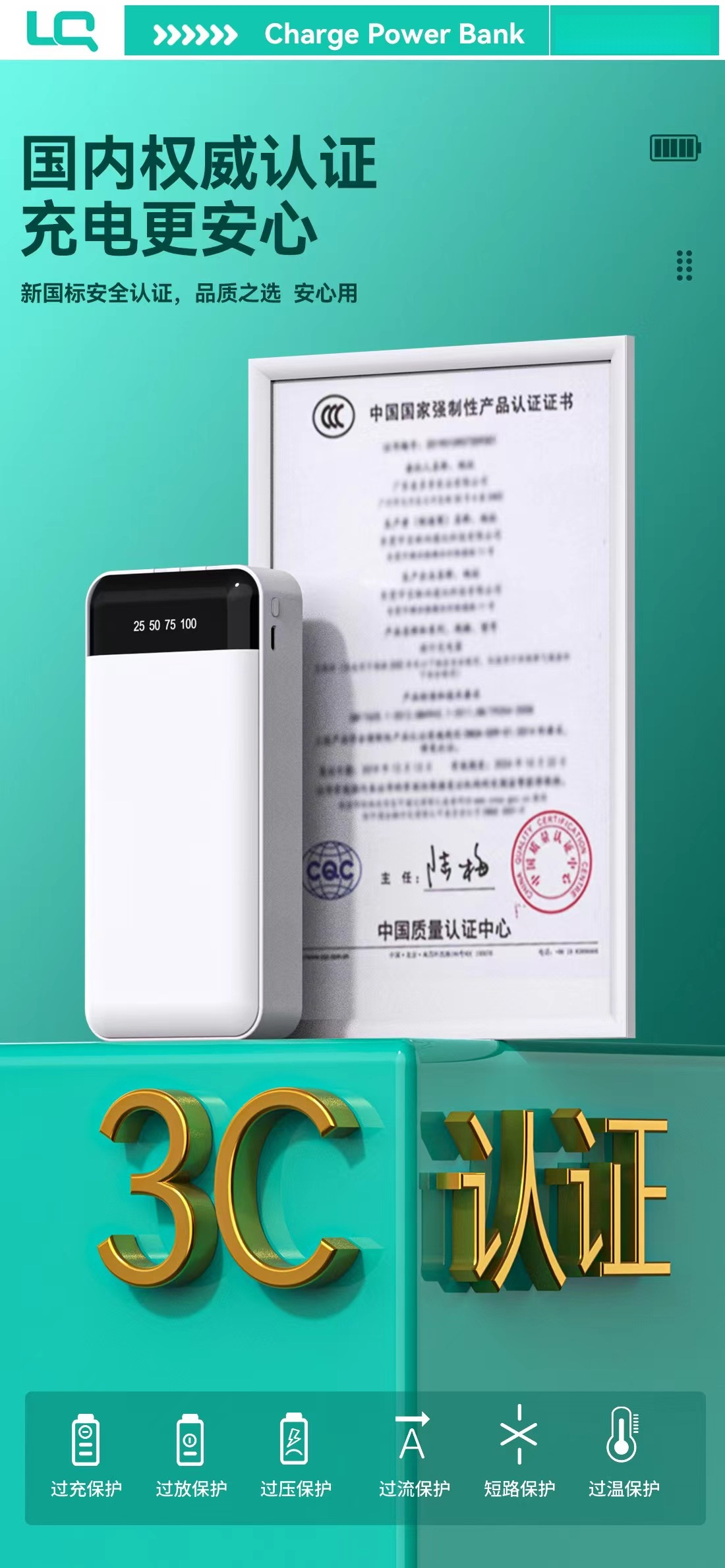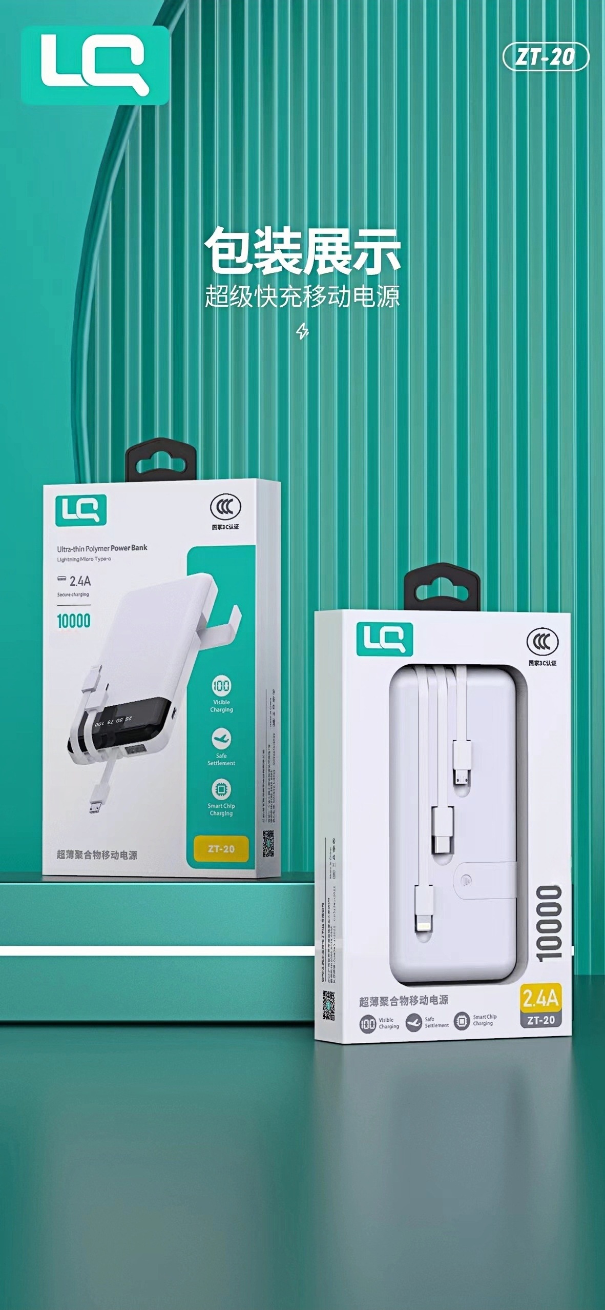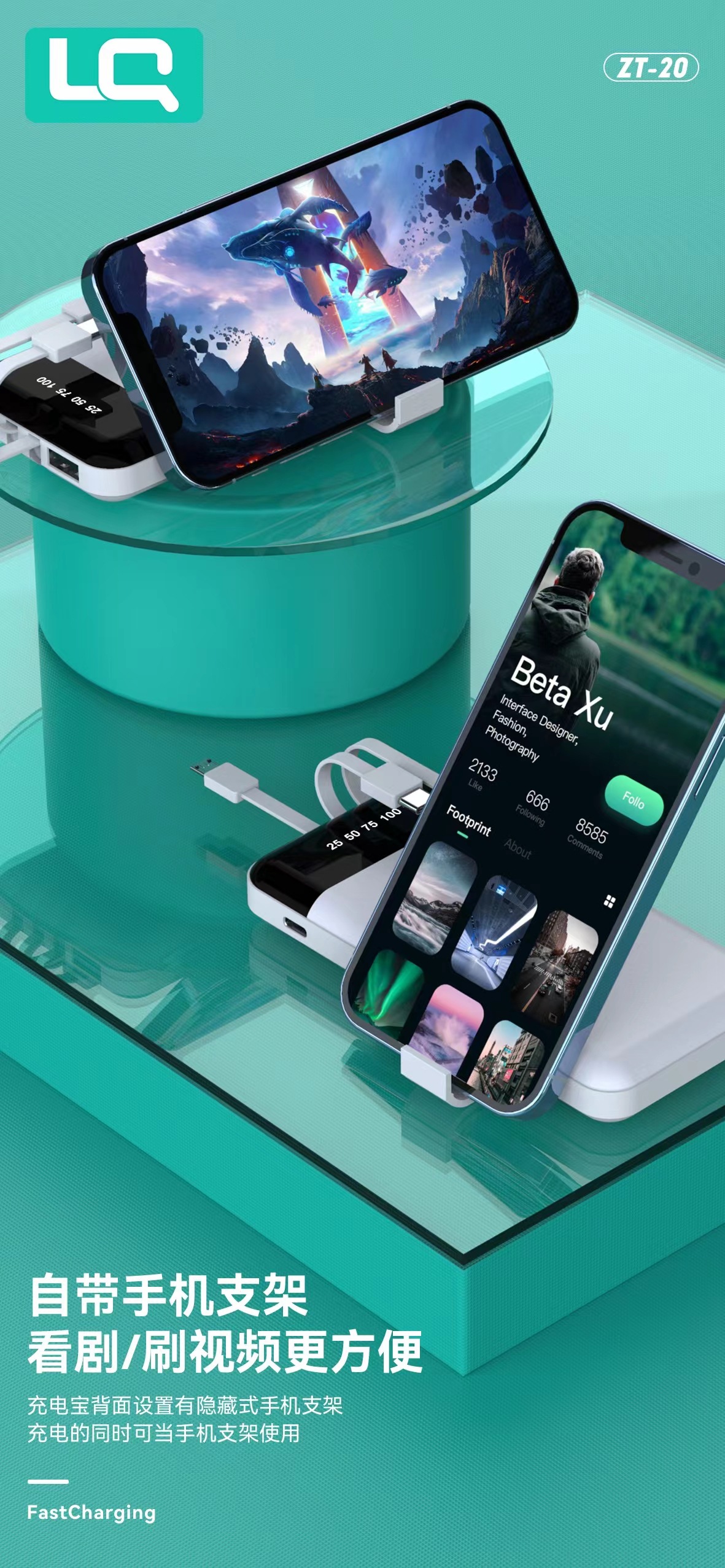 手机龙奇自带线三线10000毫安充电宝便携快充2万数显超大移动电源