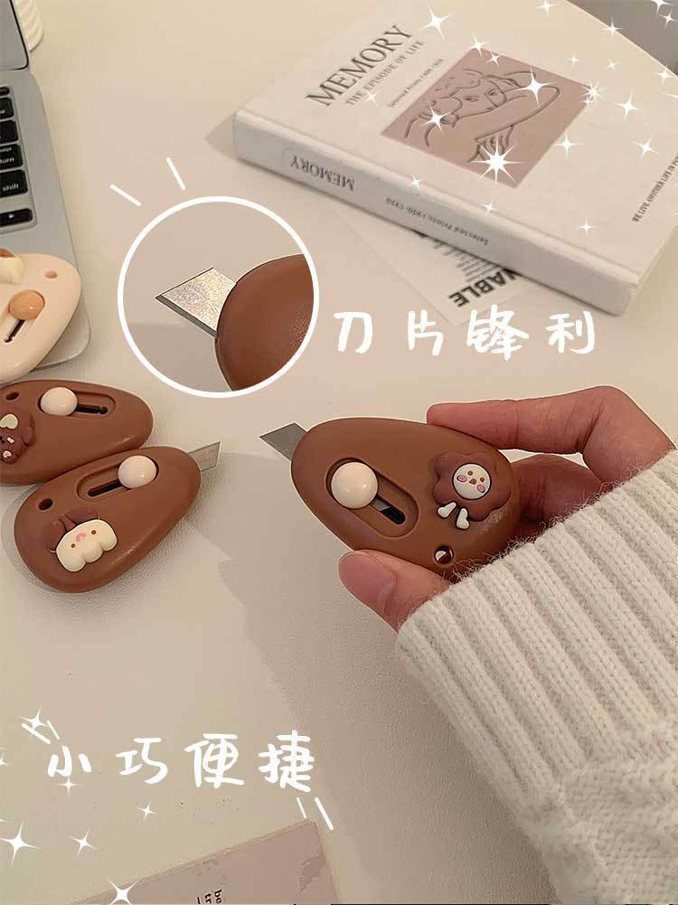 迷你美工刀家用便携开箱拆快递拆信自动回弹学生办公裁纸卡通美工