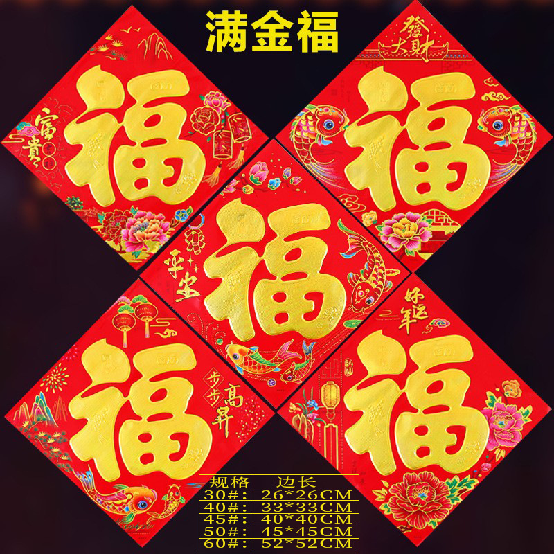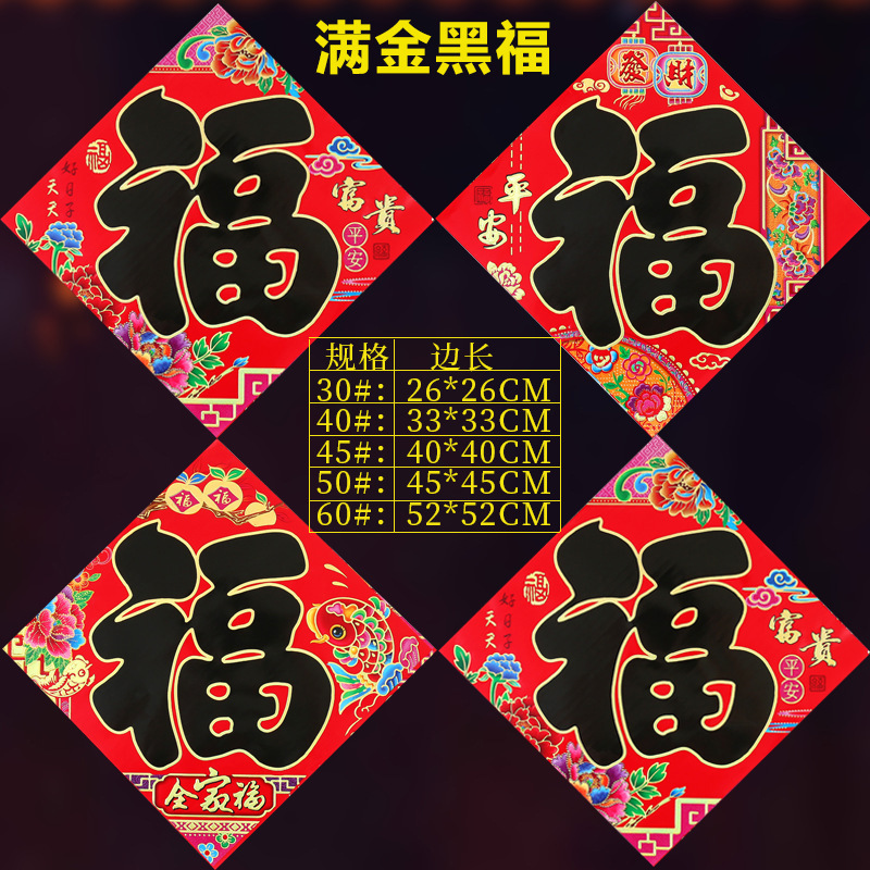2026马年春节新款满烫金铜版纸平面烫金福字 大门黑福福字门贴