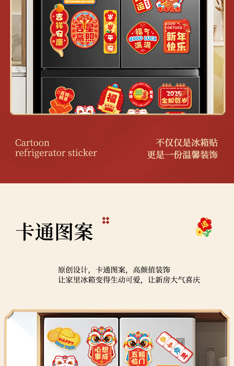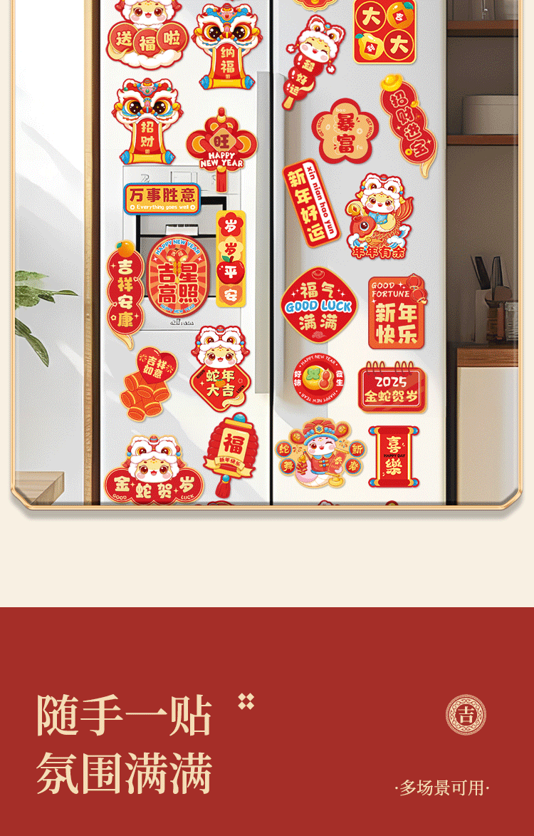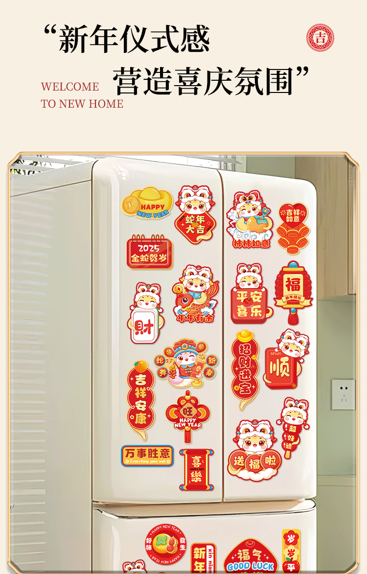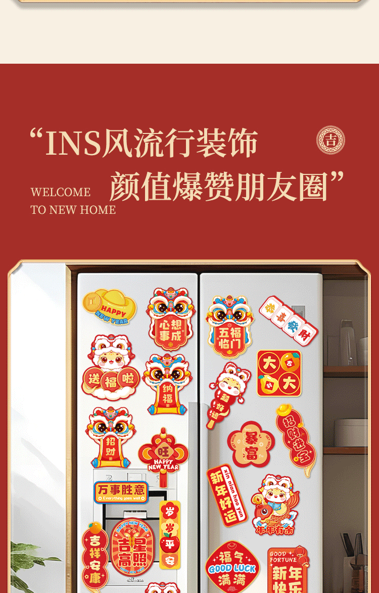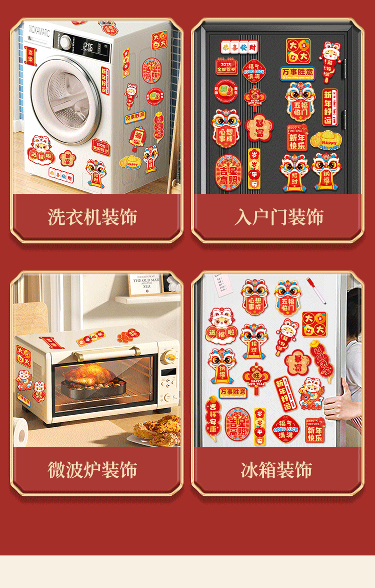 2026马年冰箱贴门贴新年装饰品对联磁吸福字创意春节过年场景布置