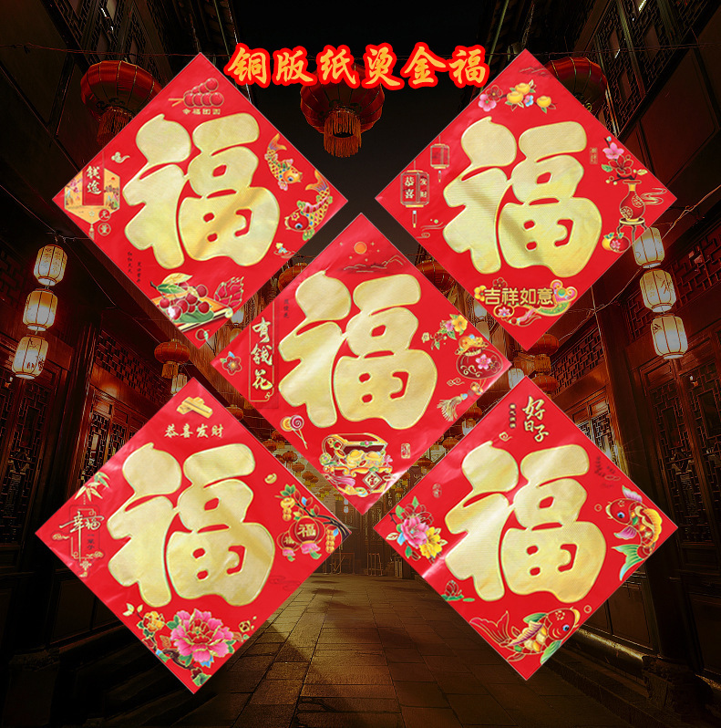 2026马年新款铜版纸满烫金福字门贴春节用品窗贴年画厂家批发
