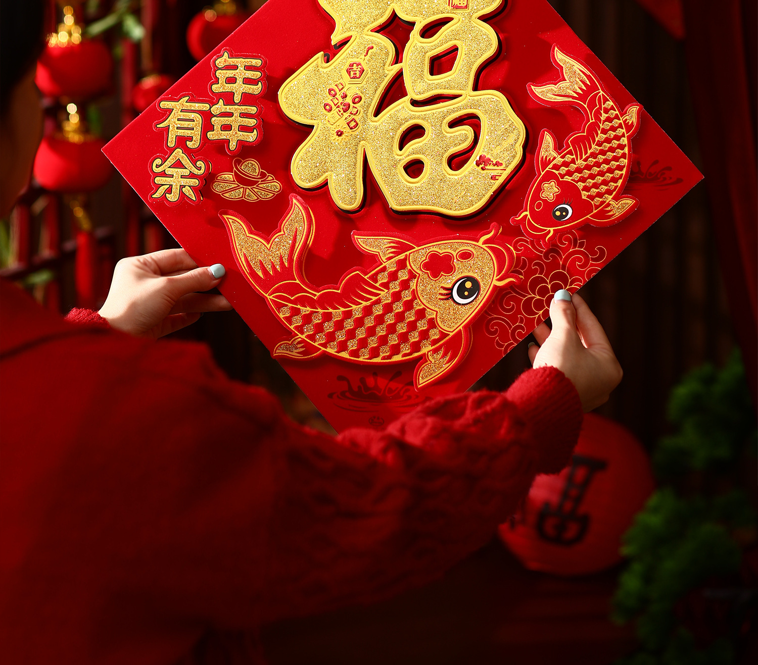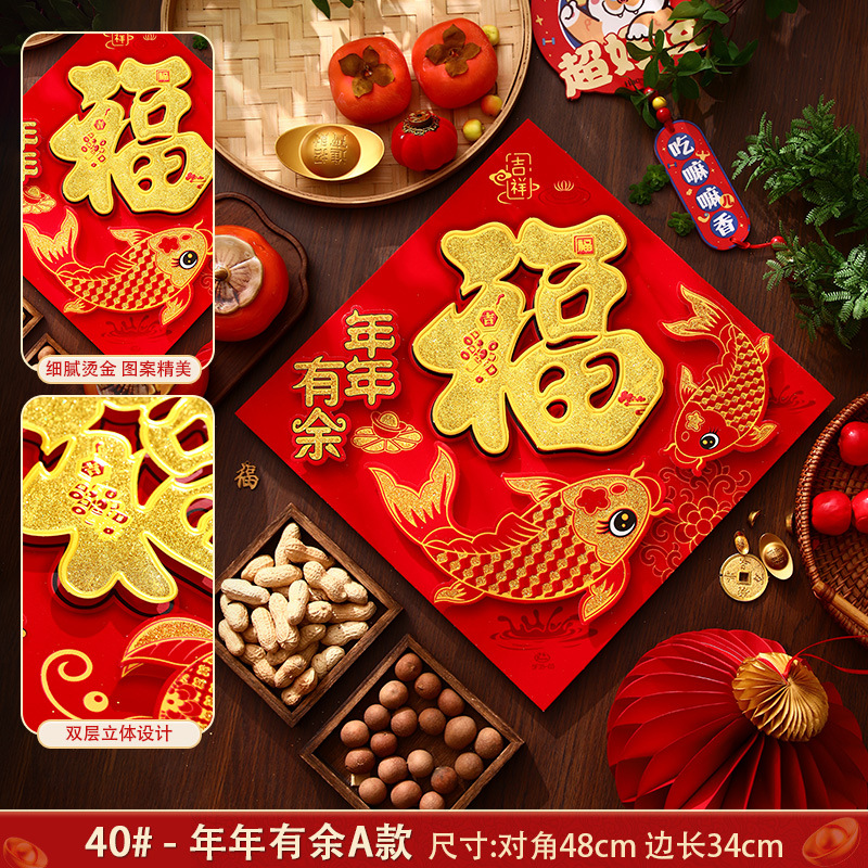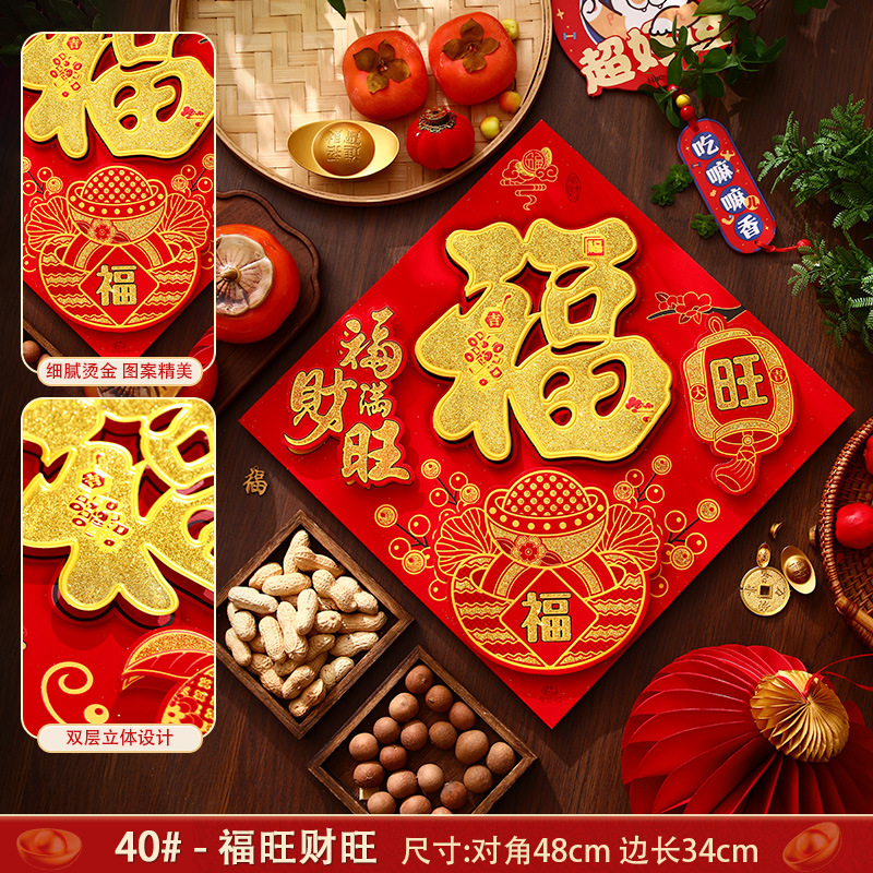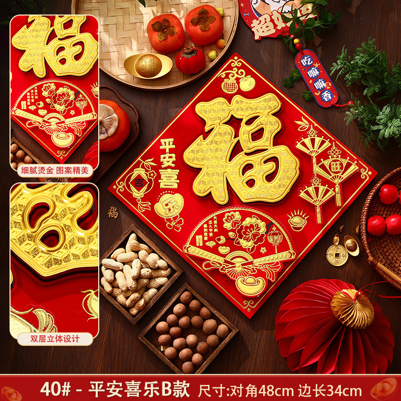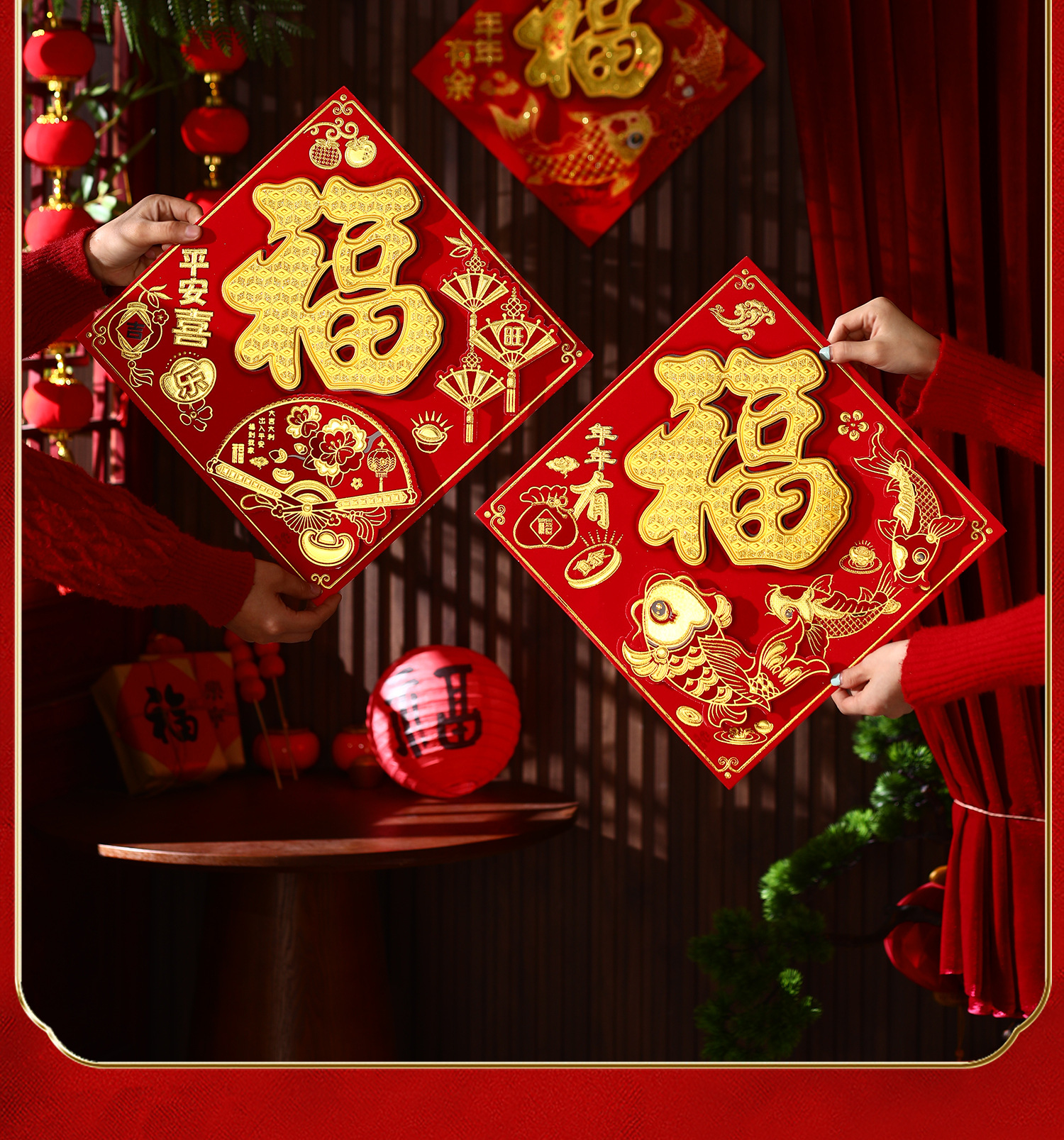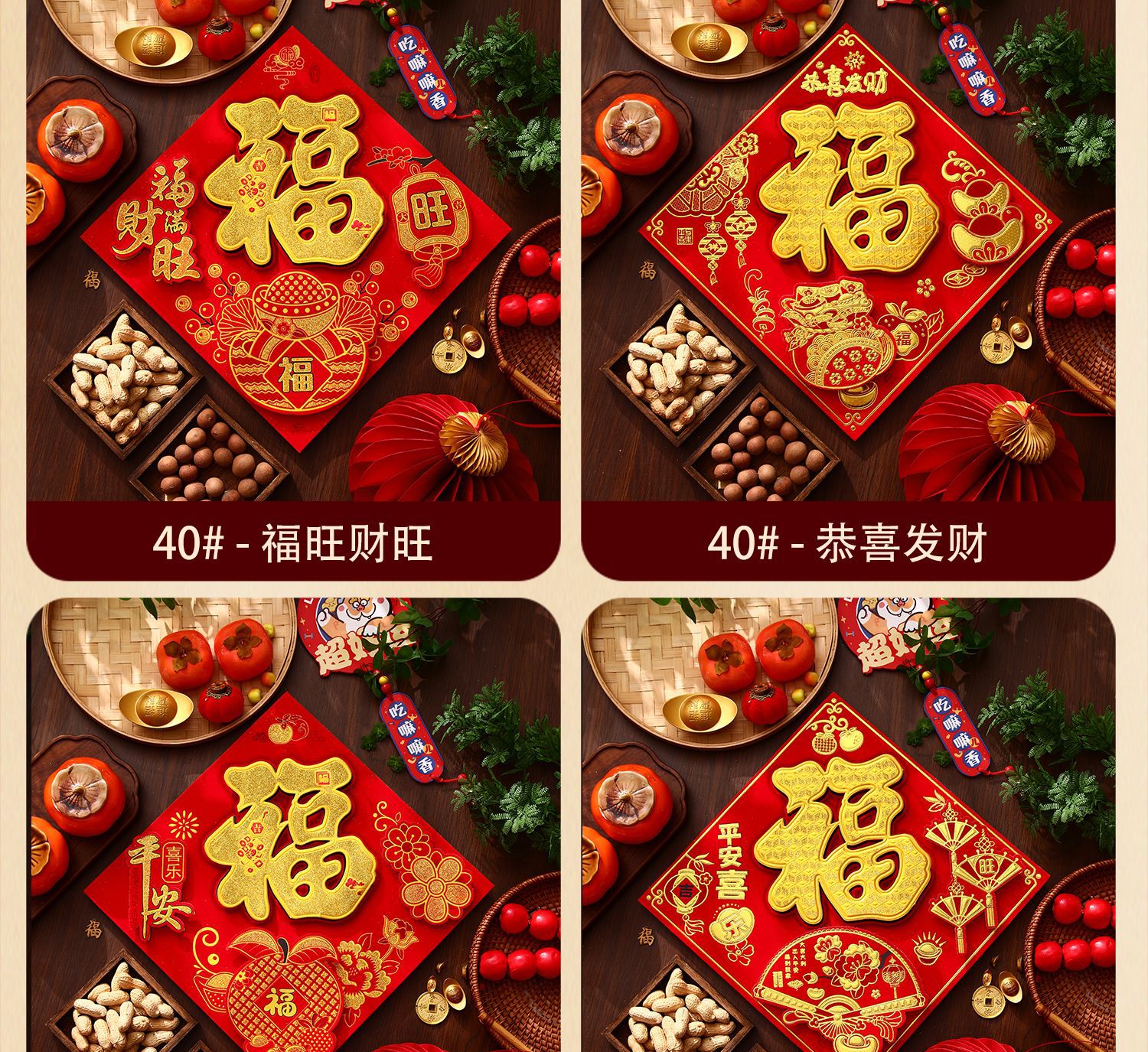 新年福字门贴2026马年窗花贴春节过年布置装饰入户门立体斗方批发