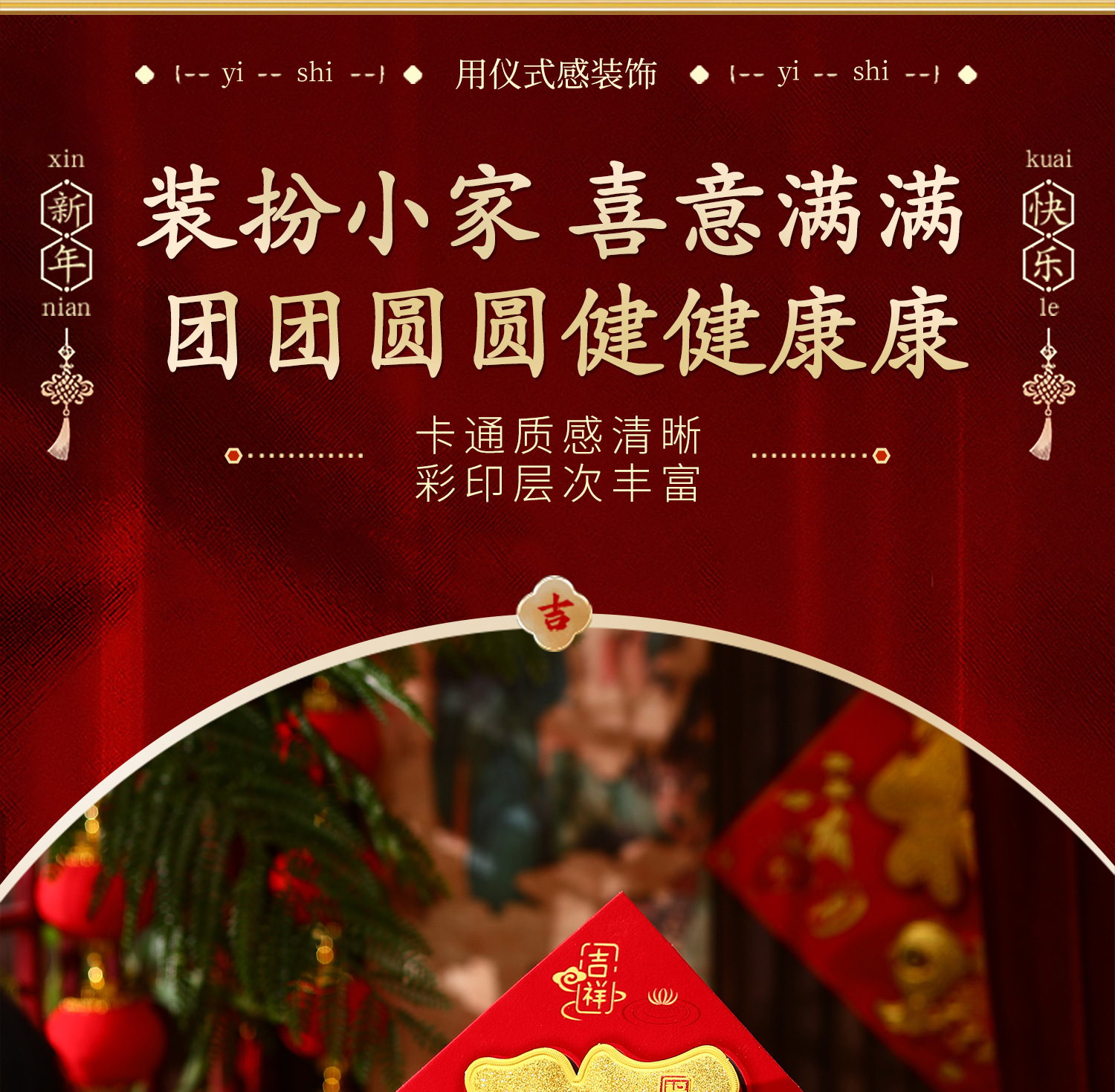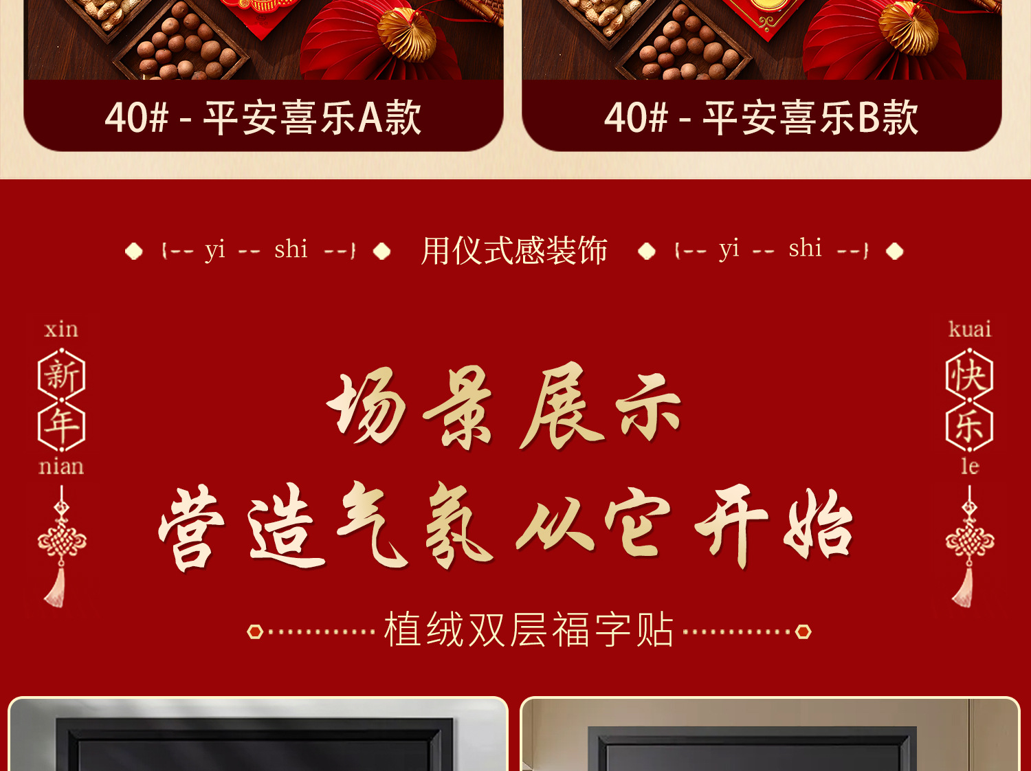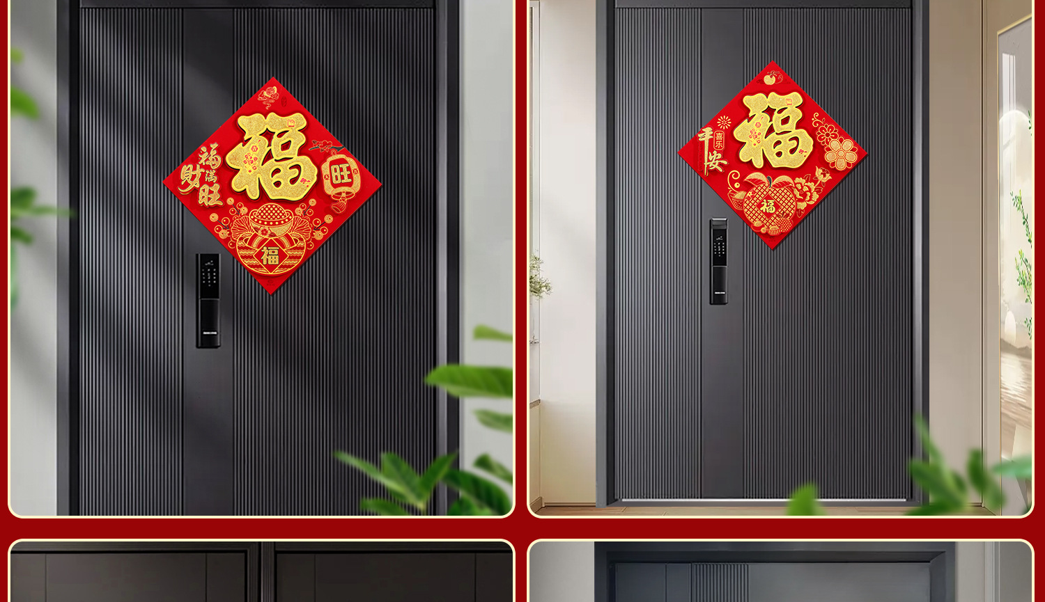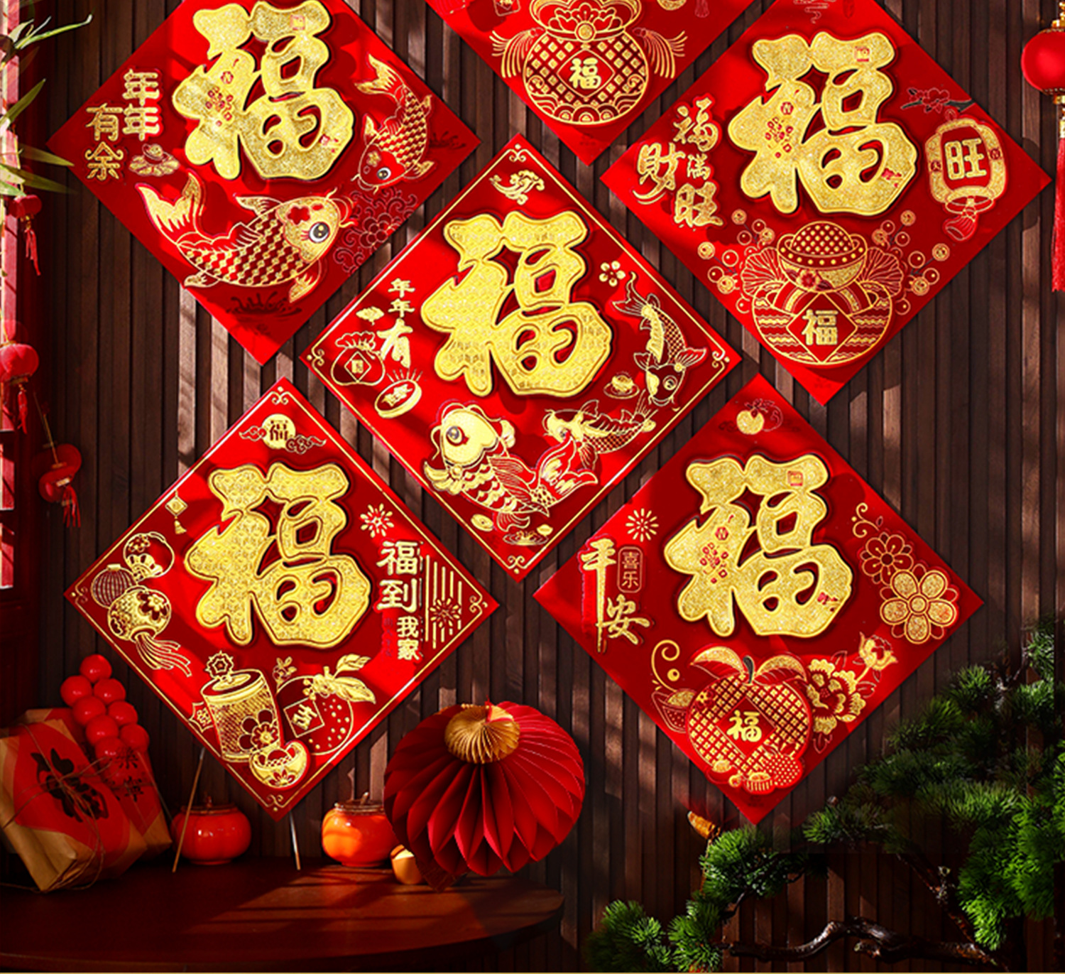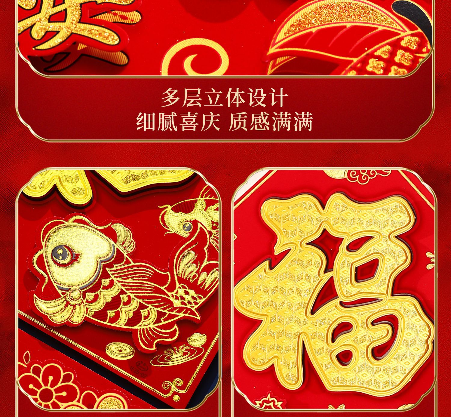 新年福字门贴2026马年窗花贴春节过年布置装饰入户门立体斗方批发