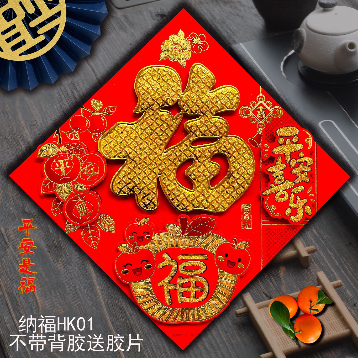 2026马年生肖带背胶植绒立体福字门贴烫金立体福字贴植批发定制
