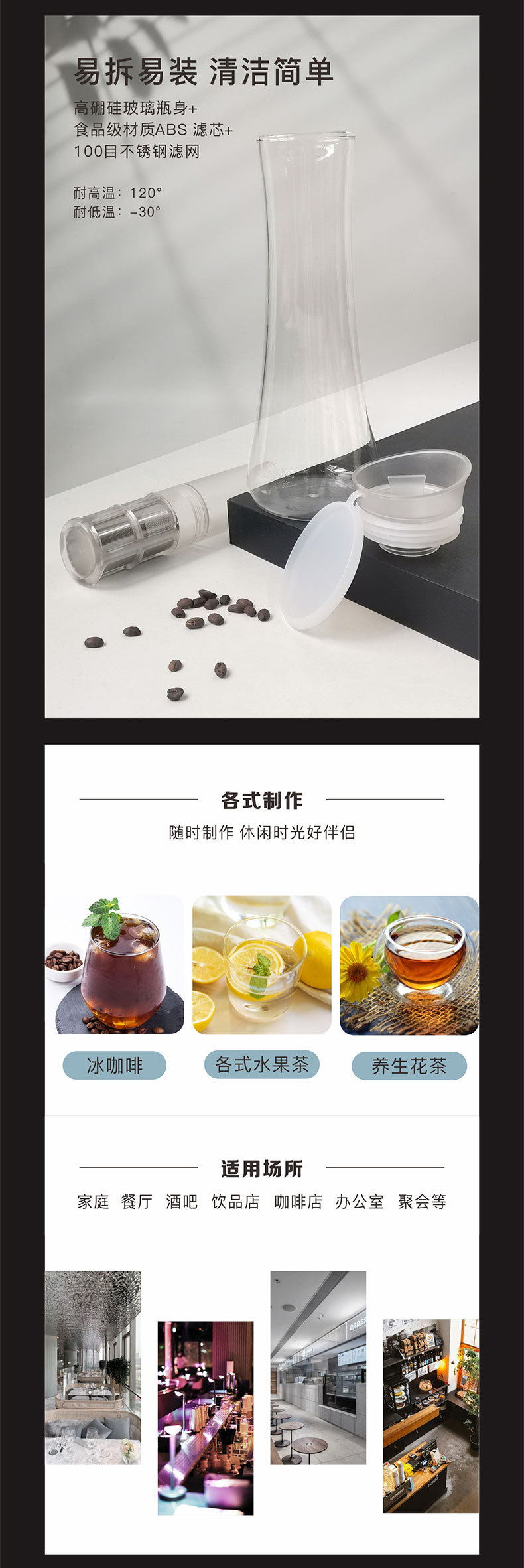 大容量冷萃壶家用分享壶手冲咖啡壶高硼硅玻璃过滤器耐热果茶壶