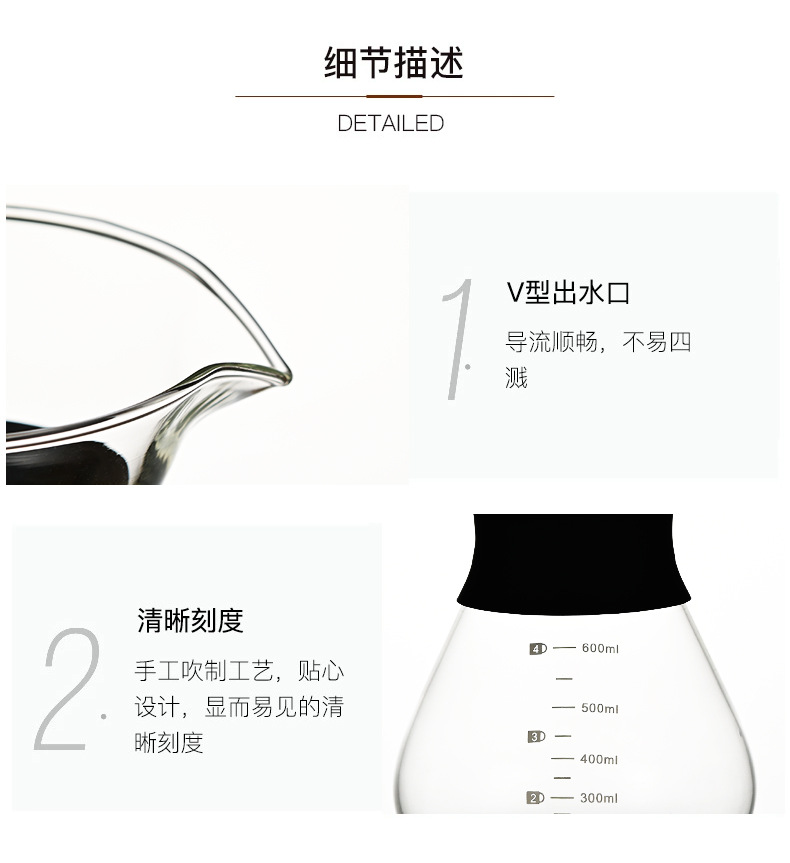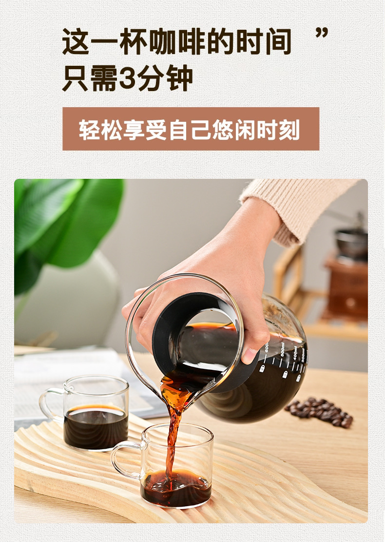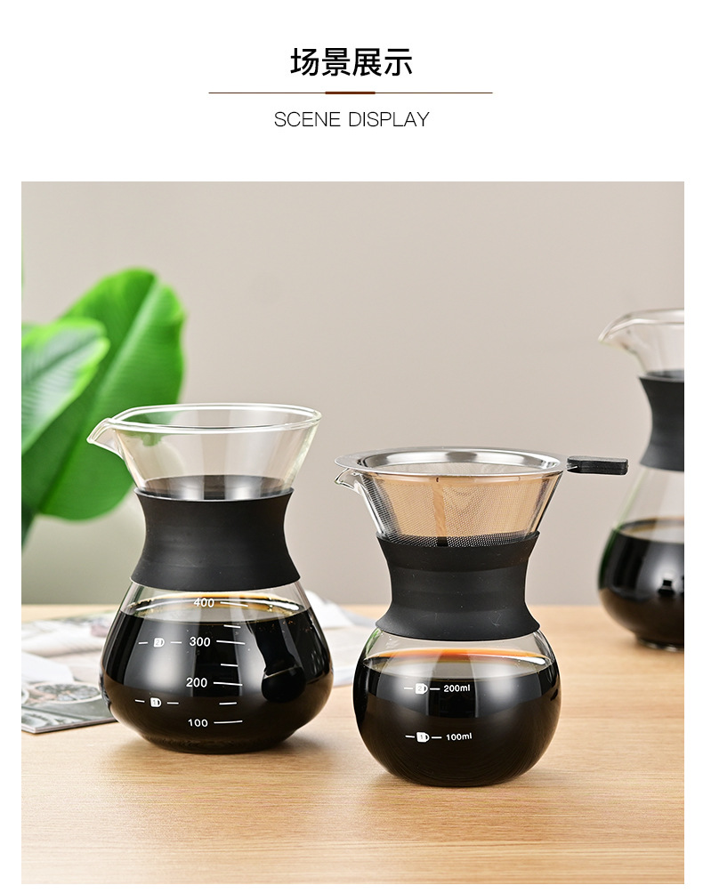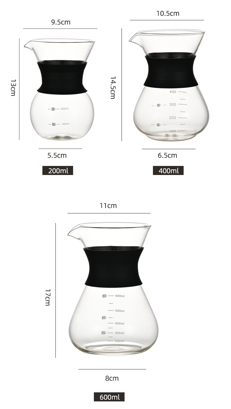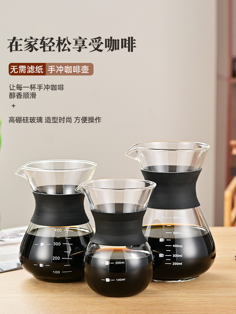 玻璃手冲咖啡滤杯滴漏壶玻璃壶过滤器带刻度冷萃手冲咖啡壶分享壶