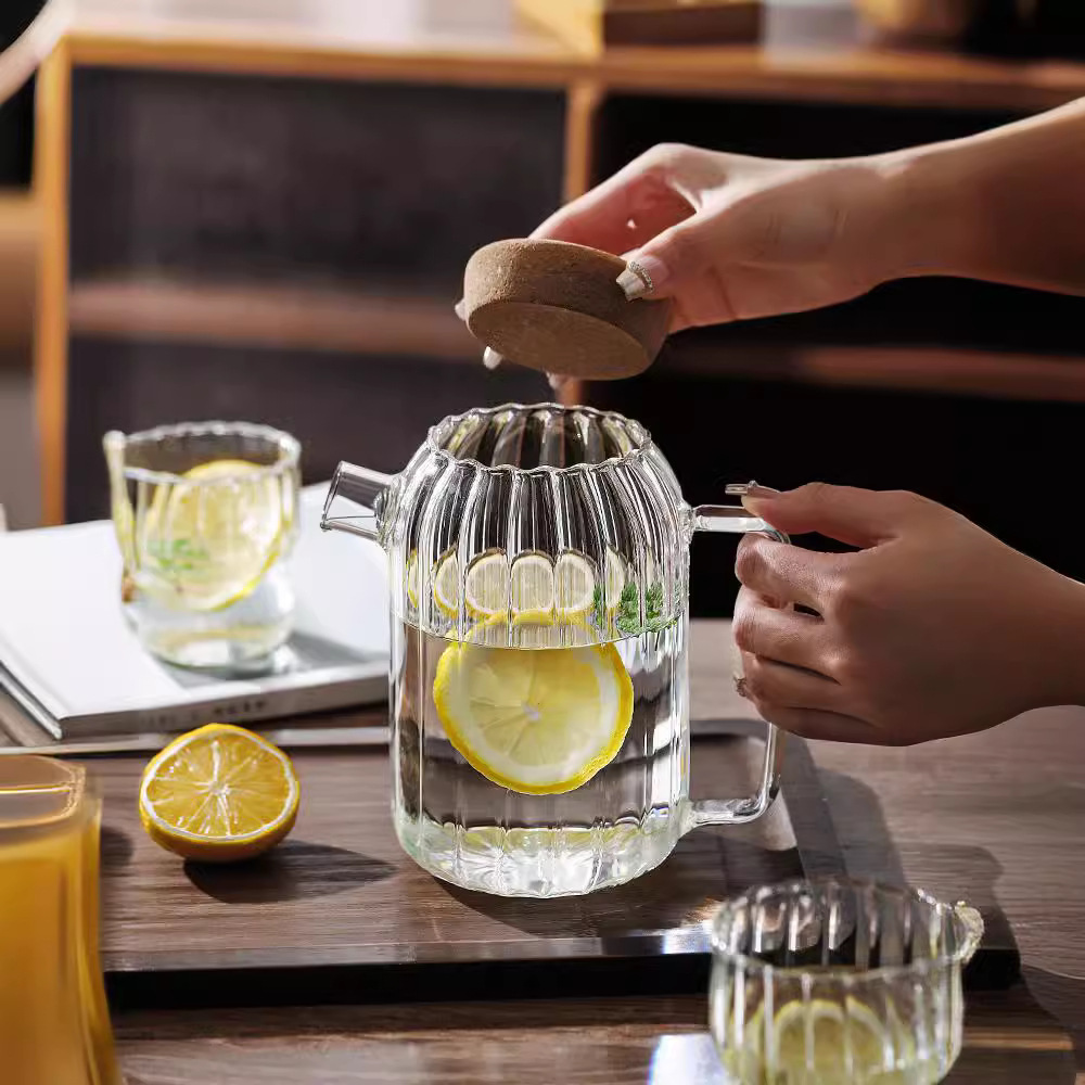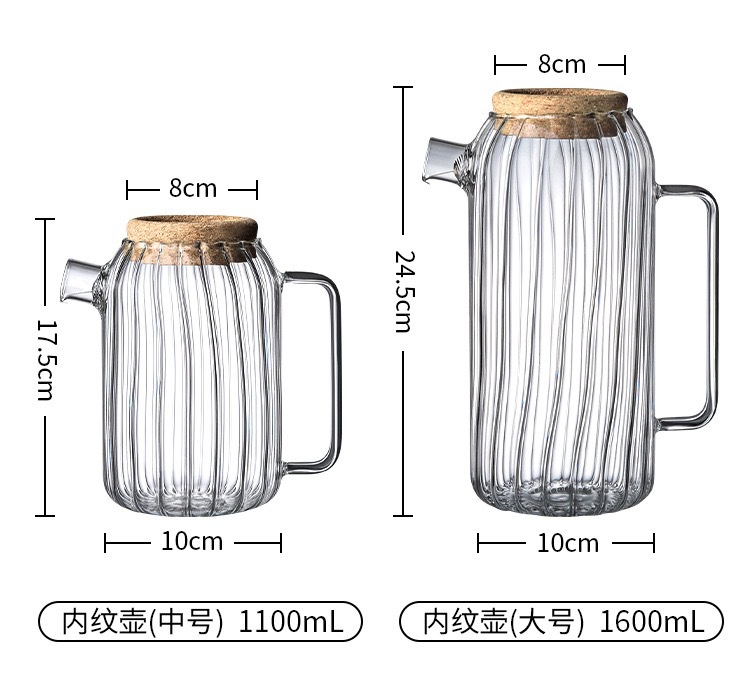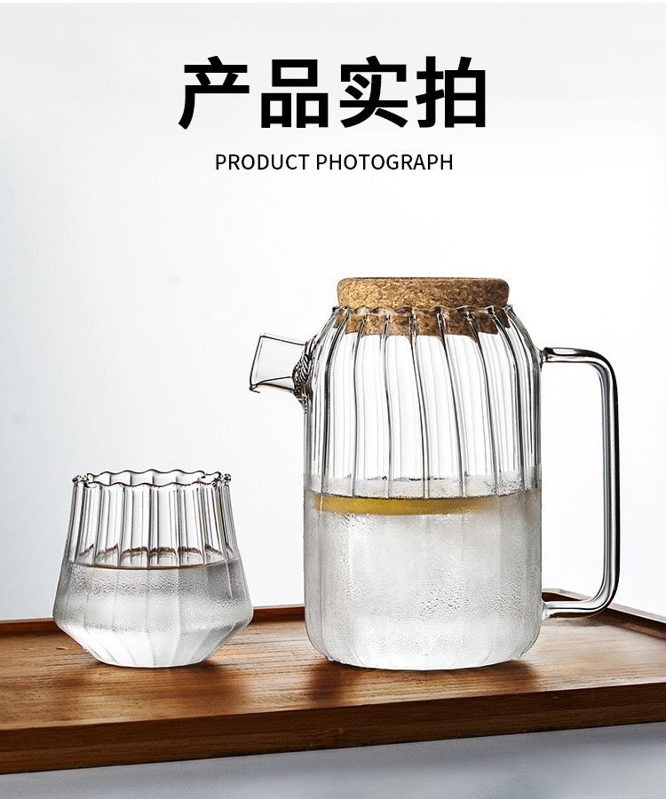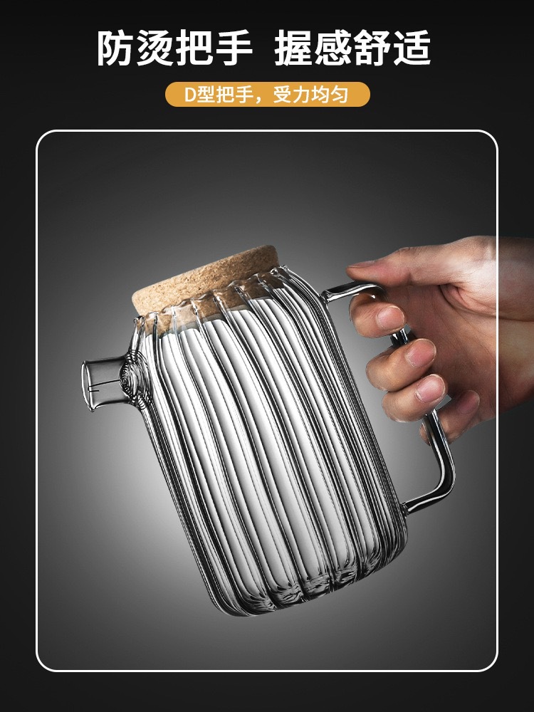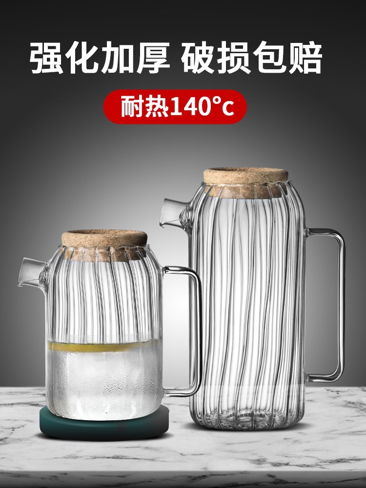 新款竖纹透明玻璃冷水壶家用凉白开水壶高硼硅玻璃果茶壶茶壶网红