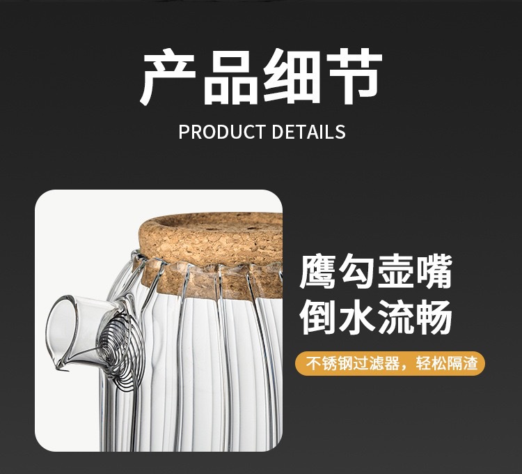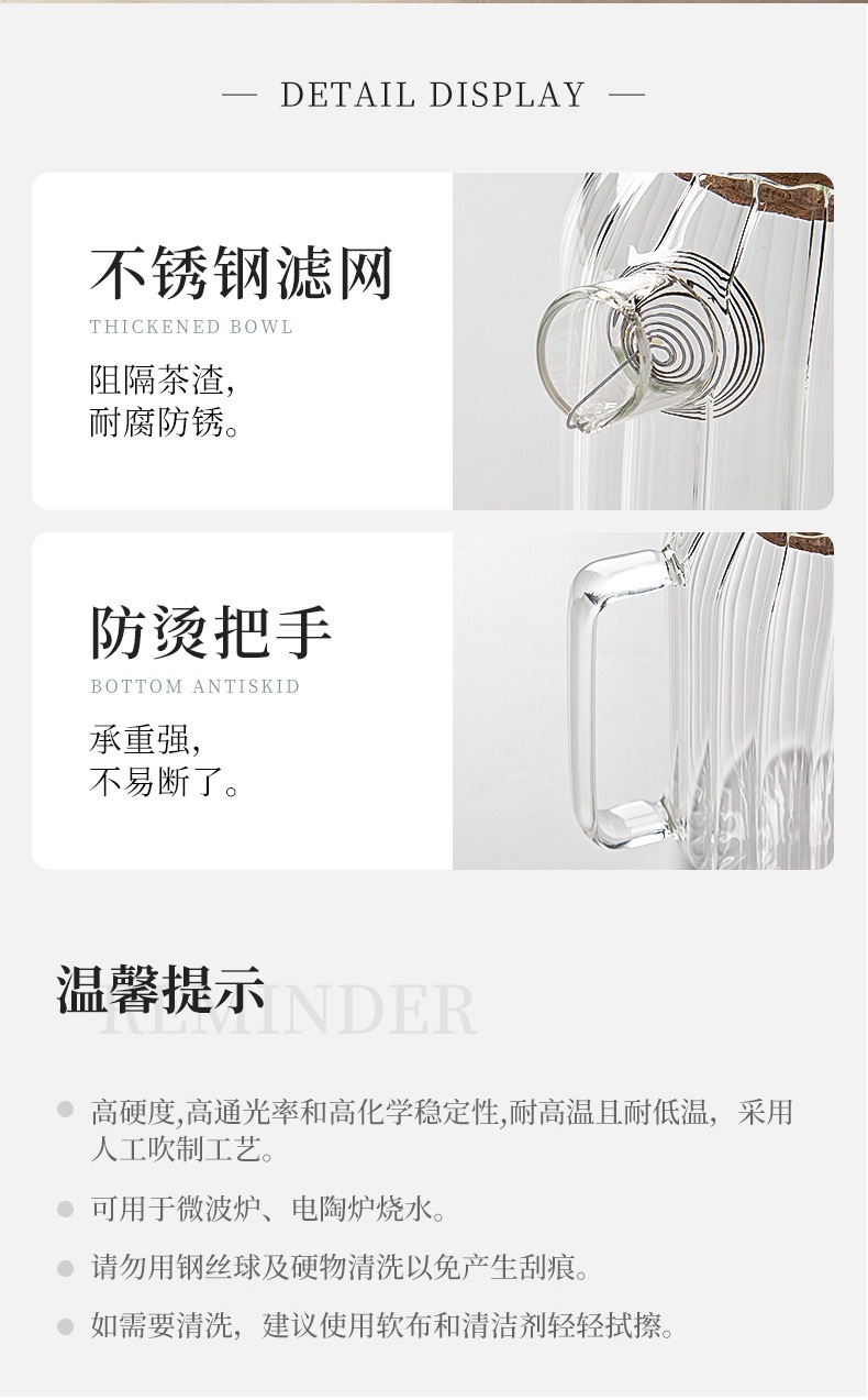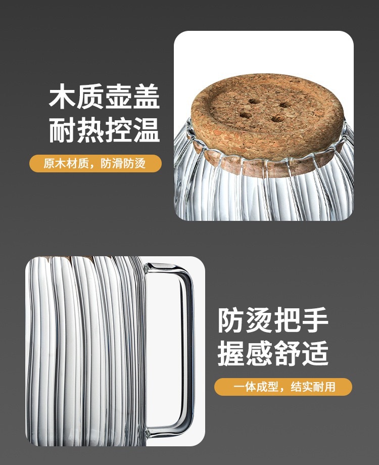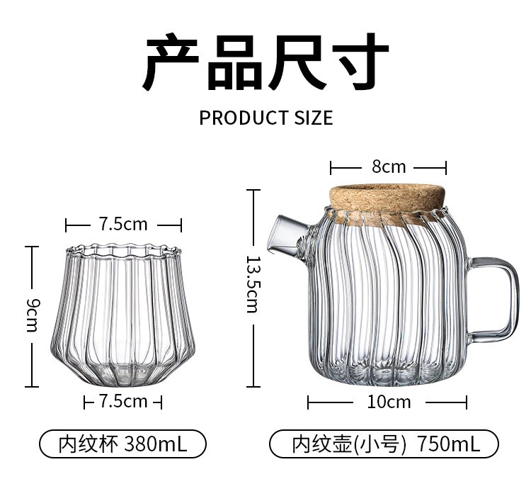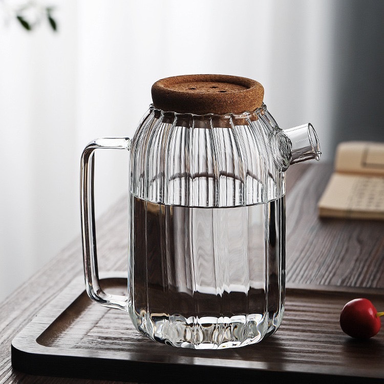 新款竖纹透明玻璃冷水壶家用凉白开水壶高硼硅玻璃果茶壶茶壶网红