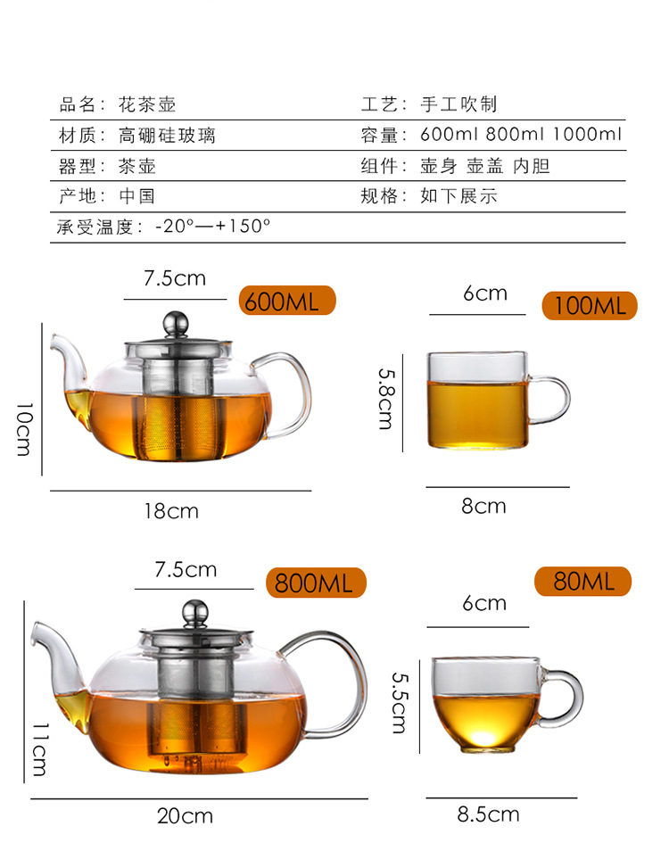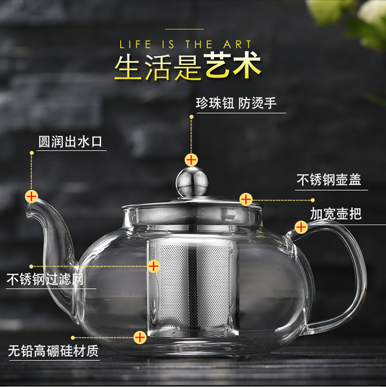 批发透明 高硼硅玻璃茶壶 过滤茶壶花茶壶 耐热玻璃功夫茶玻璃