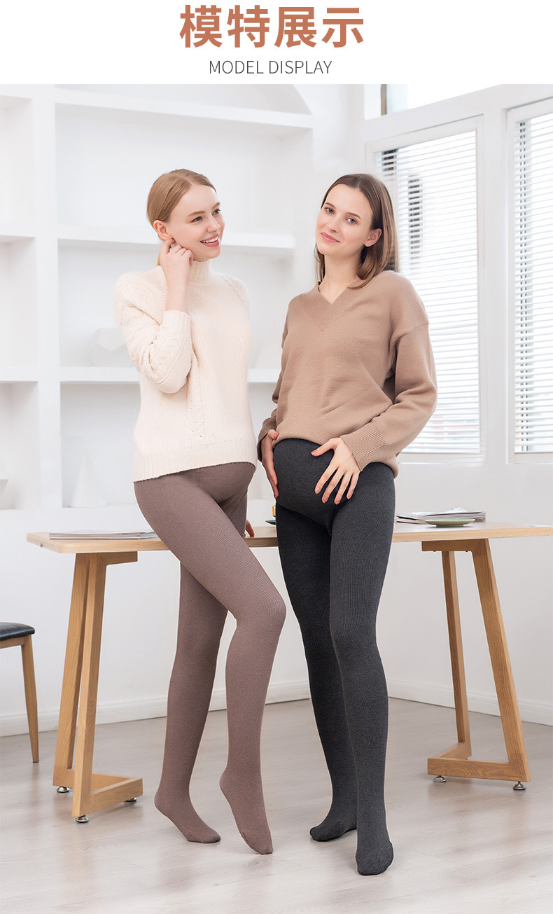 秋冬螺纹棉竖条纹腰带可调节加绒加厚孕妇托腹打底裤连裤袜一体裤