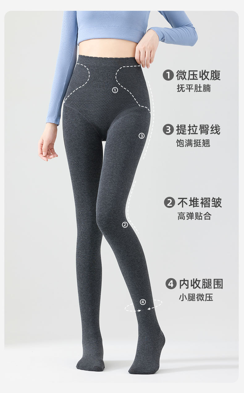 螺纹打底裤女秋冬外穿加绒加厚连裤袜踩脚裤袜三角档收腹打底裤