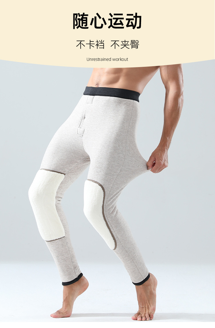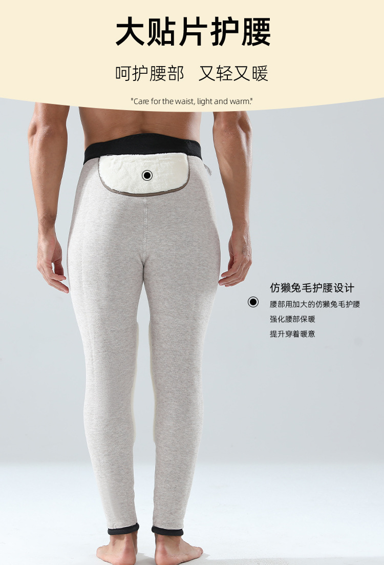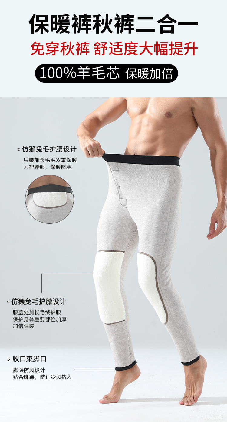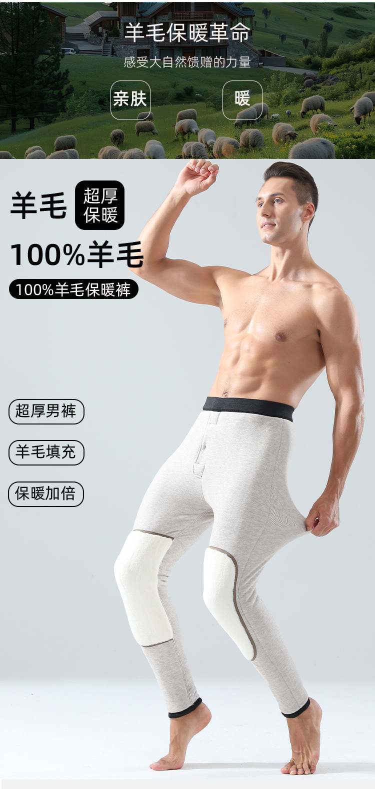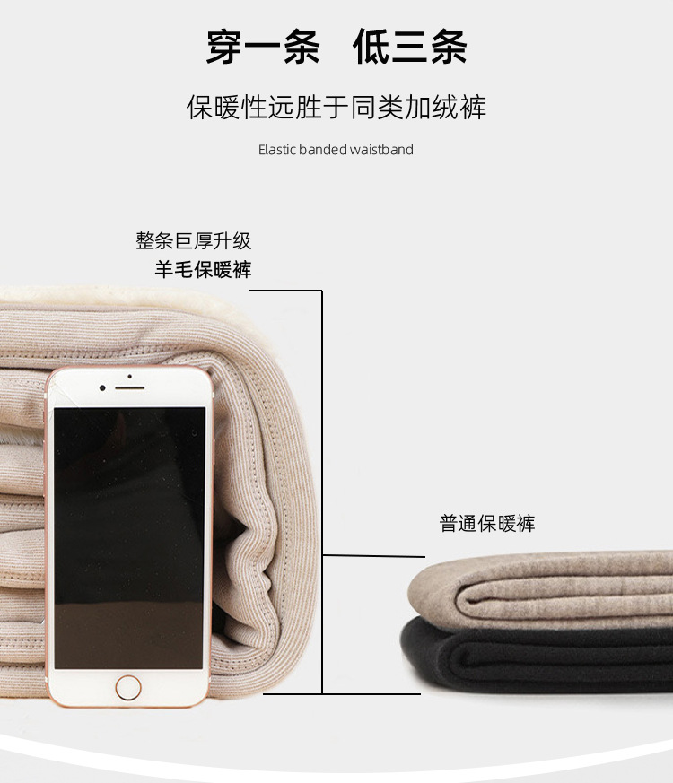 羊毛保暖裤男款加绒加厚冬德绒内穿棉裤男东北防寒高腰羊绒打底裤