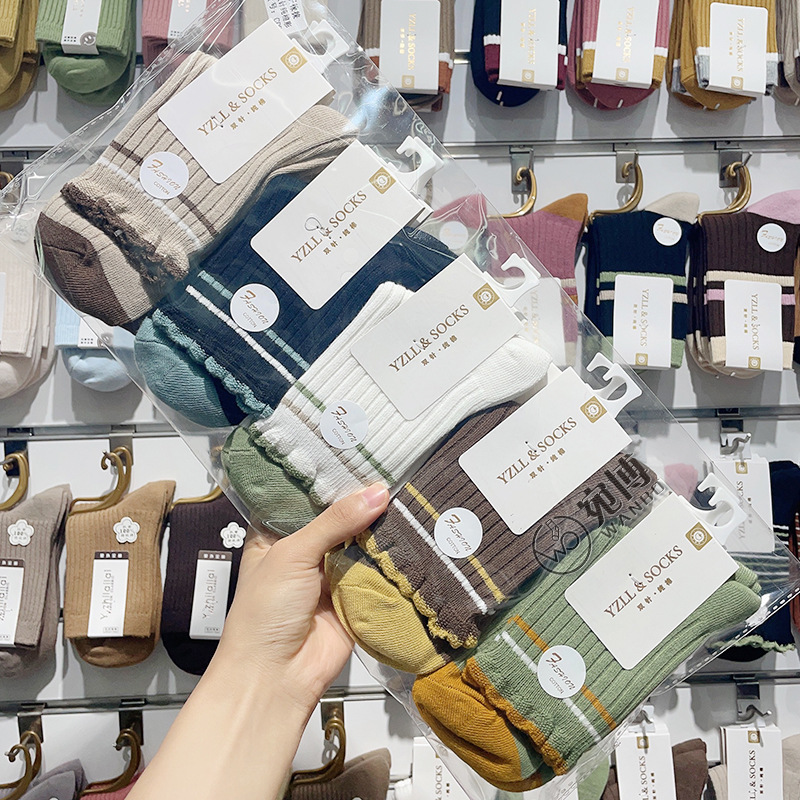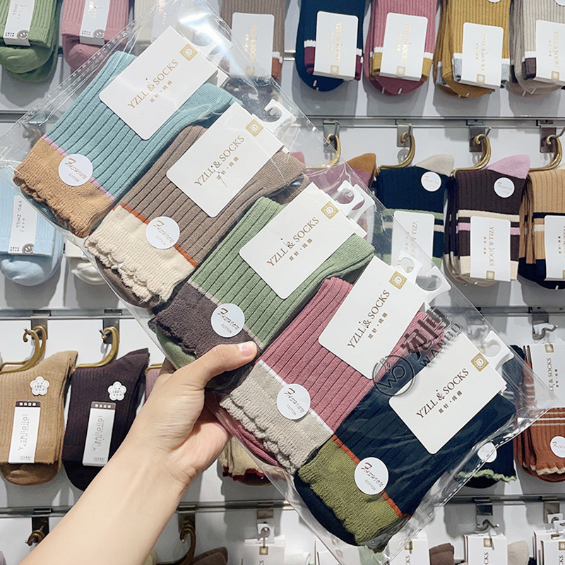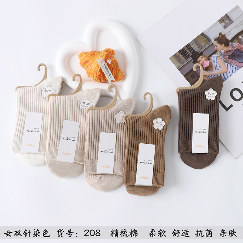 秋冬女士纯色棉袜子全长袜中筒袜精梳棉双针堆堆袜女袜厂家批发