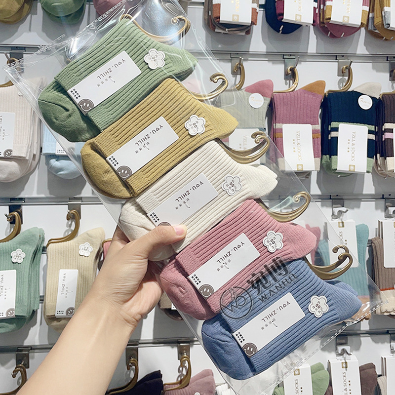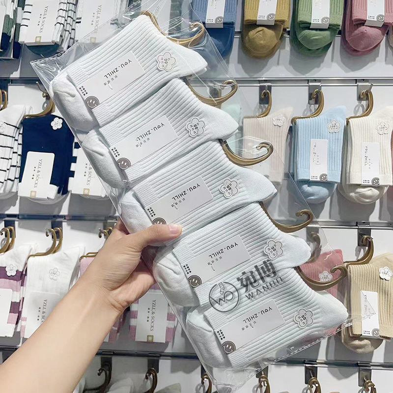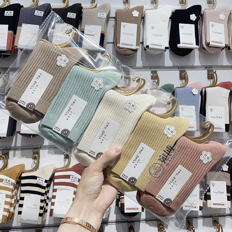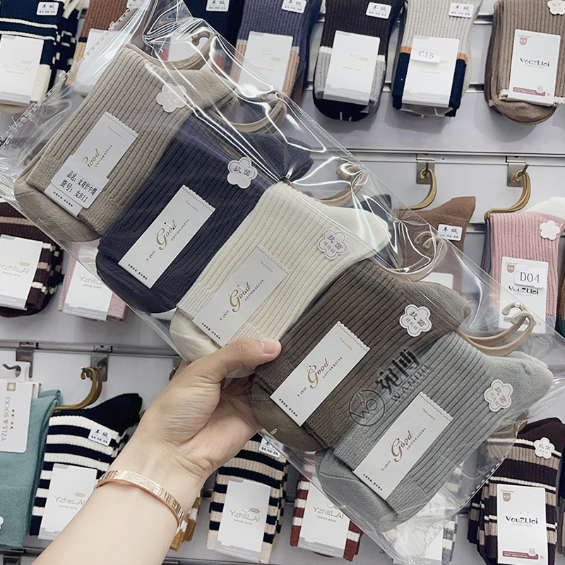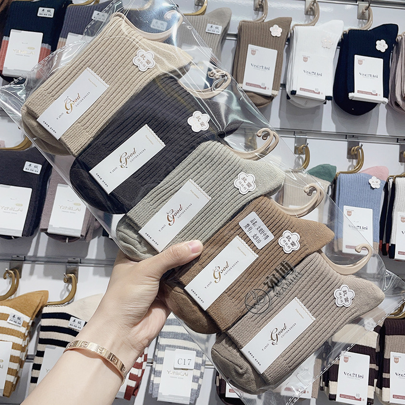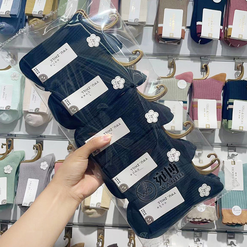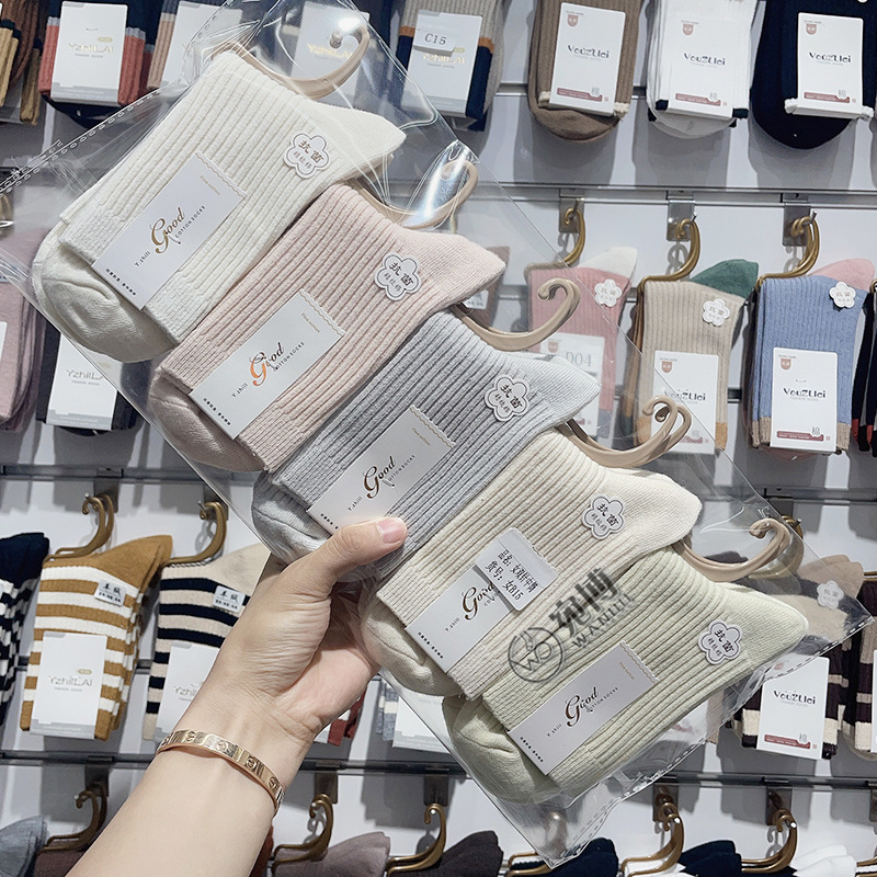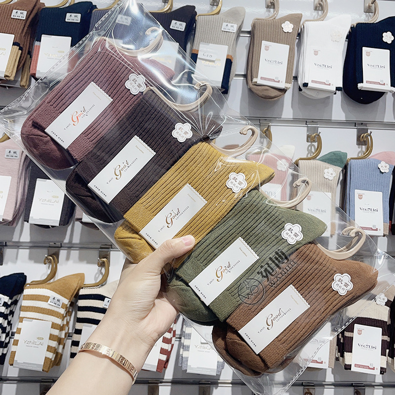 秋冬双针女士棉袜美拉德风袜子中筒袜休闲女士加厚棉袜黑白长袜