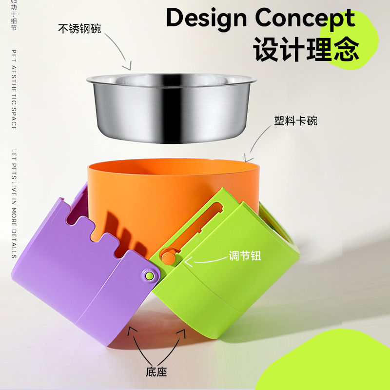 跨境新品猫碗可调节高度狗盆不锈钢宠物碗趣味喂食器宠物食具