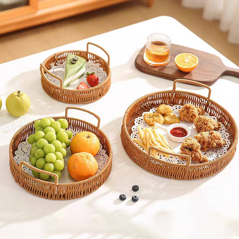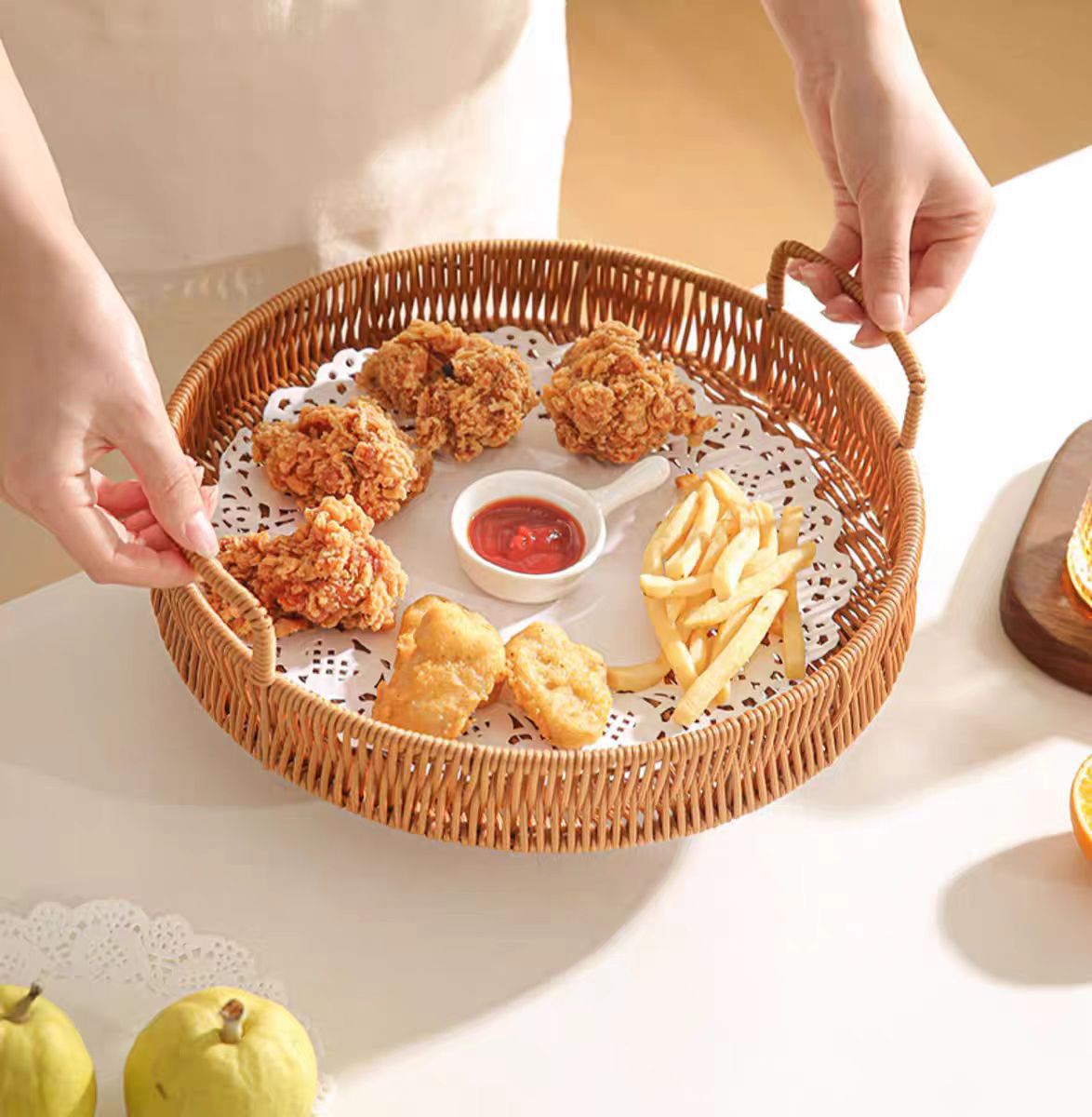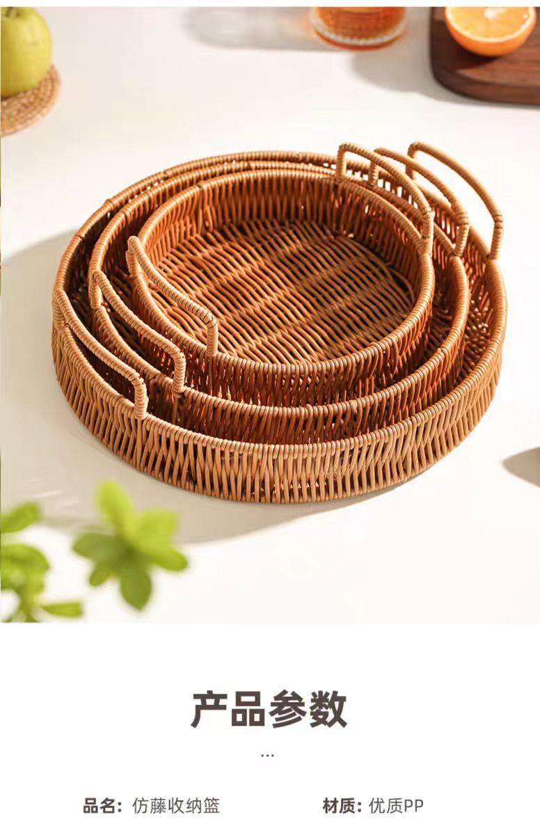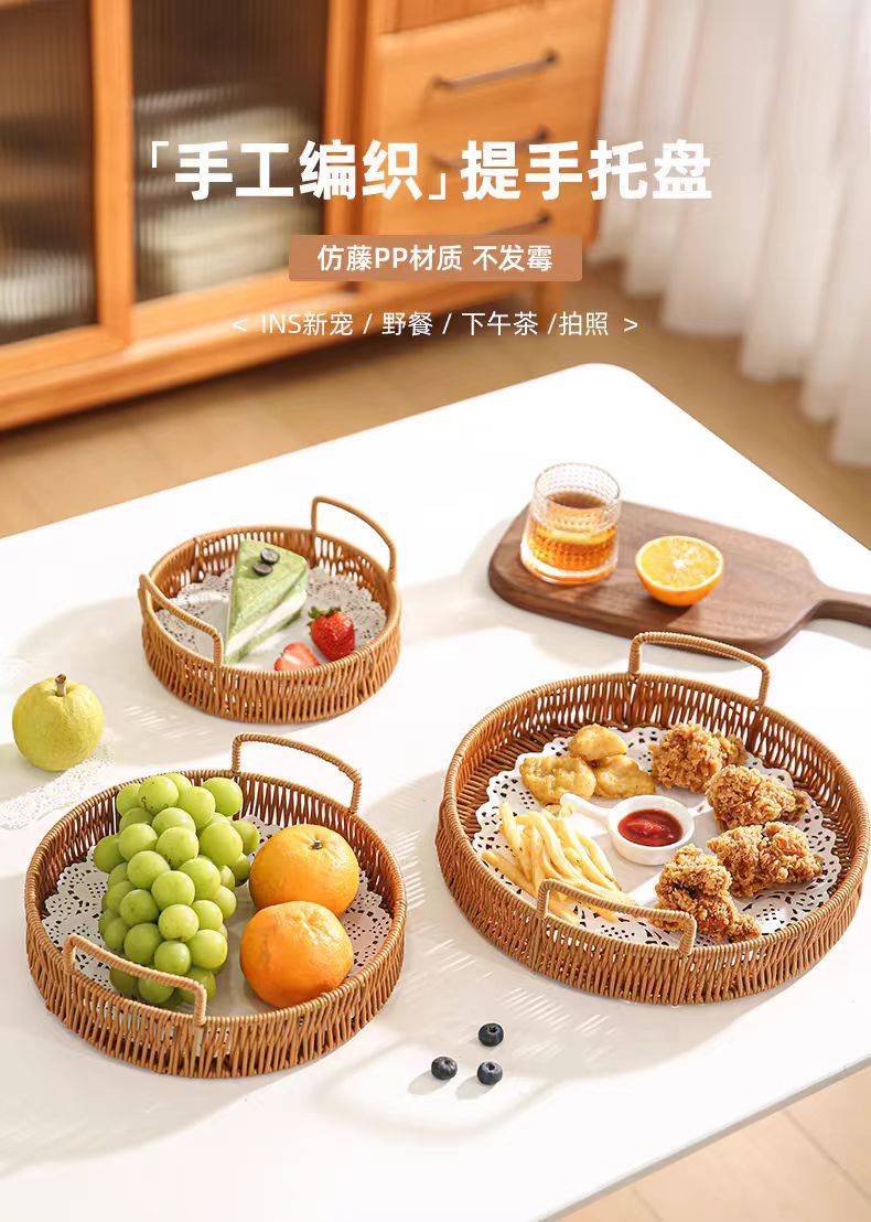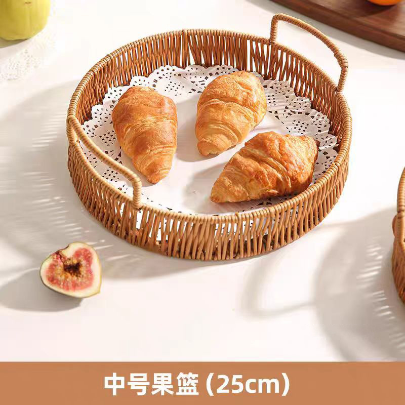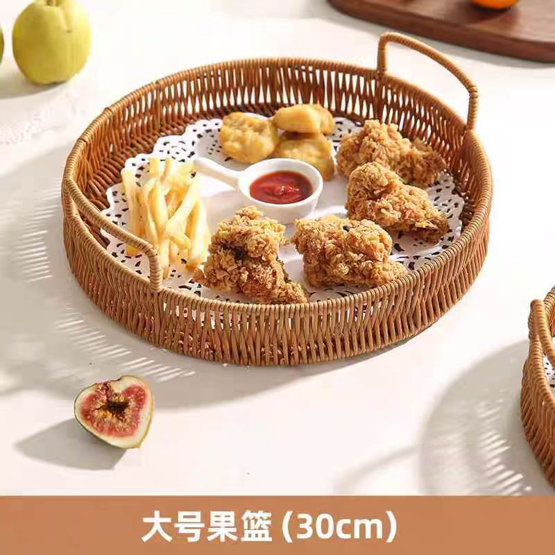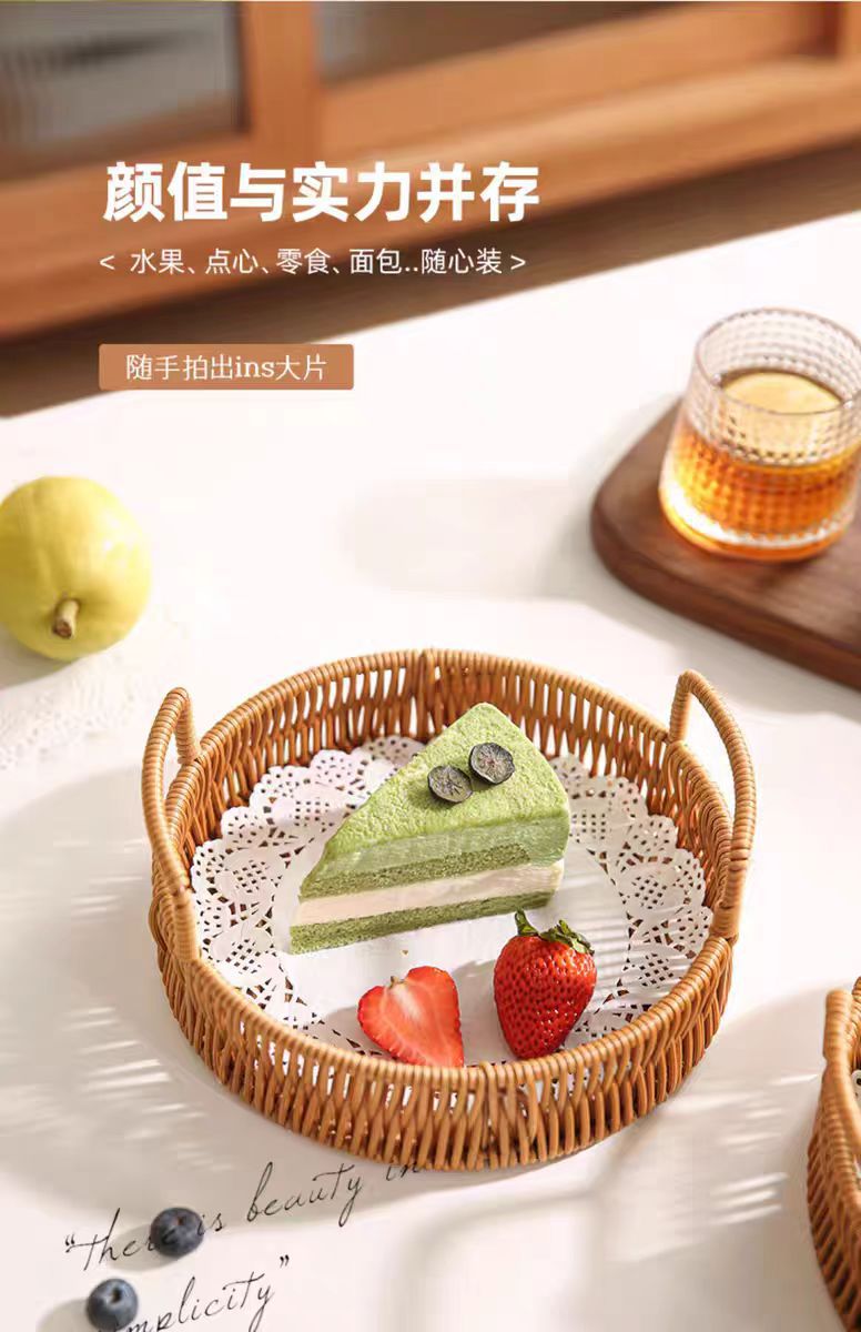 仿藤编零食盘点心茶点水果篮家用客厅蛋糕托盘面包篮子藤编干果盘