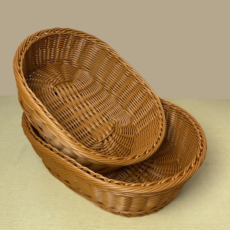 仿藤编面包水果零食超市陈列展示篮桌面置物整理收纳框方形编织筐