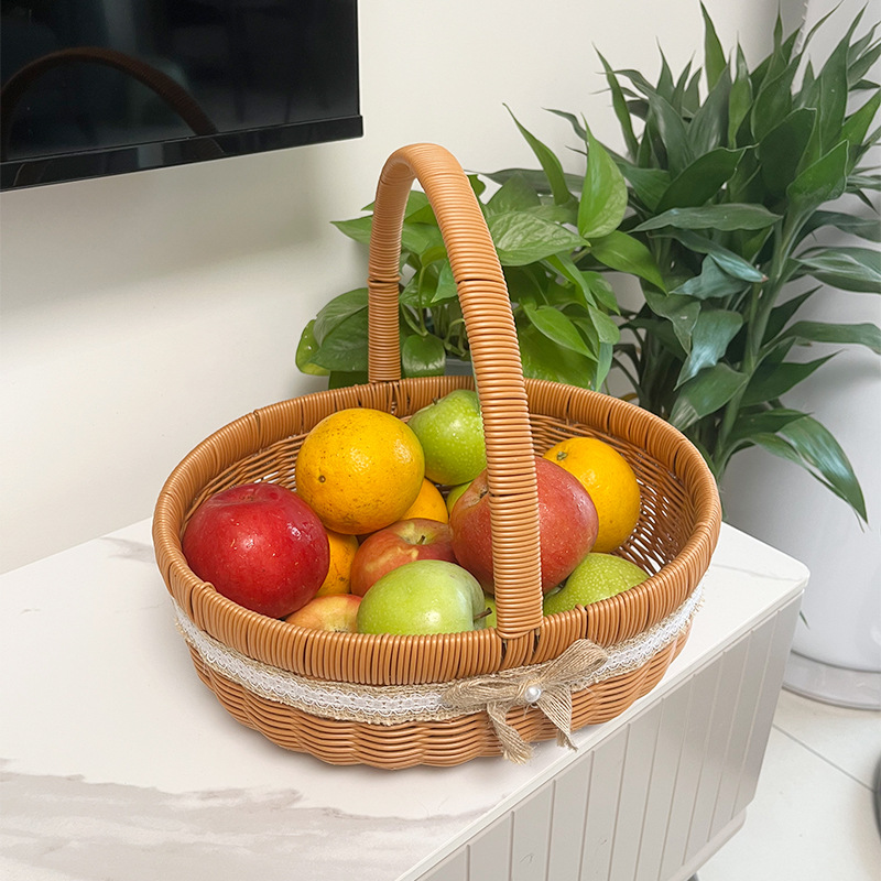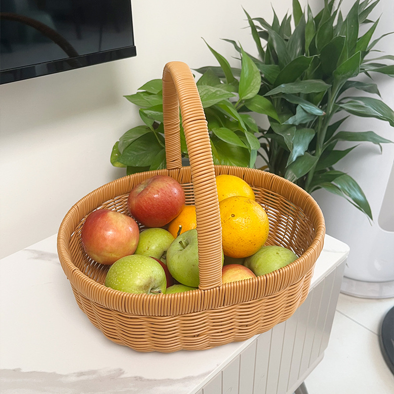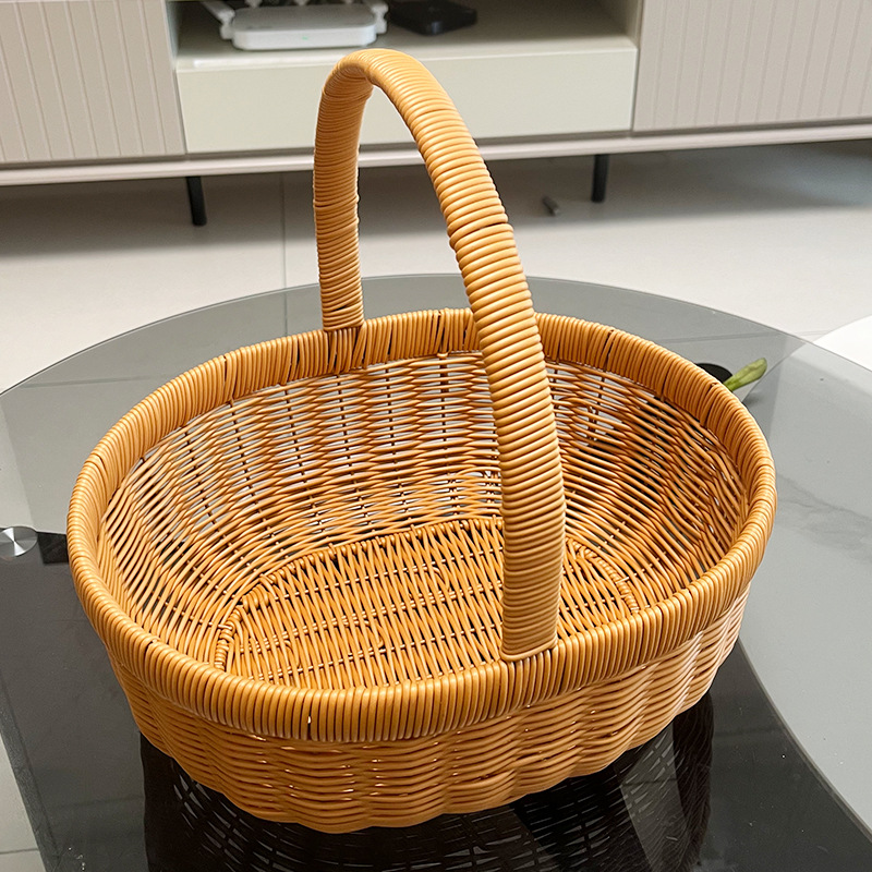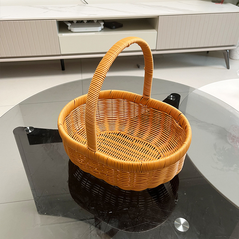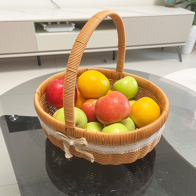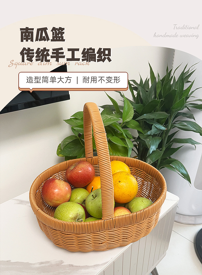 仿藤手工编织手提篮南瓜篮鸡蛋筐买菜篮水果收纳筐客厅创意篮子