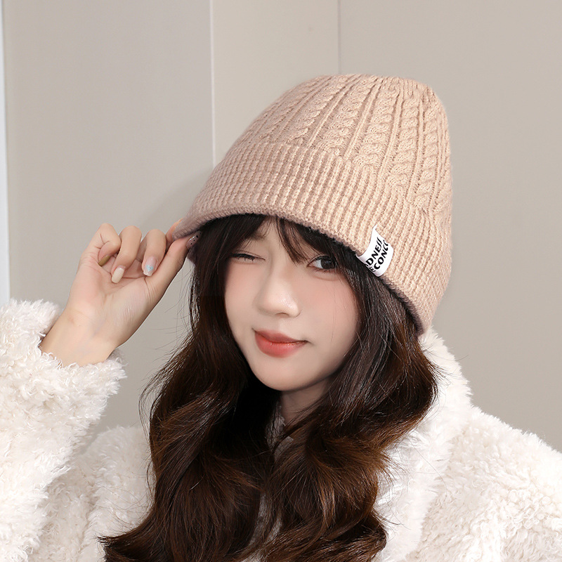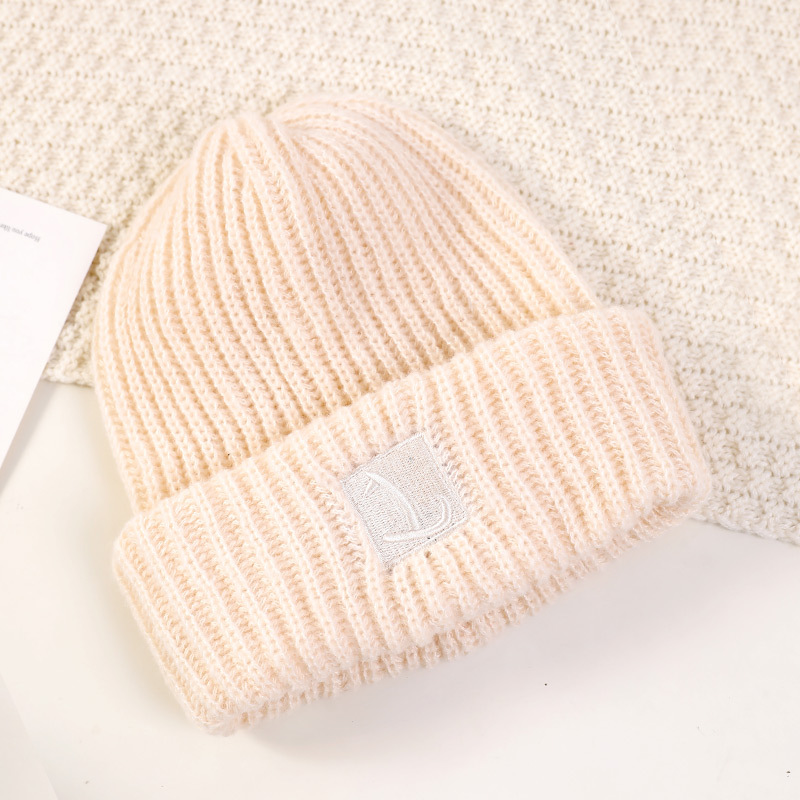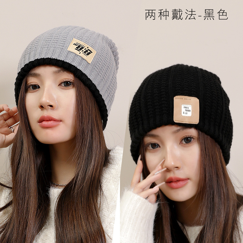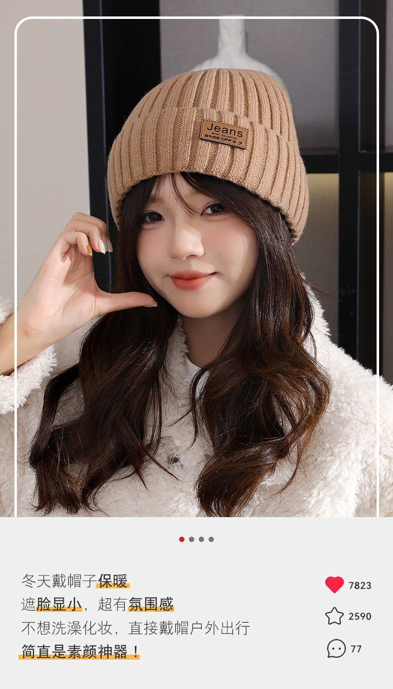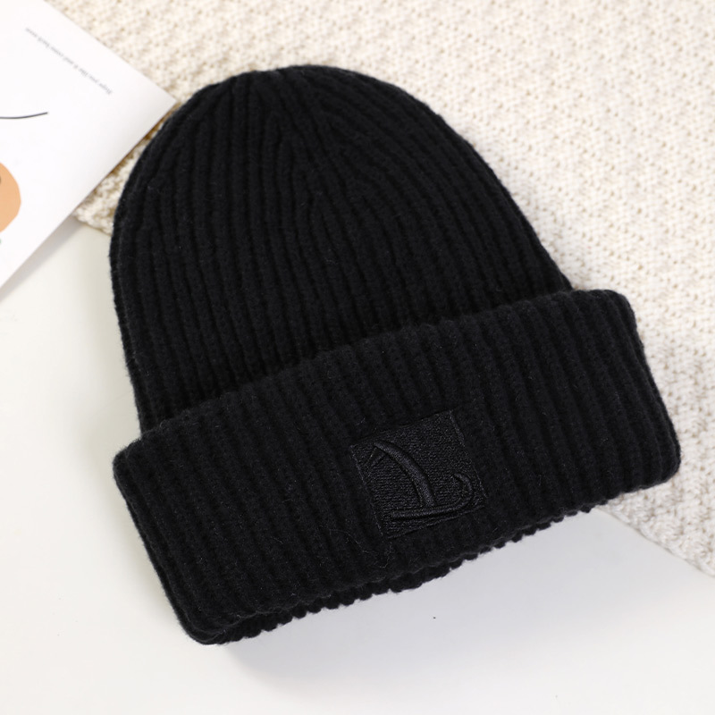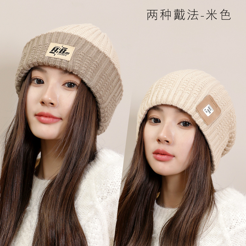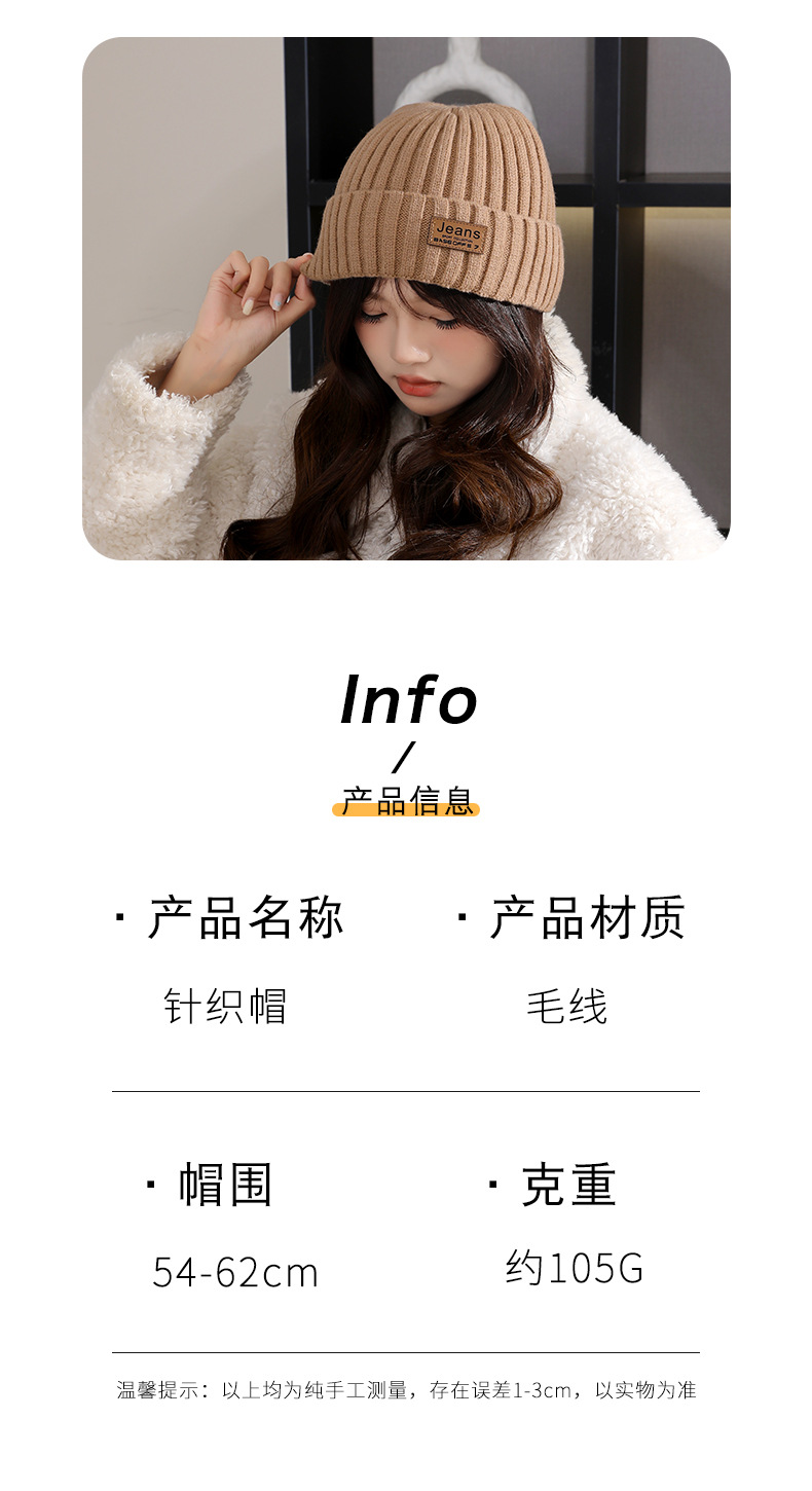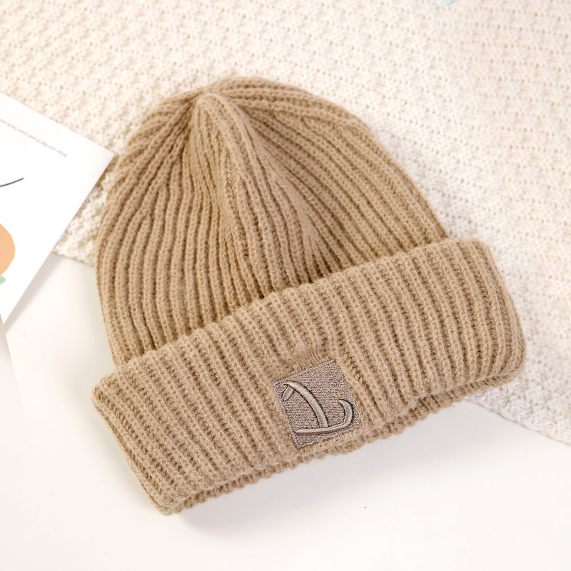 严选女秋冬毛线帽子纯色保暖套头瓜皮帽百搭字母毛线帽户外防风帽