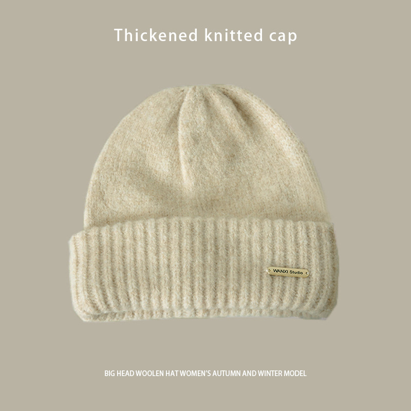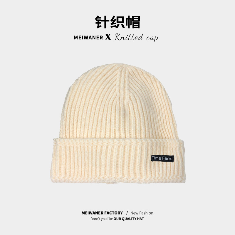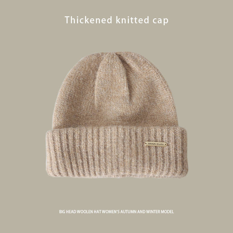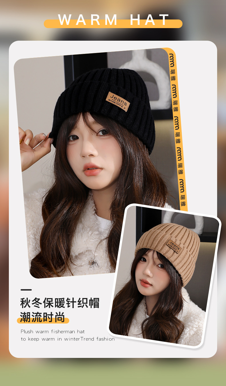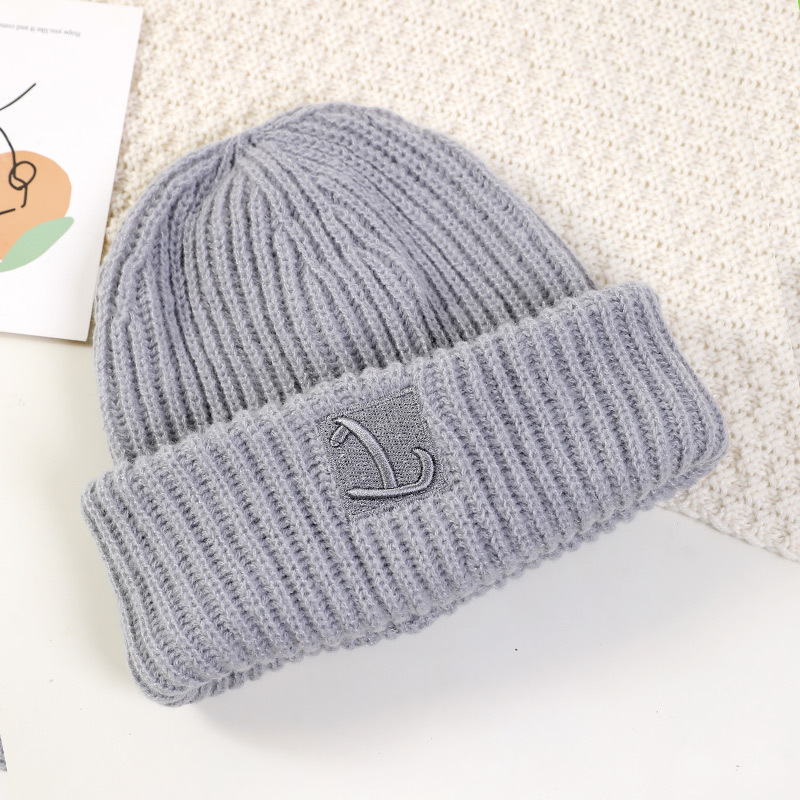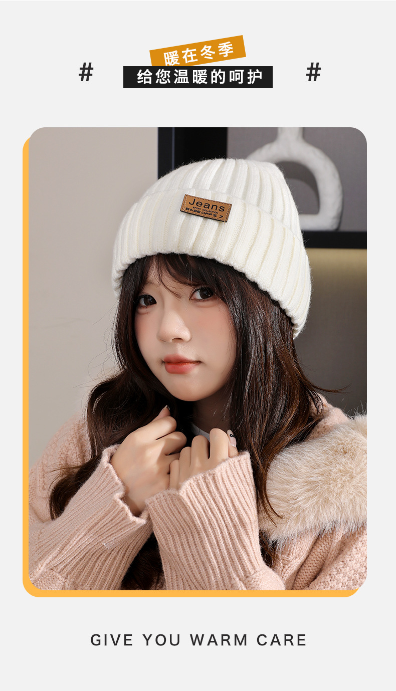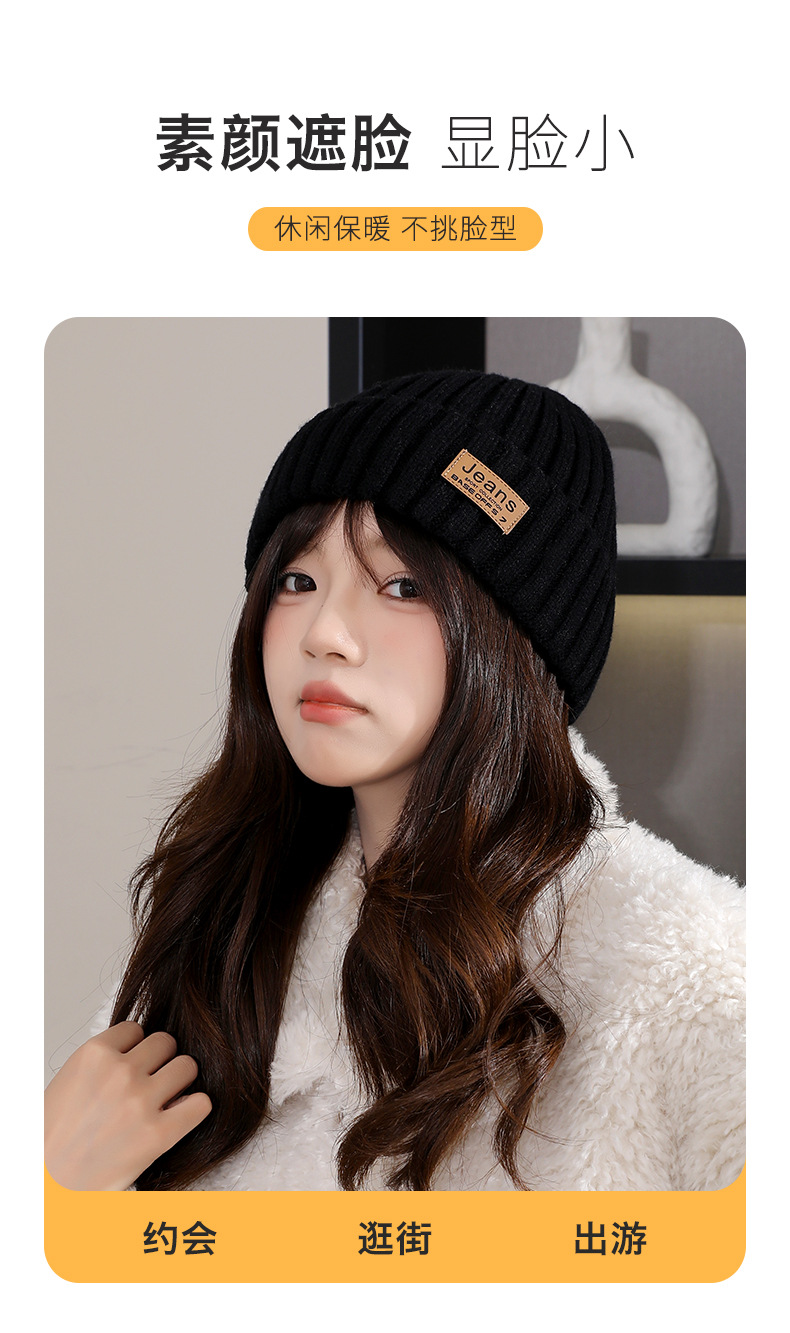 严选女秋冬毛线帽子纯色保暖套头瓜皮帽百搭字母毛线帽户外防风帽
