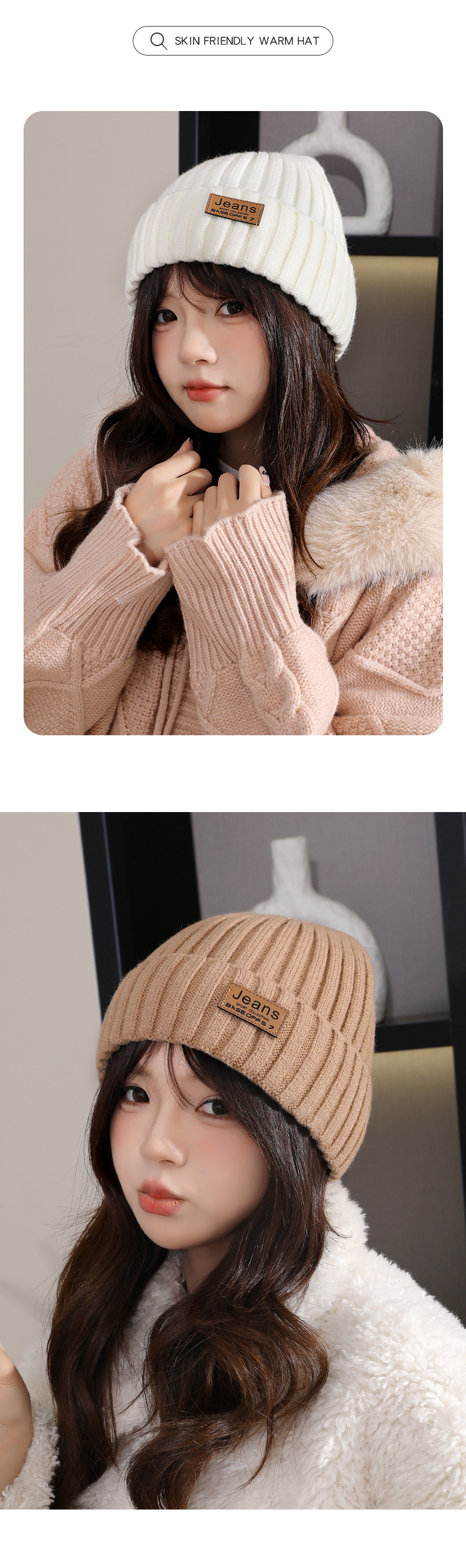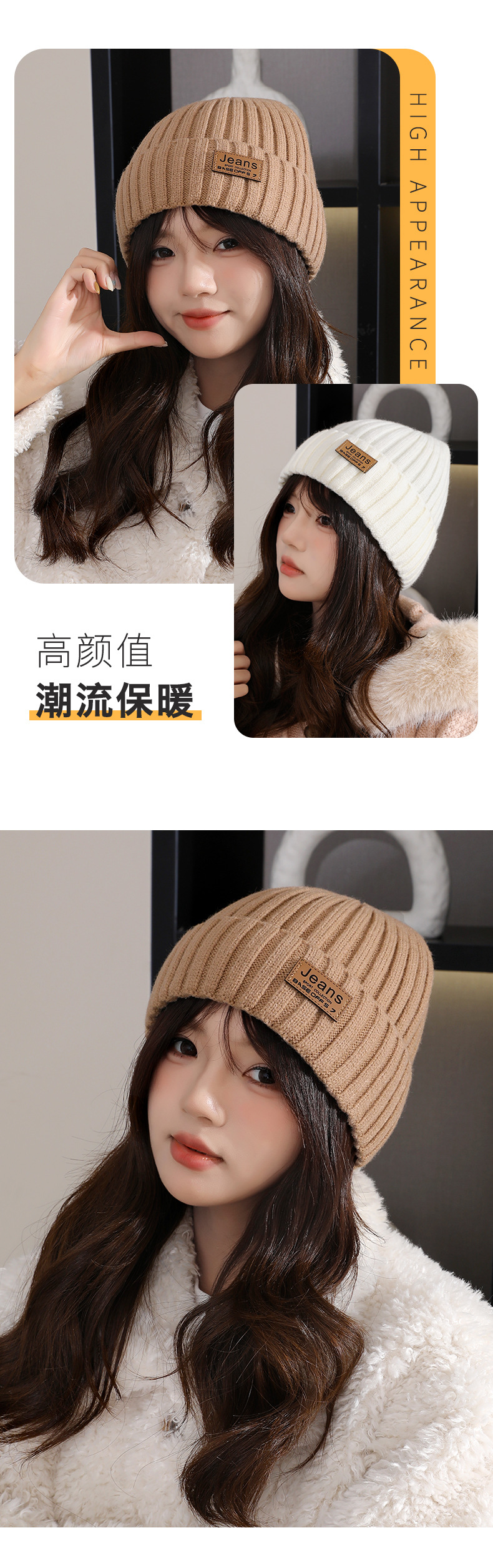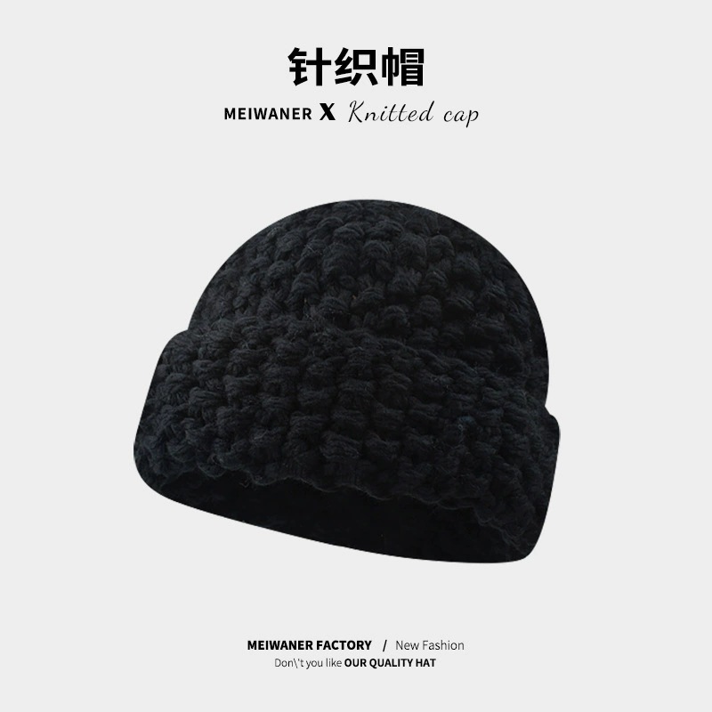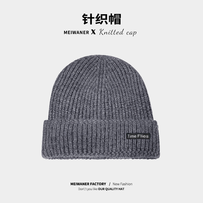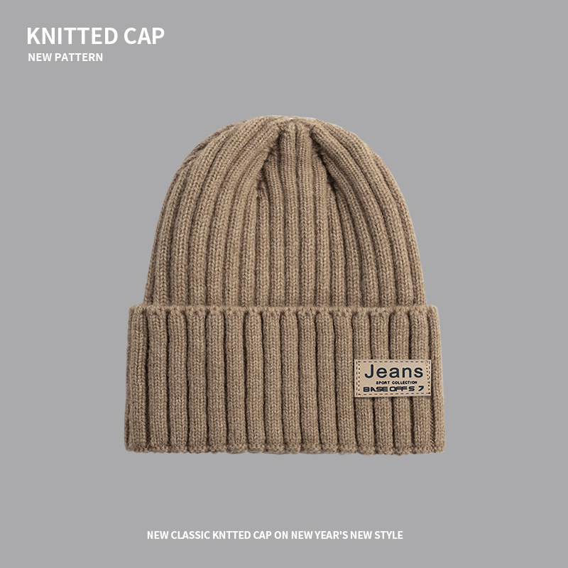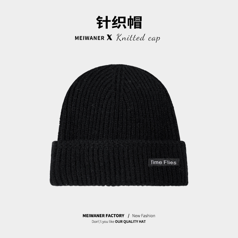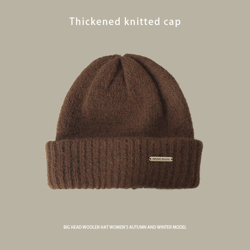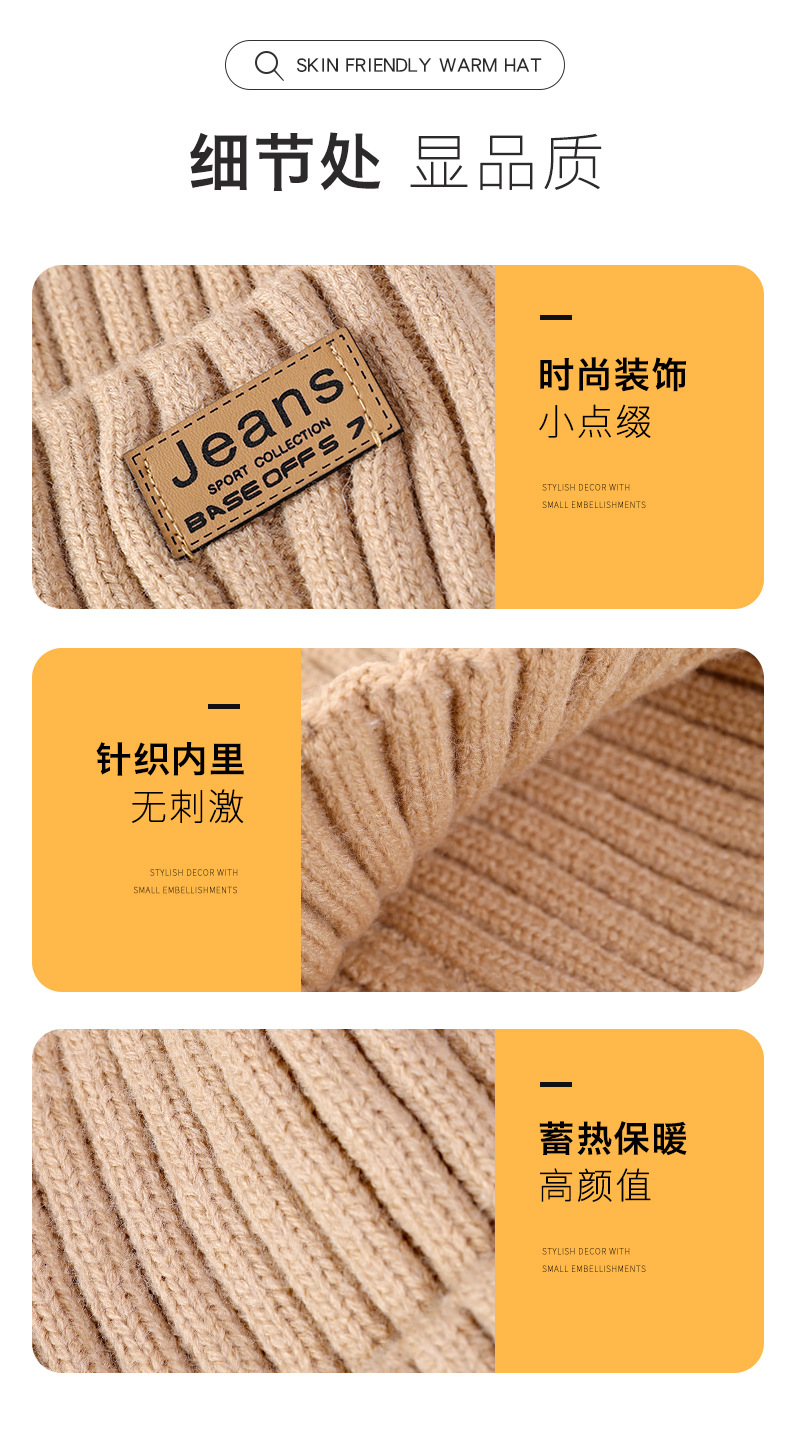 严选女秋冬毛线帽子纯色保暖套头瓜皮帽百搭字母毛线帽户外防风帽
