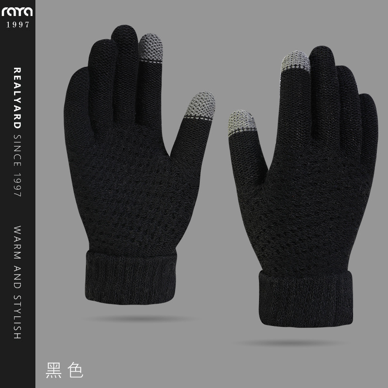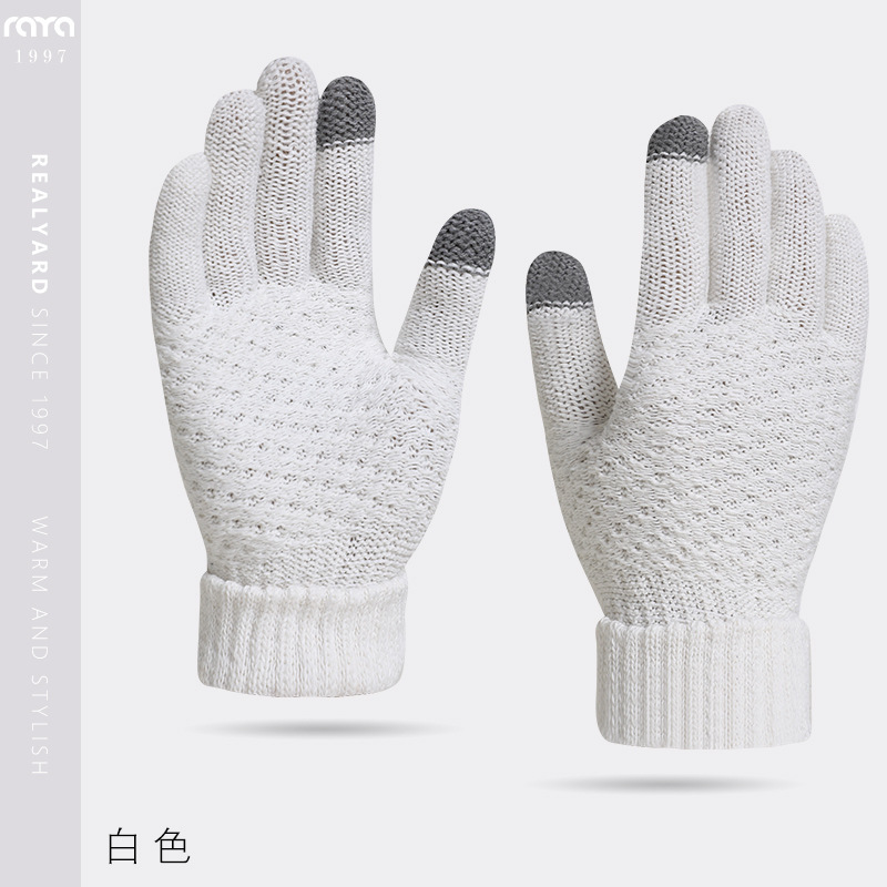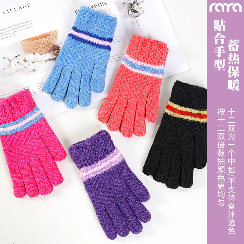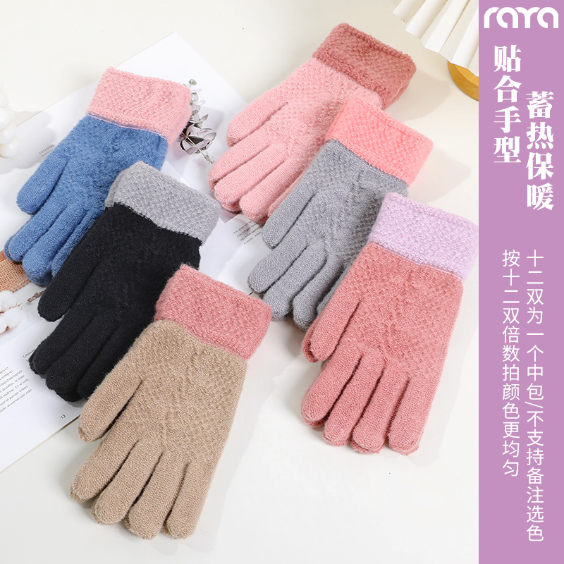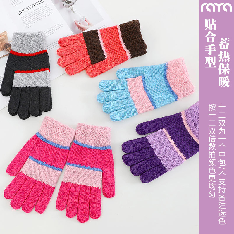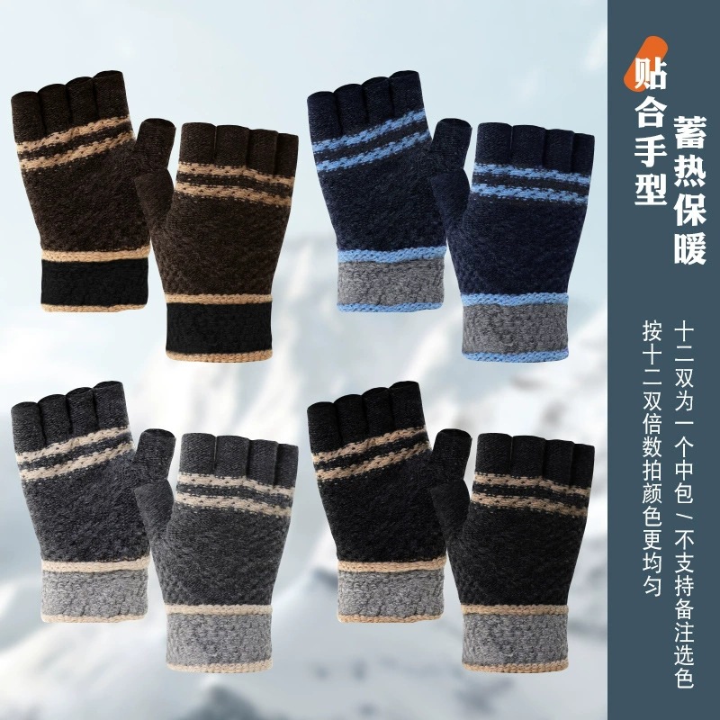 男女士冬季露两指手套新款办公写字打字露指保暖拼色针织手套