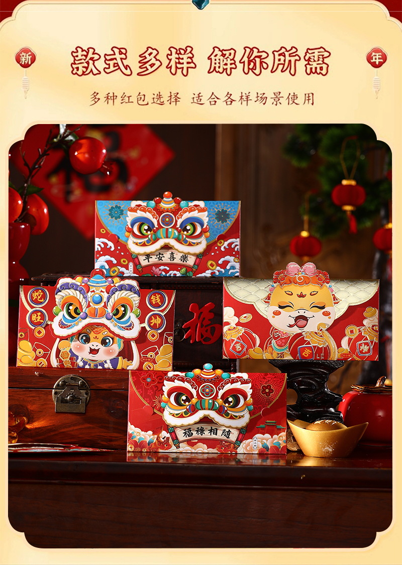 新年红包袋马年压岁创意春节生肖压岁立体过年利是封2026新款醒狮