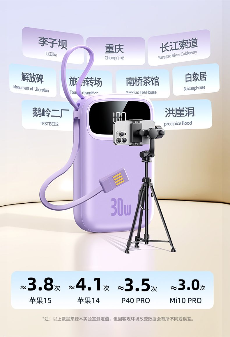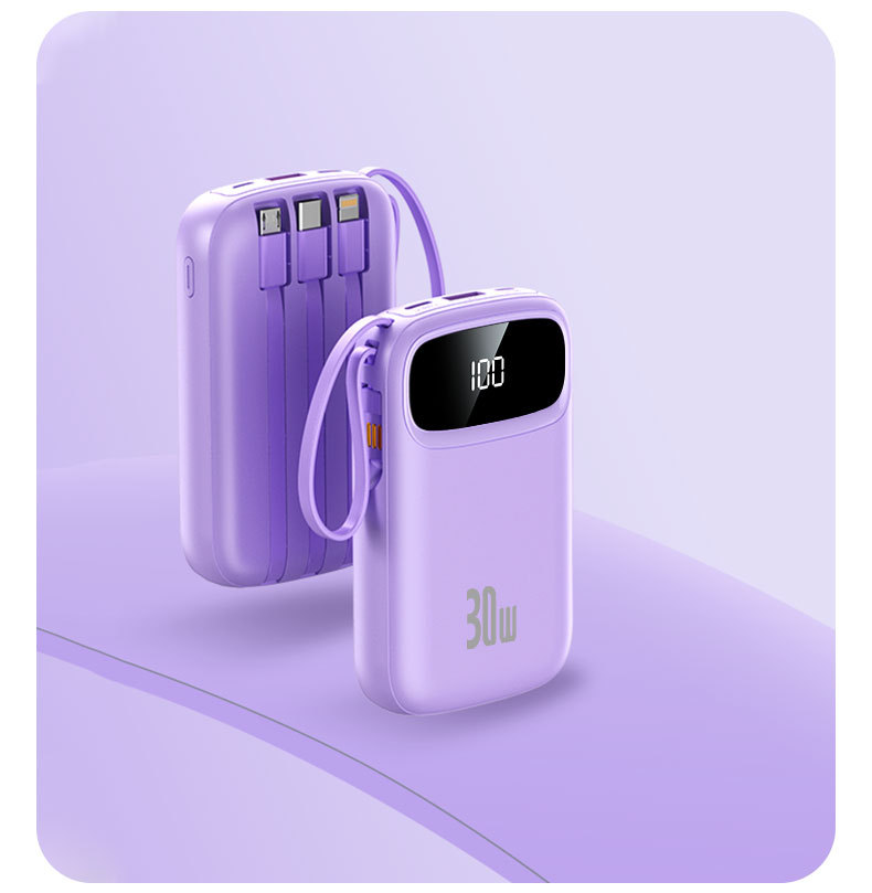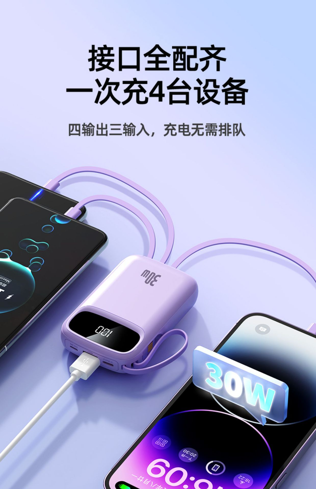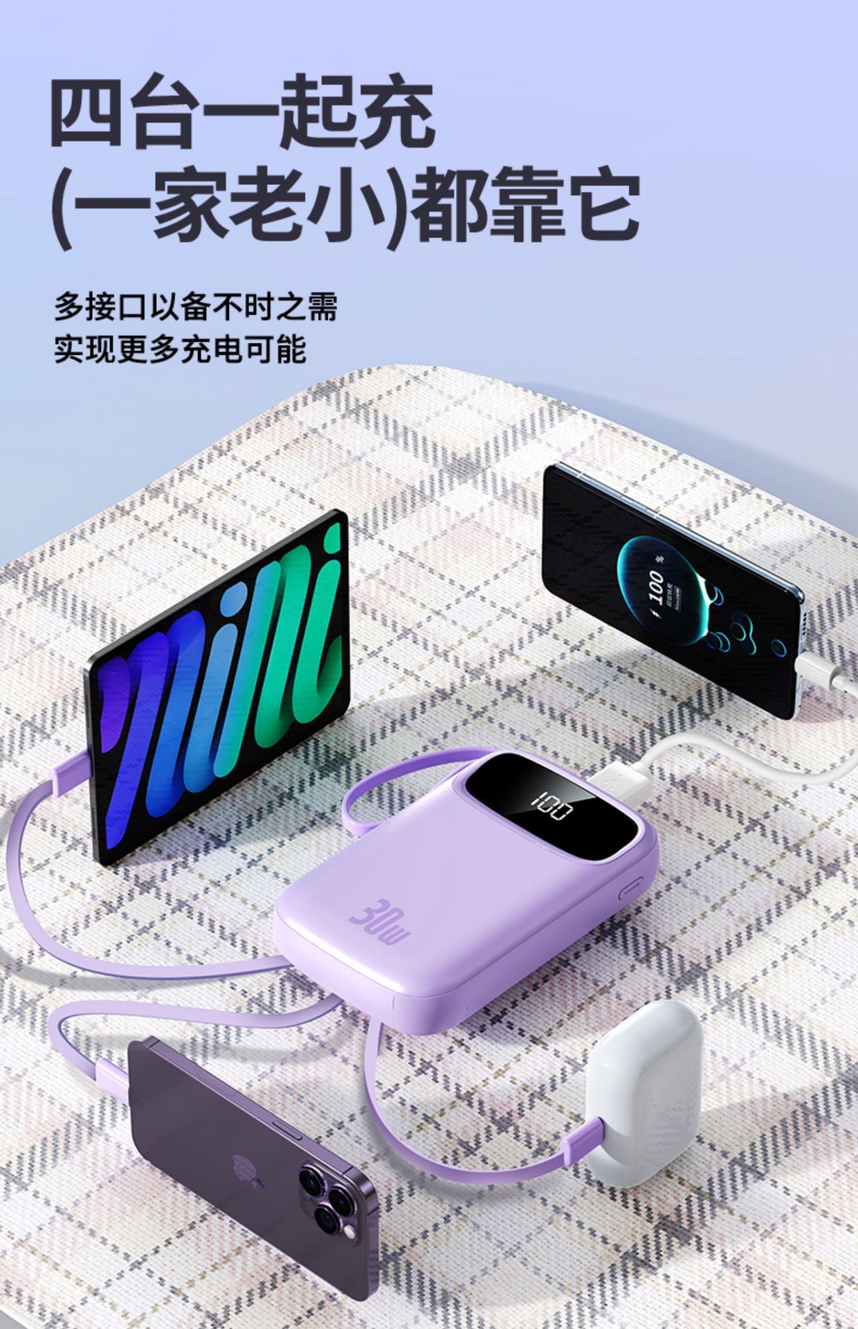 30W充电宝20000毫安超大容量带线超级快充便携移动电源定 制LOGO