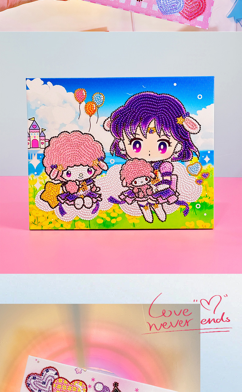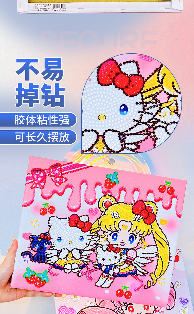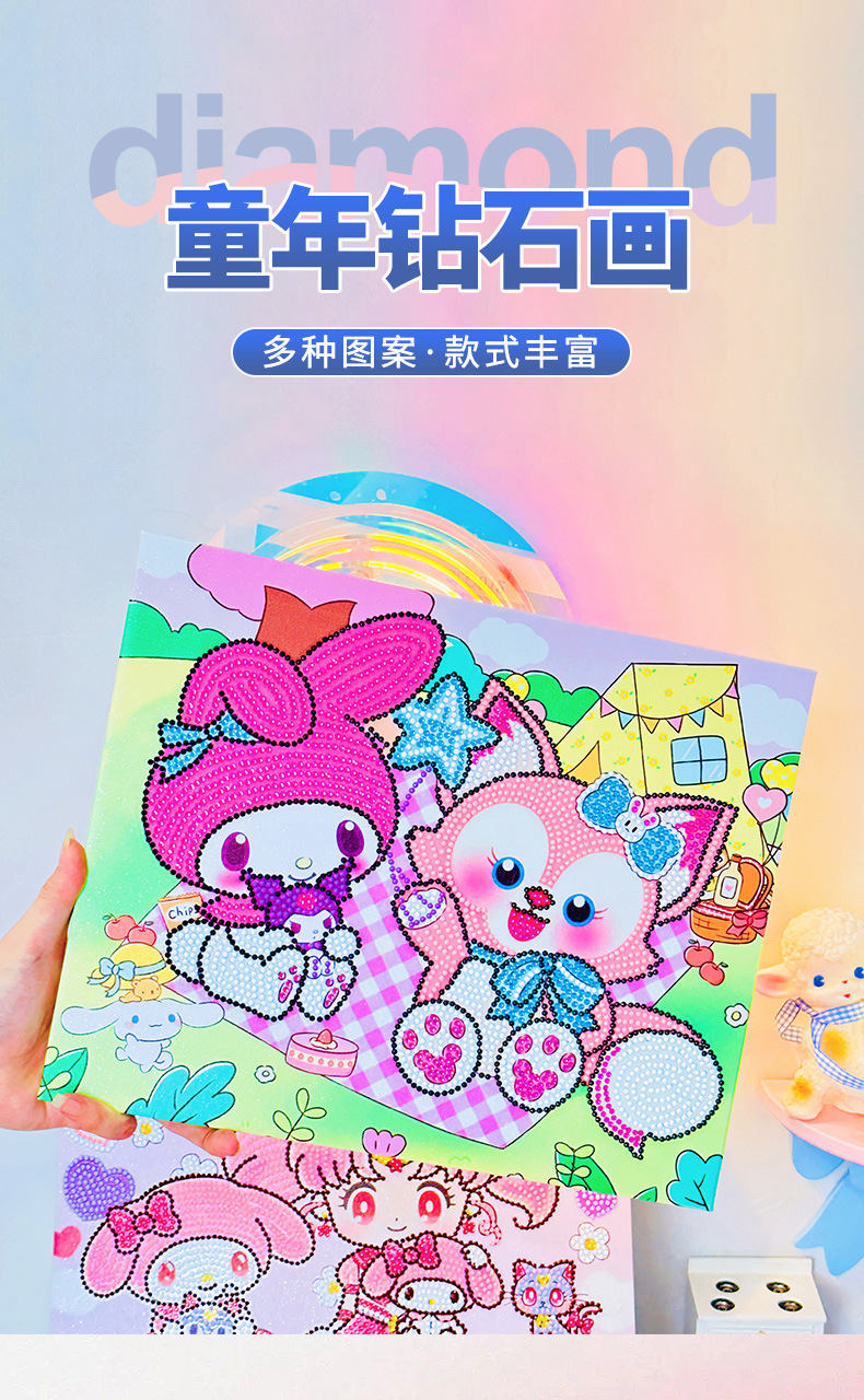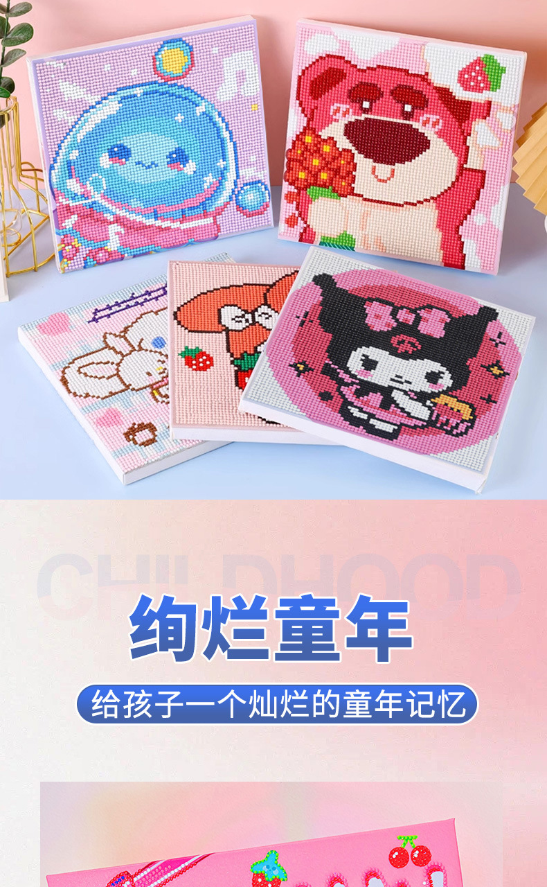 跨境儿童DIY手工木框钻石画3-6岁满钻卡通砖卧室客厅摆件益智玩具