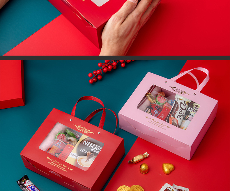 新款开窗手袋婚礼伴手礼盒喜糖空纸盒宾客回礼盒礼品包装抽屉空盒