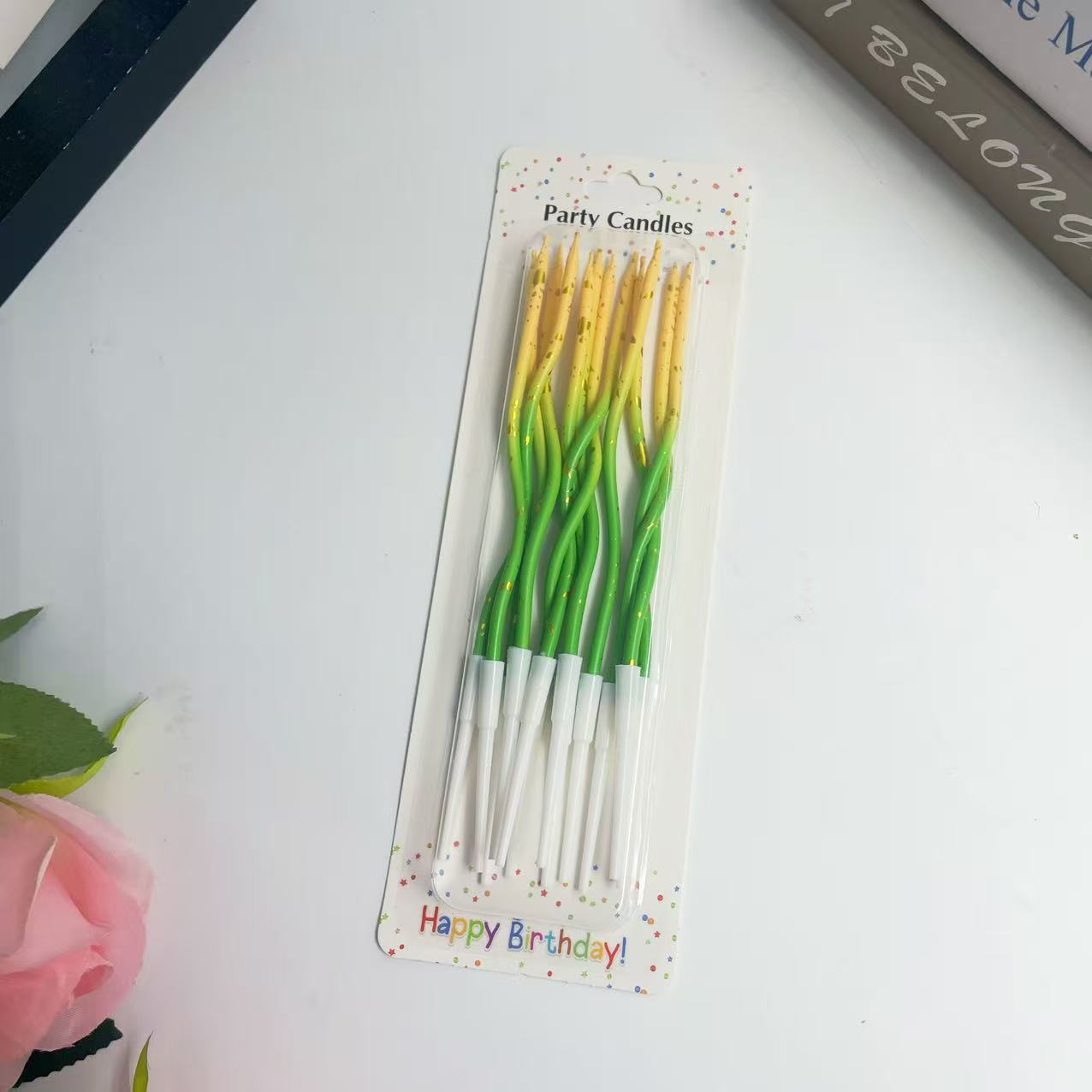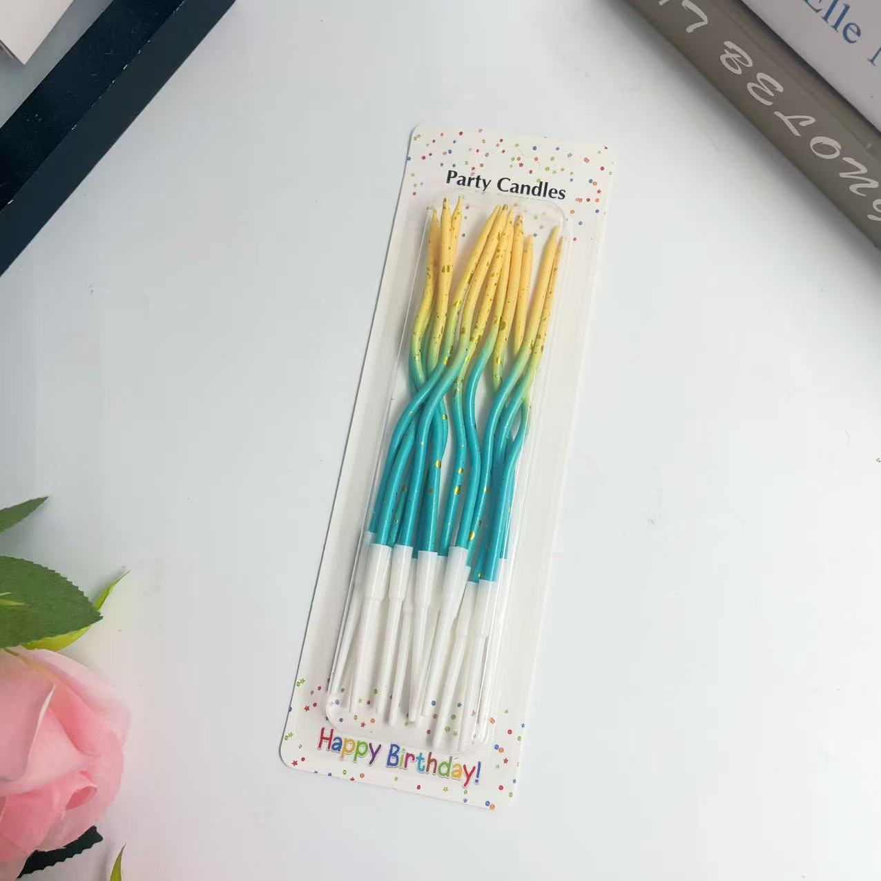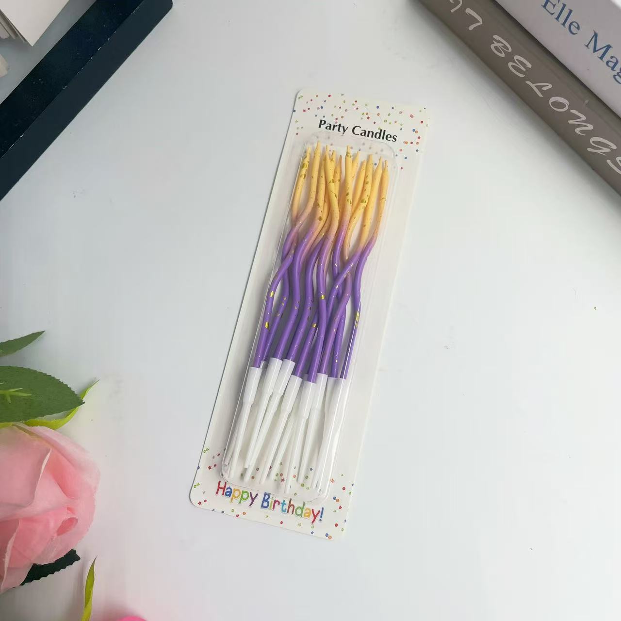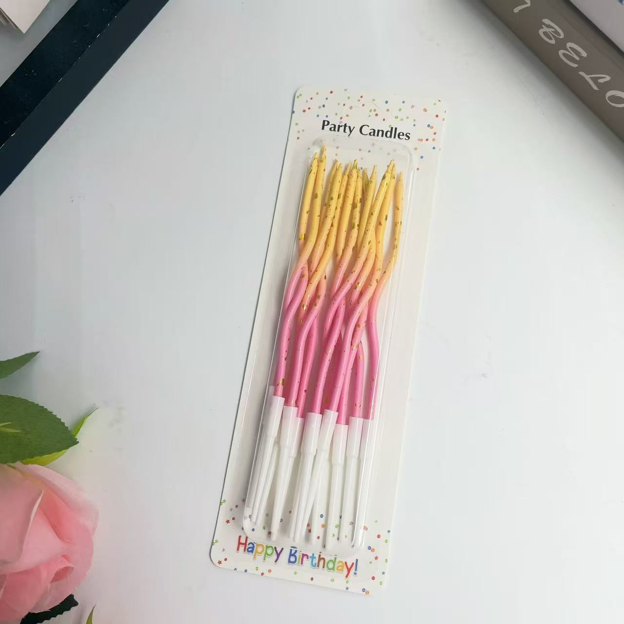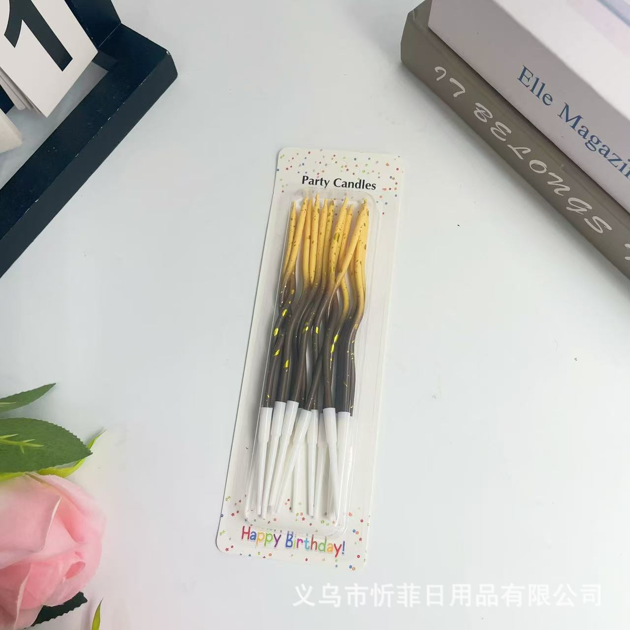 12支曲线蜡烛生日蜡烛渐变金点 蛋糕装饰插件派对烘焙蛋糕道具